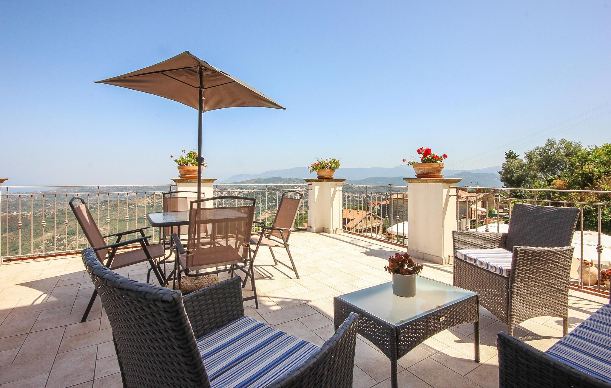 Hvis I er på udkig efter en base for årets store familiesammenkomst, og må omgivelserne gerne være noget ud over det sædvanlige, er I kommet til det helt rette sted. Fra dette komfortable og rummelige feriehus har I en fantastisk udsigt over kysten og det smukke landskab, og indvendigt fremtræder huset yderst flot i en nærmest hotelagtig stil, der gør det nemt at slappe af med det samme, I ankommer. Soveværelserne byder på et lille tekøkken og har eget soveværelse, så I kan se frem til et ophold med det helt rette mix af privatlivets fred og festlige stunder i socialt lag i de veludstyrede opholdsrum.