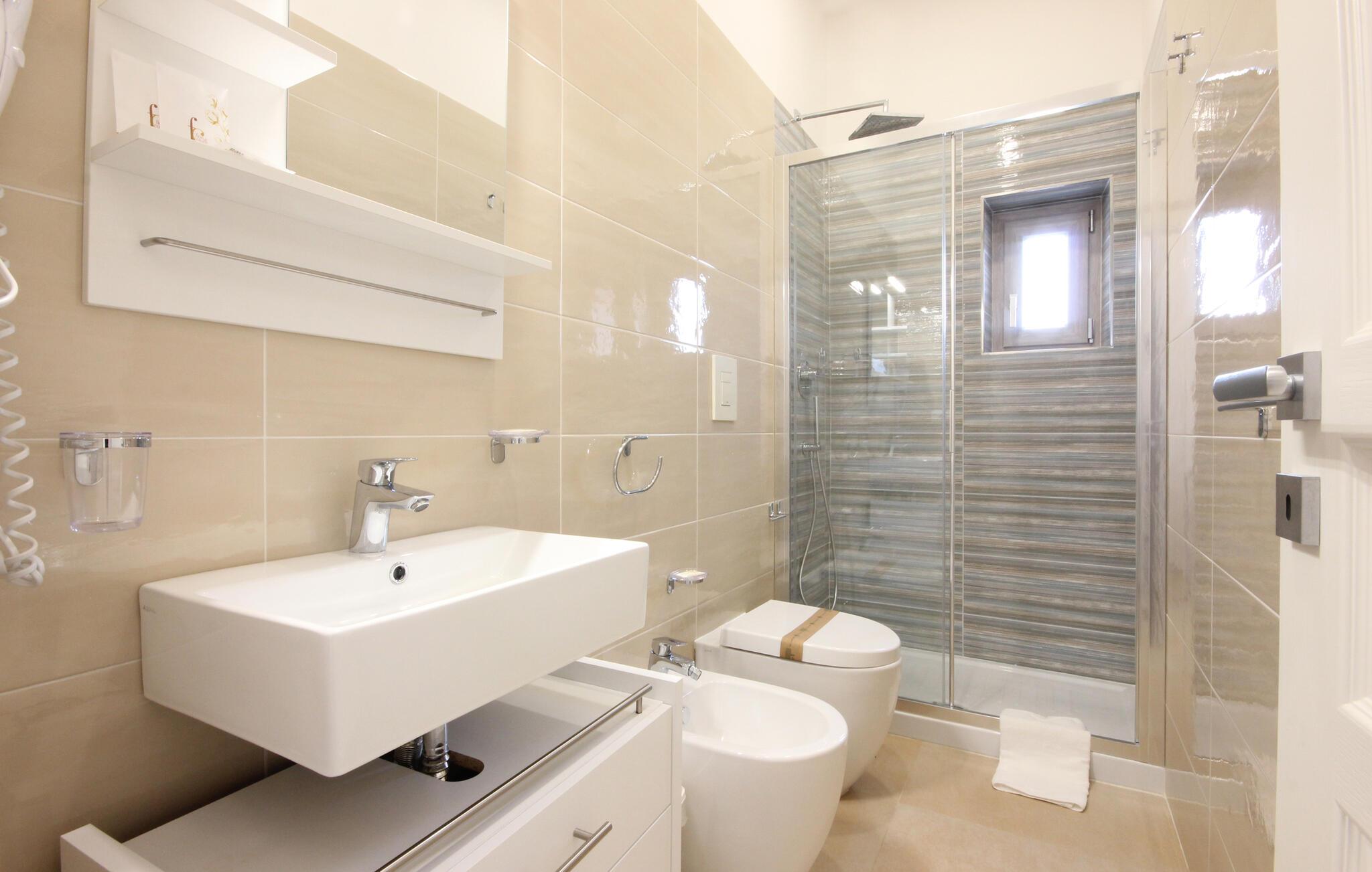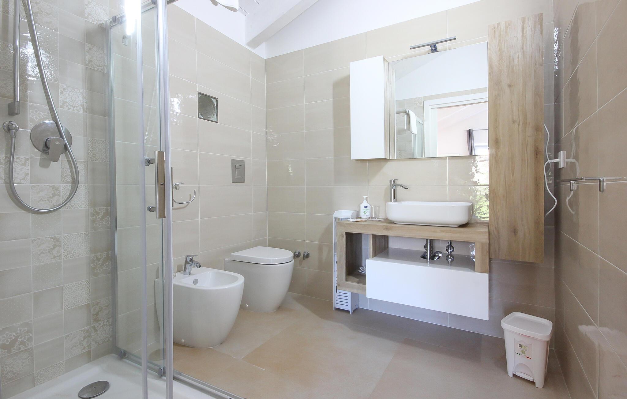 I bor i et vidunderligt område med mange skønne udflugtsmål. Kør til den charmerende kystby Agropoli, hvor bystranden er det ideelle sted at hoppe i bølgerne og lade bølgerne vugge jer frem og tilbage. Vandet er så klart, at det er et fantastisk område for snorklere og dykkere at udforske livet under vandet. Hvis I er på udkig efter store naturoplevelser, kan I vandre og cykle i Cliento National Park og nyde en vidunderlig panoramaudsigt fra toppene.
