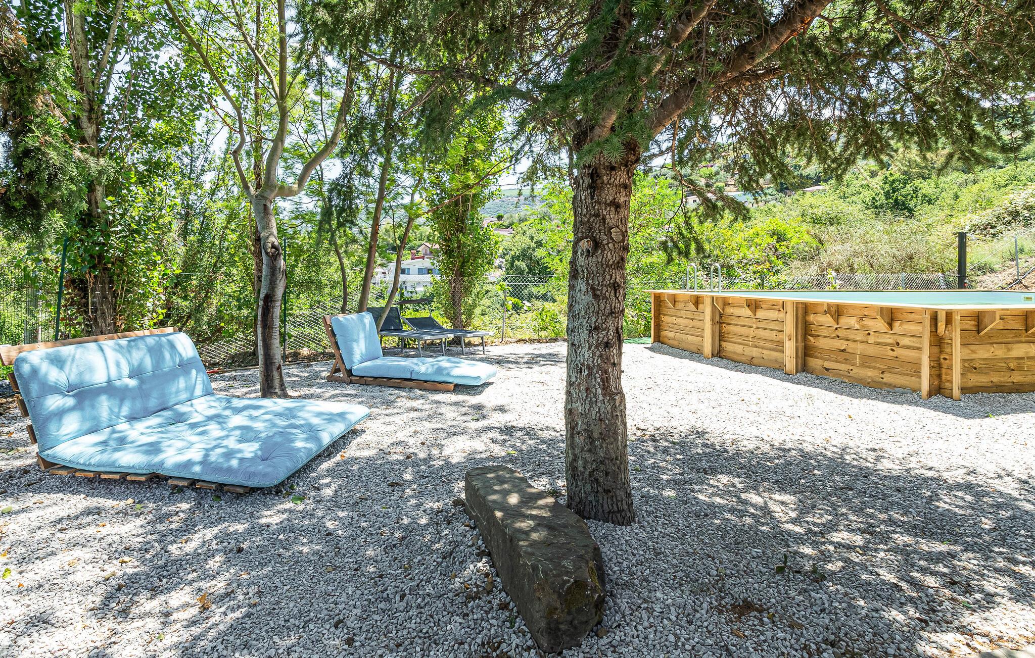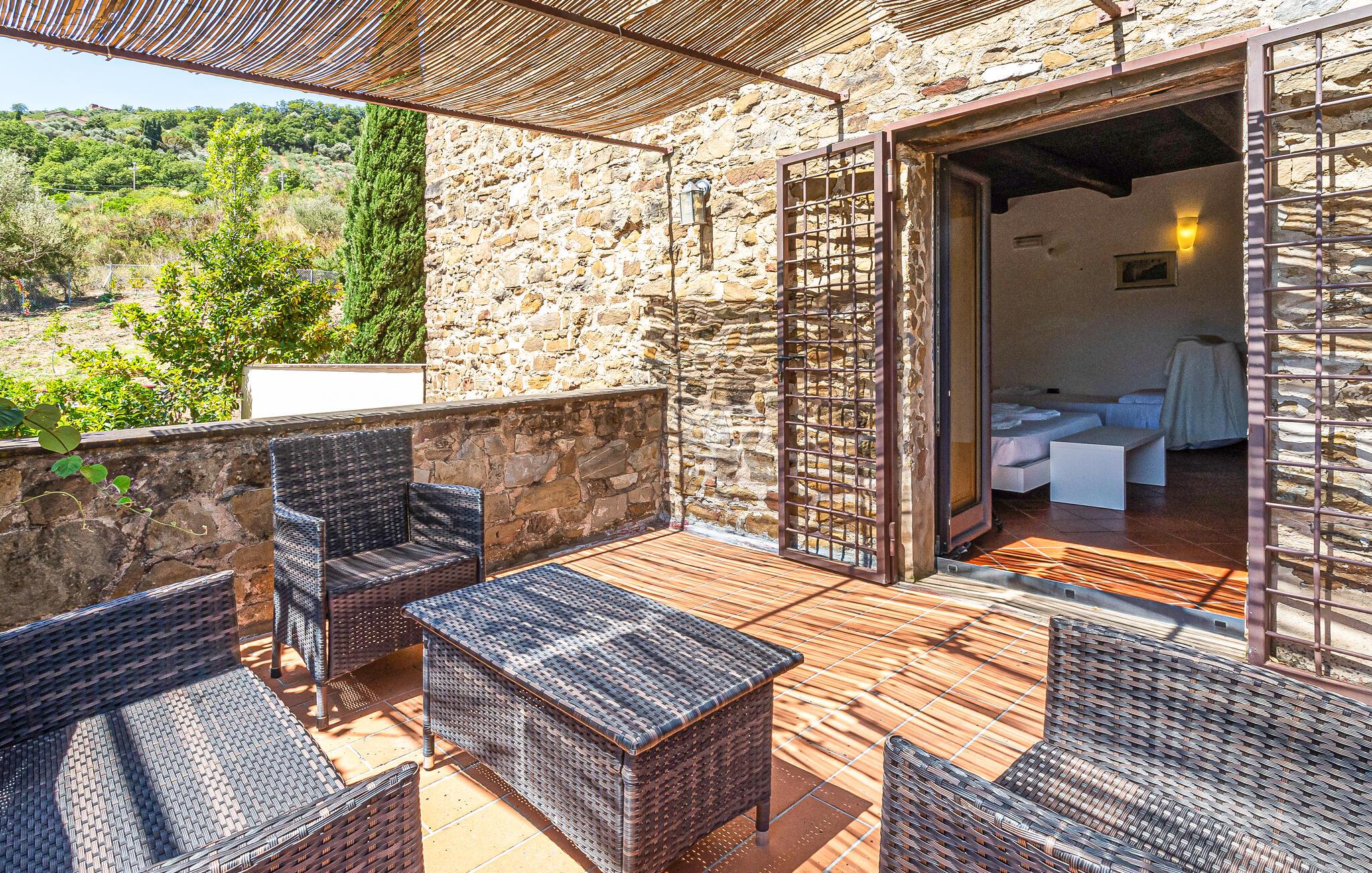 Beundre den spektakulære udsigt fra jeres naturstenterrasse eller gør jer godt tilpas i den rustikke spiseplads. Lad batterierne op på liggestolene og organiser hyggelige grillaftener i det fri på varme sommeraftener.