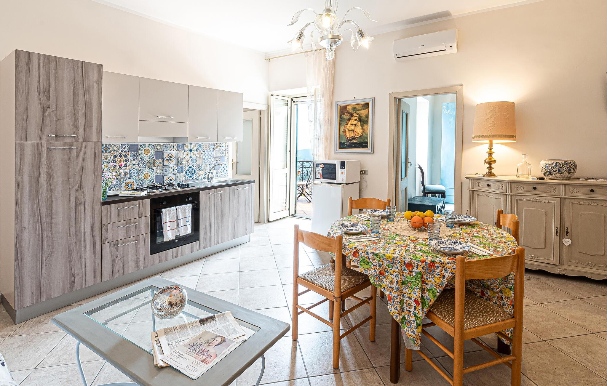 Nyd en varieret ferie i denne ferielejlighed med panoramaudsigt. Træd indenfor og bliv overrasket af det lyse og komfortable interiør i denne charmerende lejlighed. Tilbered lækre pastaretter sammen og glæd jer til afslappede måltider ved det indbydende spisebord. Efter en lang dag kan I samles her til en spilleaften eller hygge jer på sofaen til en filmaften. Jeres terrasse tilbyder en fortryllende udsigt over det maleriske landskab og er ideel til morgenmad under åben himmel. Indånd den friske luft og afslut dagen med et glas vin. Vandr gennem Cilento Nationalpark og oplev idylliske olivenlunde og imponerende udsigtspunkter på Monte Stella. Tag en dukkert i havet i Acciaroli eller Castellabate og prøv det lokale køkken på en god restaurant. Tag en dagstur til de imponerende templer i Paestum, udforsk det antikke arkæologiske område Velia/Elea, og slentr gennem den gamle bydel i Agropoli om aftenen.