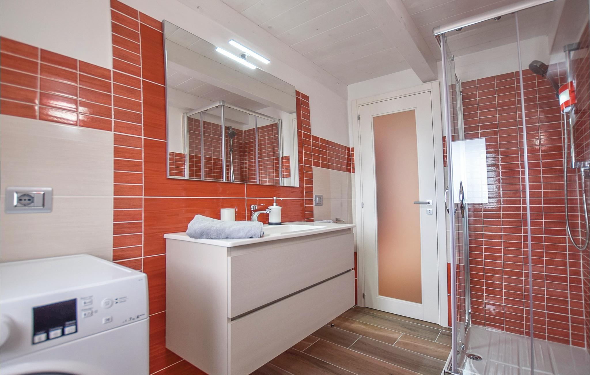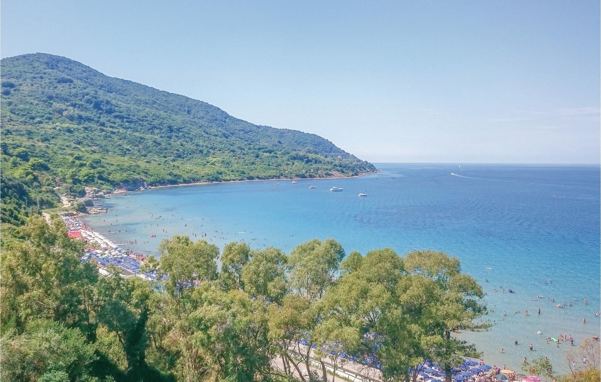 I Cilentos bakker, i Laureana Cilento, i et ferieanlæg med panoramaudsigt over havet ligger denne lyse og indbydende ferielejlighed. Den rummer et stort køkken med spisebord i suteplan, et badeværelse og en mellemetage med to soveværelser. Denne etage åbner sig med stuen, og har udsigt over havet og bakkerne. Udedørs er en 15 m² stor terrasse med udsigt over den lille have til fælles brug. Her er også en stor velplejet park og en fælles pool. Nabo til IKC561. I samme kompleks: IKC383-385, IKC521-522. Det tager kun 15 minutter i bil at køre til Agropoli (ca. 10 km) og de skønne strande ved Trentovas lille romantiske bugt. Mindre end en halv time fra de Castellabates skønne strande. 20 km til Paestum. Ideelt til en afslappet ferie, omgivet af den grønne natur og nær havet og Cilentos vigtigste seværdigheder.