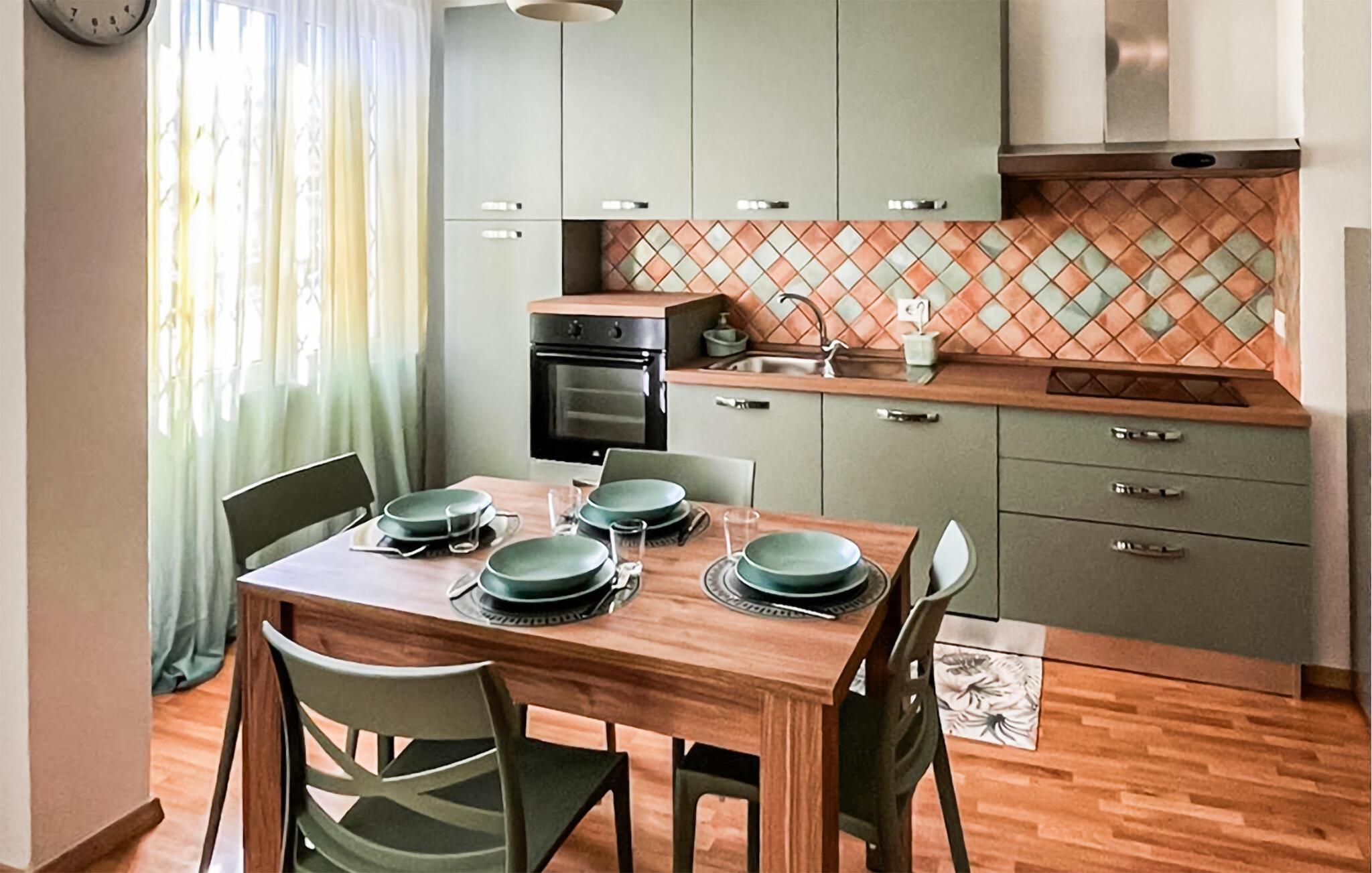 Bliv budt velkommen af ??den varme og indbydende atmosfære i jeres lejlighed. Stuen er moderne møbleret og tilbyder et komfortabelt sted at slappe af med en sofa og tv. Føl jer hjemme, læs en bog eller planlæg jeres næste udflugt. Den åbne spisestue med et træbord er perfekt til at dele måltider. Udnyt det veludstyrede køkken med middelhavsinspirerede detaljer. Tilbered morgenmaden eller en simpel middag her og nyd den afslappede atmosfære.