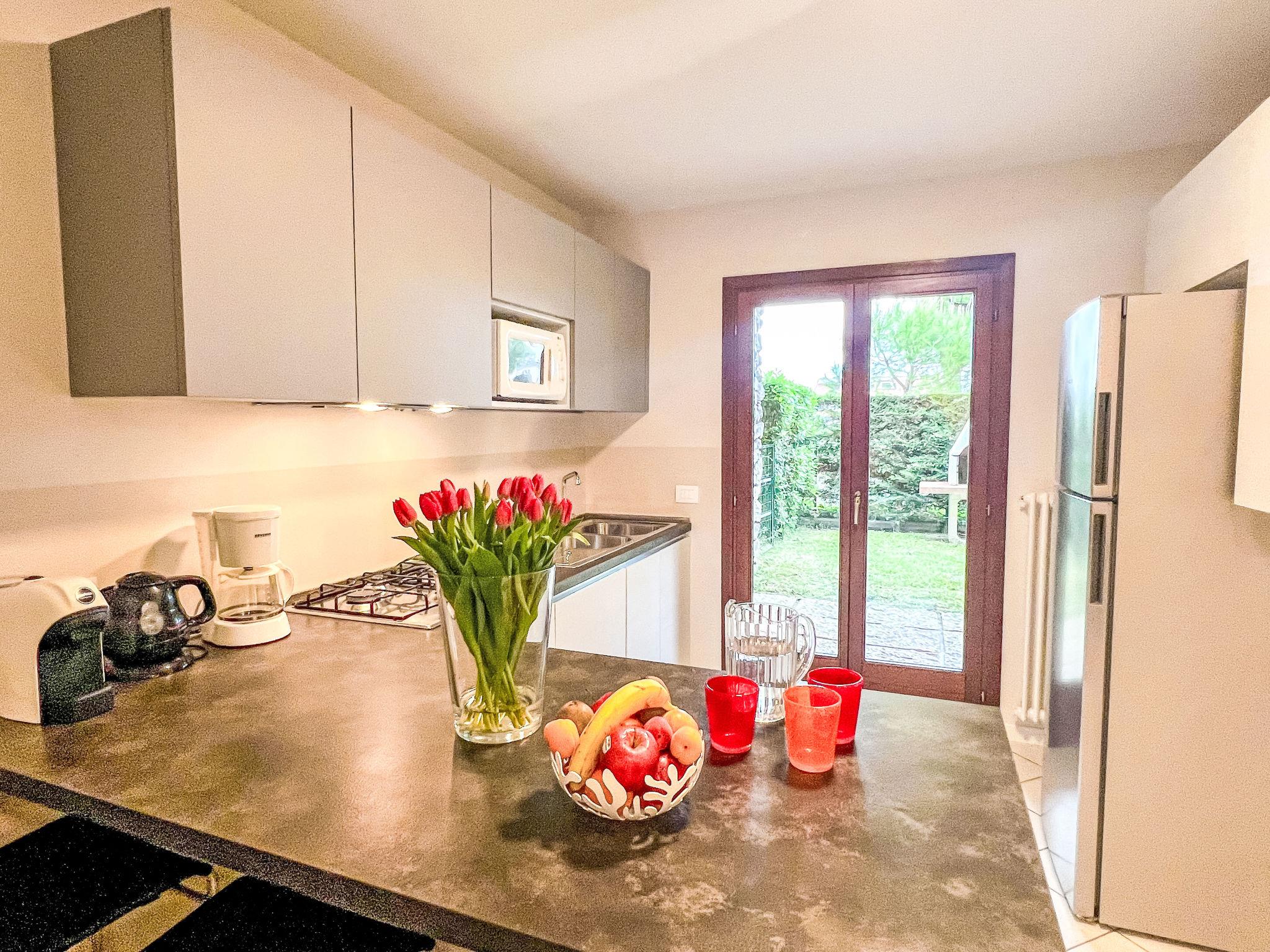 Small, comfortable resort "Ville Rio". 6 houses in the residence. In the district of Lignano-Sabbiadoro 1 km from the centre of Sabbiadoro, 13 km from the centre of Bibione, 95 km from the centre of Trieste, in the residential district, 1 km from the sea. For shared use: swimming pool (8 x 4 m, seasonal availability: 20.May. - 15.Sep.). Terrace. Private: property (fenced), lawn and wildlife garden. Supermarket 500 m, restaurant 700 m, bus stop 250 m, railway station "Latisana (Venezia-Trieste)" 20 km, sandy beach 1 km, thermal baths "Bibione Thermae" 15 km. Golf course (18 hole) 5 km.