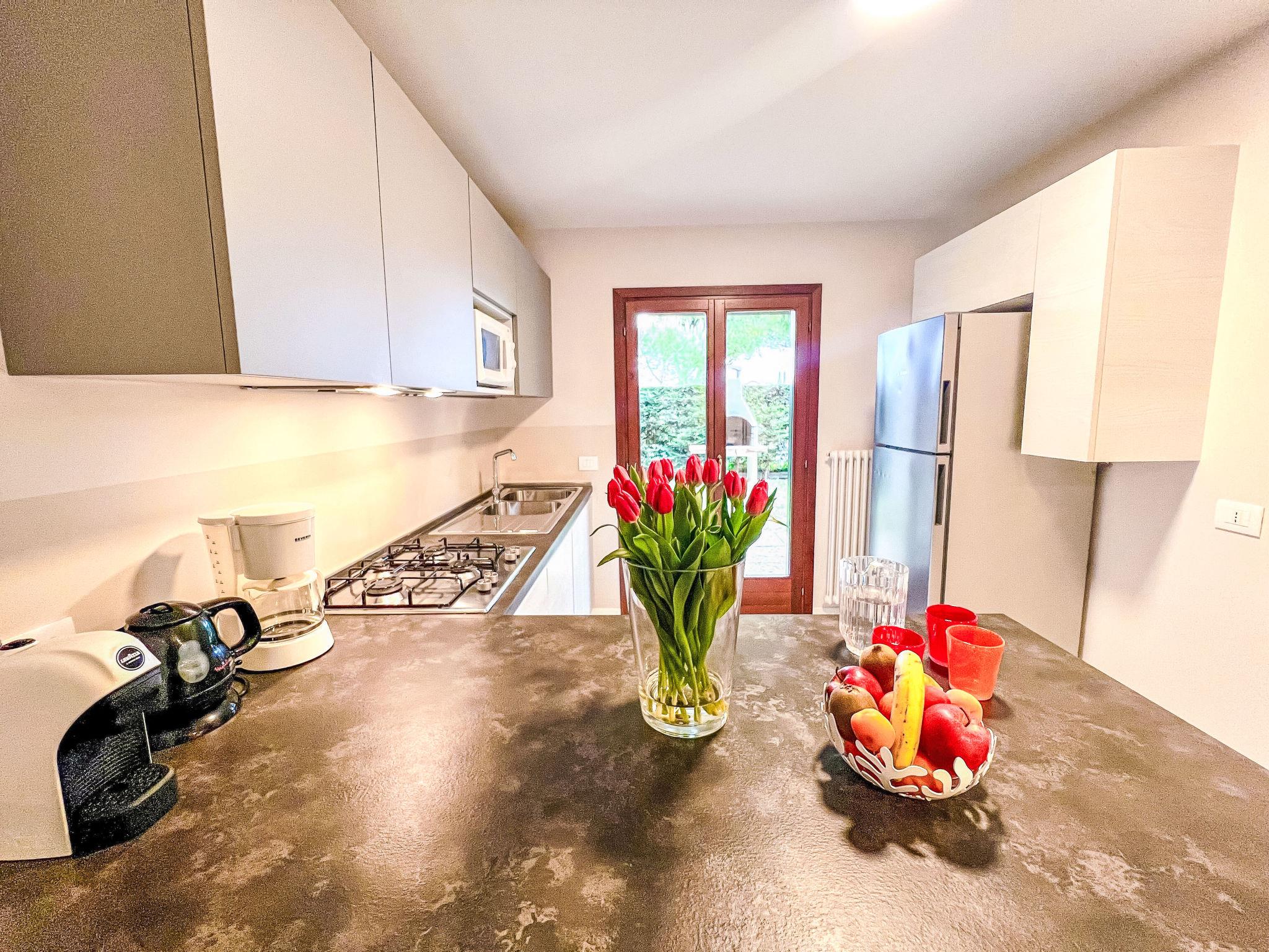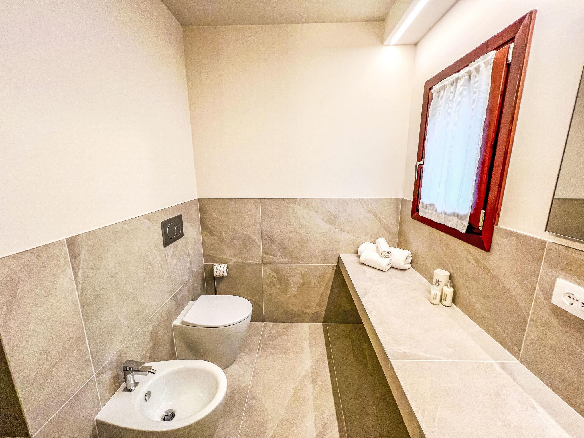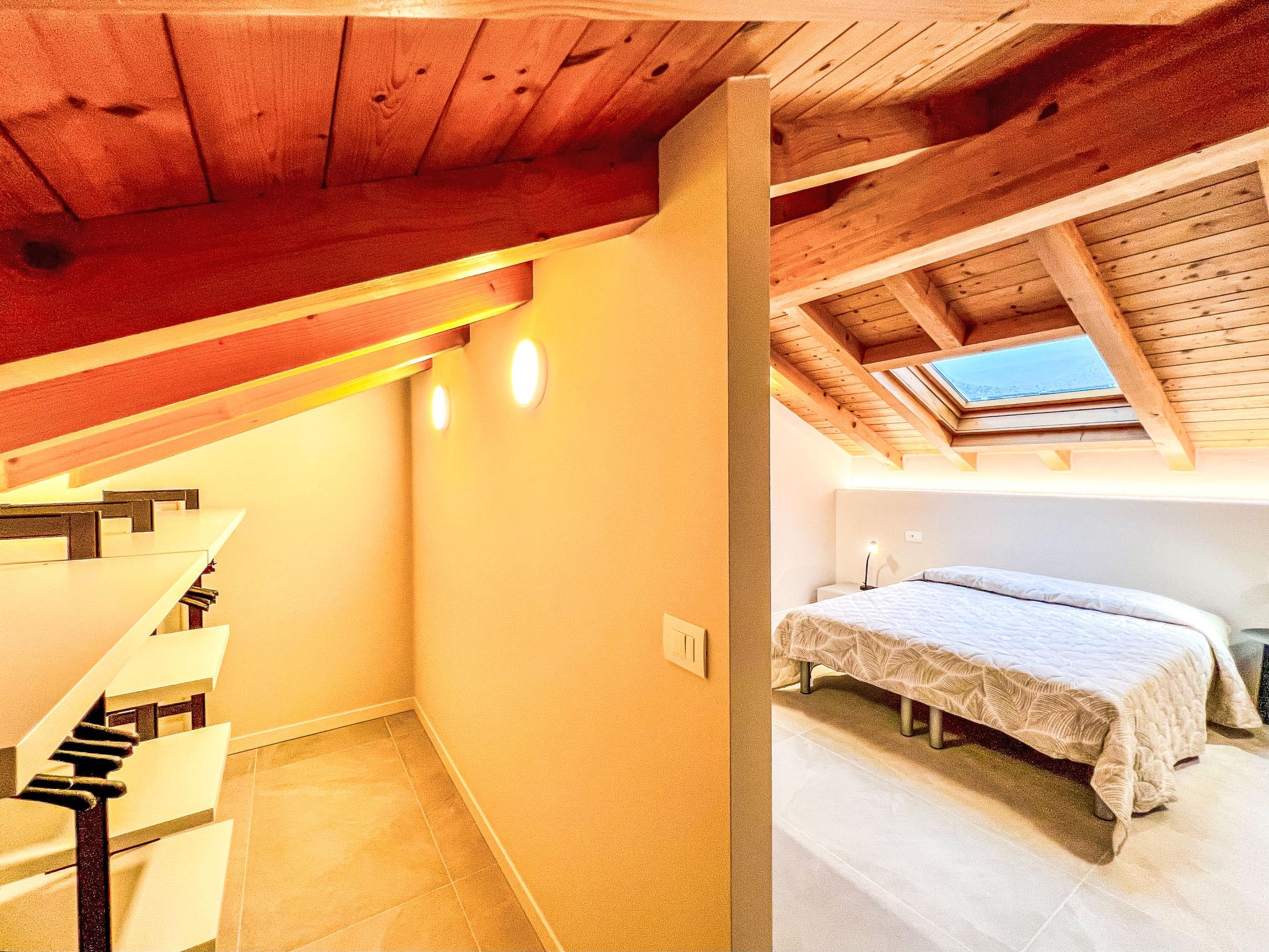 4-room terraced house 120 m2 on 3 levels. Partly renovated in 2023, tasteful and stylish furnishings: living/sleeping room with 2 sofabeds, dining table and satellite TV. Exit to the terrace. Kitchen (dishwasher, Gas stove, 4 gas rings, kettle, microwave, freezer, electric coffee machine). Exit to the terrace. Shower/WC. Upper floor: 2 double bedrooms. Shower/bidet/WC. Top floor: 1 room with 2 beds. Shower/bidet/WC. Gas heating, air-conditioning. 3 balconies, terrace roofed, garden. Terrace furniture, barbecue, deck chairs (3). Facilities: washing machine, safe, baby cot for up to 2 year olds (extra). Internet (WiFi, free). Garage on the property (2 cars) at the house. Maximum 1 small pet/ dog allowed. Plus electric coffee machine for espresso ("Lavazza A Modo Mio"). No mandatory extra charges to be paid on-site except for local tax. Bedlinen, final cleaning and all energy costs are included. IT030049B4LATERUUI