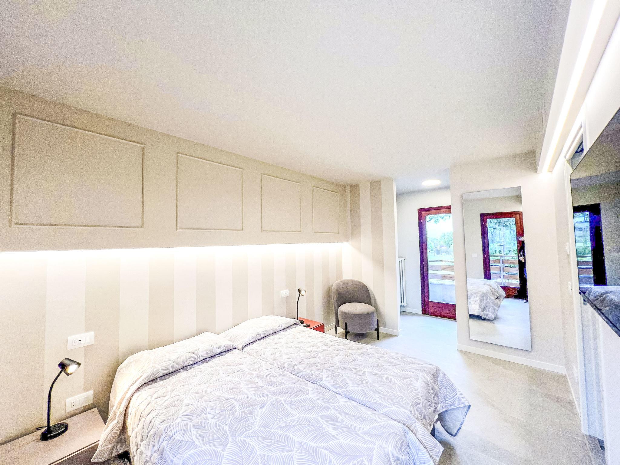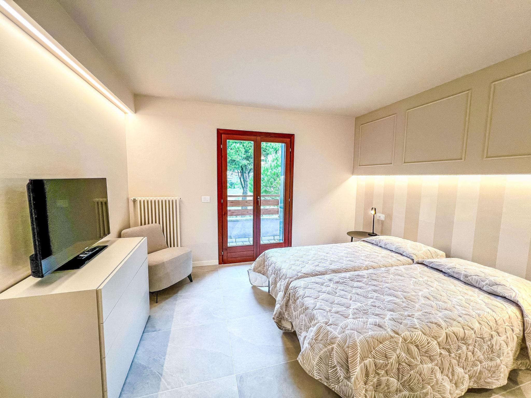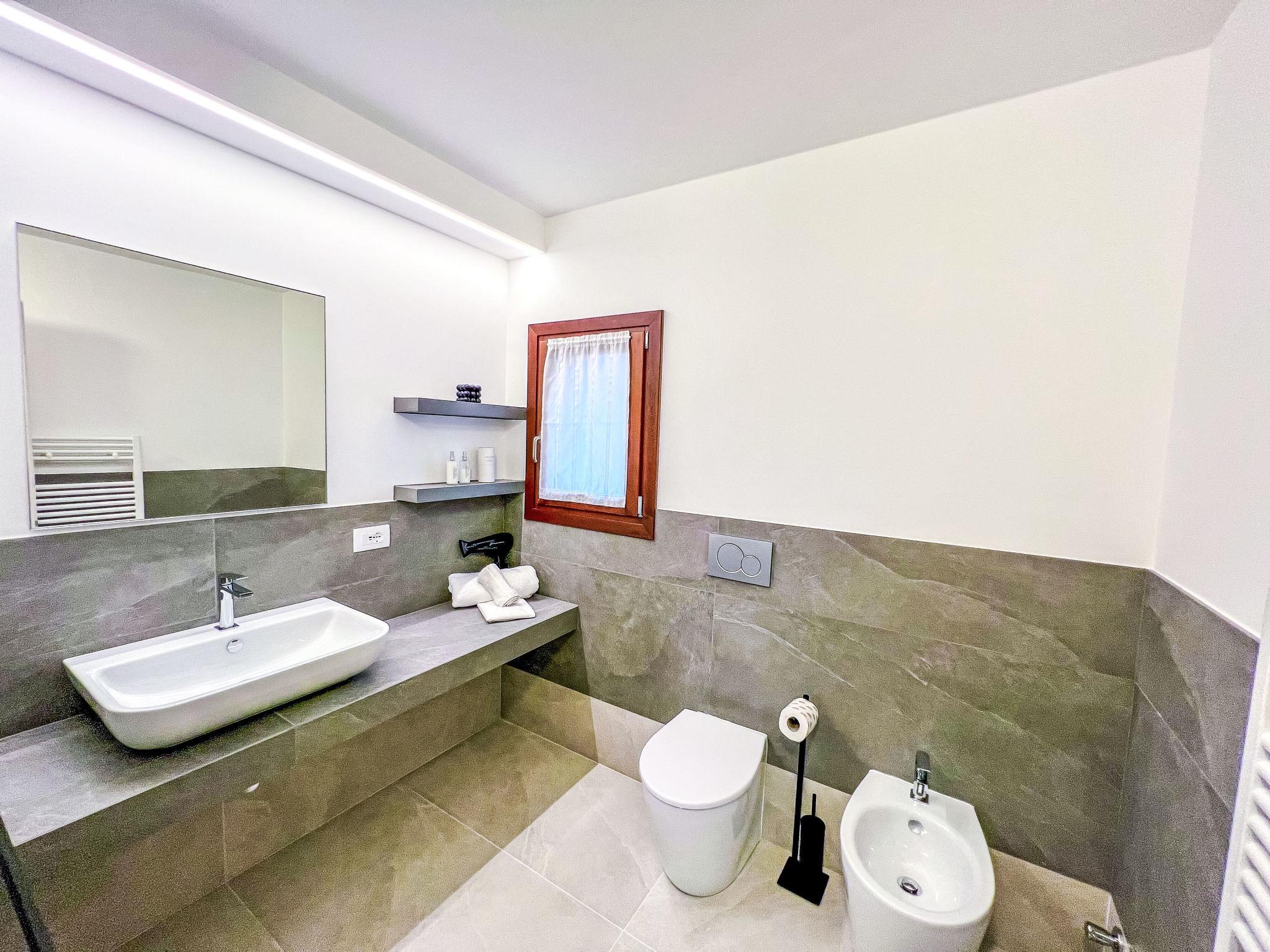 4-room terraced house 120 m2 on 3 levels. Partly renovated in 2023, tasteful and stylish furnishings: living/sleeping room with 2 sofabeds, dining table and satellite TV. Exit to the terrace. Kitchen (dishwasher, Gas stove, 4 gas rings, kettle, microwave, freezer, electric coffee machine). Exit to the terrace. Shower/WC. Upper floor: 2 double bedrooms. Shower/bidet/WC. Top floor: 1 room with 2 beds. Shower/bidet/WC. Gas heating, air-conditioning. 3 balconies, terrace roofed, garden. Terrace furniture, barbecue, deck chairs (3). Facilities: washing machine, safe, baby cot for up to 2 year olds (extra). Internet (WiFi, free). Garage on the property (2 cars) at the house. Maximum 1 small pet/ dog allowed. Plus electric coffee machine for espresso ("Lavazza A Modo Mio"). No mandatory extra charges to be paid on-site except for local tax. Bedlinen, final cleaning and all energy costs are included. IT030049B4LATERUUI