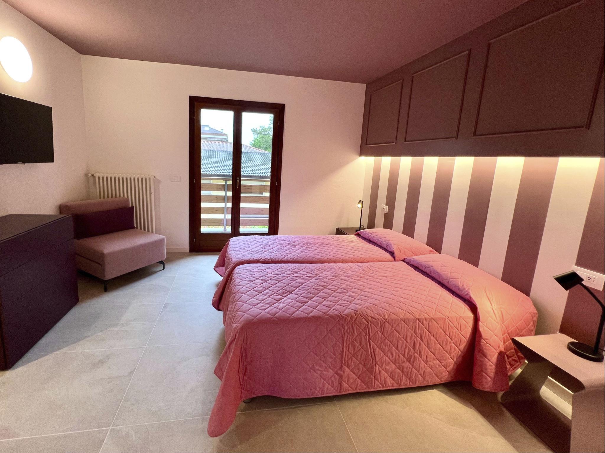 5-room terraced house 120 m2 on 3 levels. Partly renovated in 2024, tasteful and stylish furnishings: living/sleeping room with 2 sofabeds, dining table and satellite TV. Exit to the terrace. Kitchen (dishwasher, Gas stove, 4 gas rings, kettle, microwave, freezer, electric coffee machine). Exit to the terrace. Shower/WC. Upper floor: 2 double bedrooms. Shower/bidet/WC. Top floor: 2 rooms, each room with 2 beds. Shower/bidet/WC. Gas heating, air-conditioning. 3 balconies, terrace roofed, garden. Terrace furniture, barbecue, deck chairs (3). Facilities: washing machine, safe, baby cot for up to 2 year olds (extra). Internet (WiFi, free). Garage on the property (2 cars) at the house. Maximum 1 small pet/ dog allowed. Plus electric coffee machine for espresso ("Lavazza A Modo Mio"). IT030049B4FFJTA24R