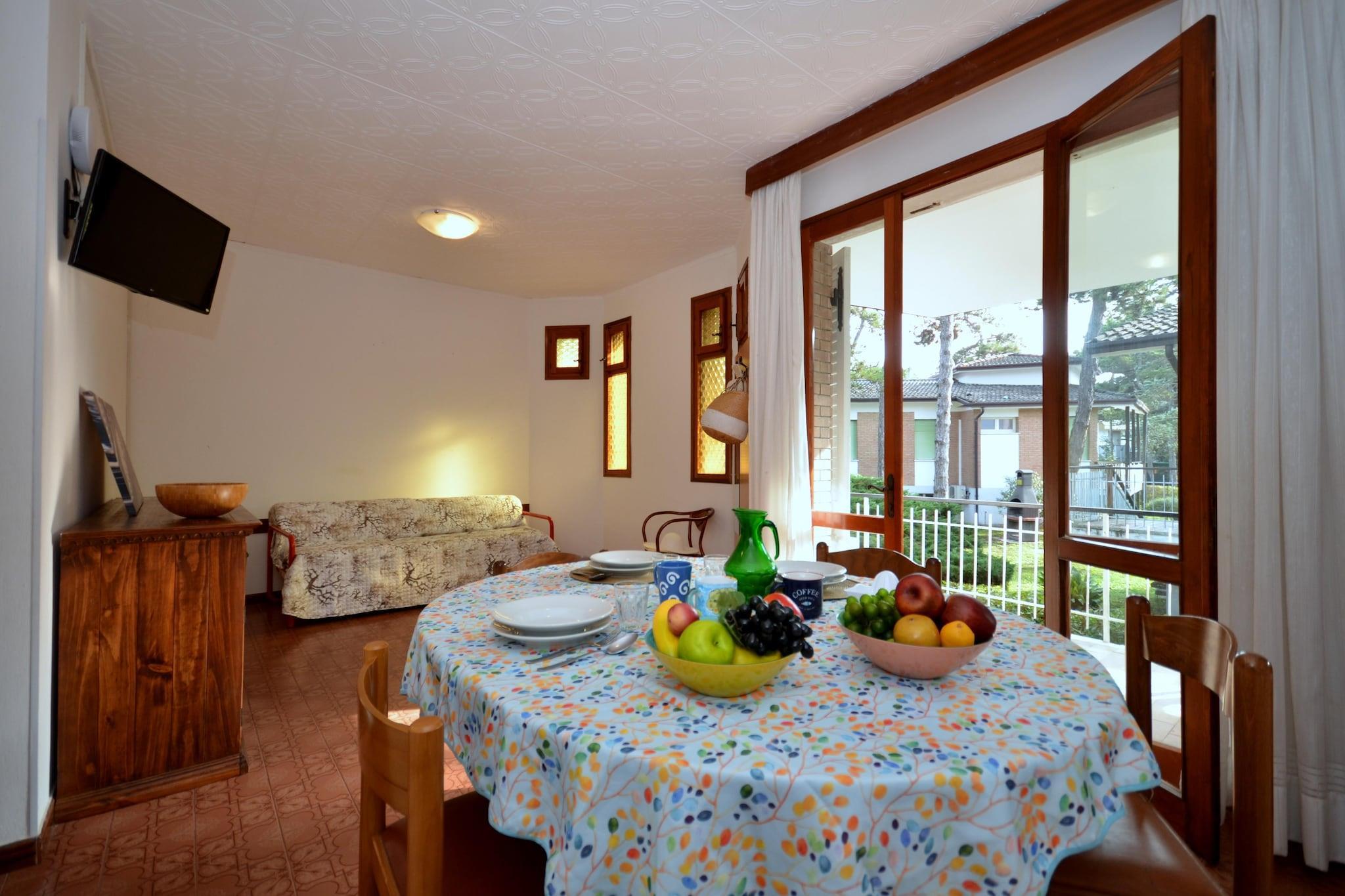 Den lille ferieby består af 12 enheder i et grønt område og ligger kun ca. 900 m fra stranden og ca. 800 m fra centrum af Lignano Pineta. Lignano - den velholdte og elegante badeby med sine tre distrikter Sabbiadoro, Pineta og Riviera ligger på en grøn halvø mellem Venedig og Trieste. Bag den 9 km lange, fine sandstrand, op til 100 m bred, ligger et bælte af fyrretræer på 250 hektar med smukke parker. En række sports- og underholdningsmuligheder er lige så naturlige som det brede udvalg af restauranter, butikker, barer og diskoteker. Detaljer: Strandservice (1 liggestol, 1 liggestol, 1 parasol) fra ca primo maj til medio september 10% rabat i diverse restauranter og butikker WLAN-invitation til vinsmagning med typiske snacks (fra ca. medio april til medio ca. -October) 20% rabat på greenfee (mandag-fredag) på den 18-hullers golfbane Lignano. og fra 19.09. Cykler kan lånes gratis med et depositum (afhængigt af tilgængelighed) for at udforske området Ikke egnet til personer med nedsat mobilitet