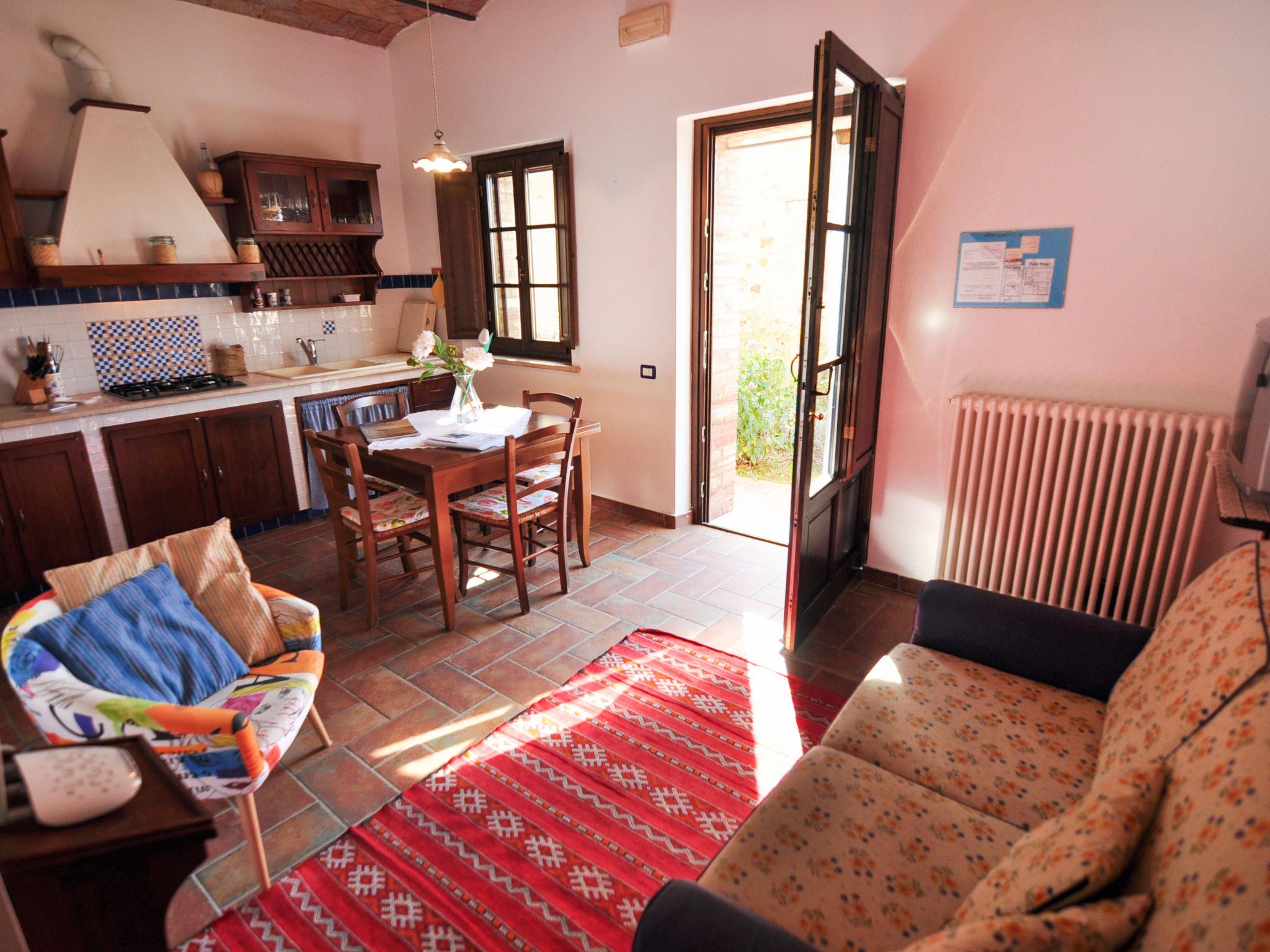 "Linearis E", 3-room apartment 55 m2 on 2 levels. Beautiful and tasteful furnishings: living/dining room with dining table and satellite TV. Exit to the garden. Kitchenette (mini-oven, 4 gas rings, toaster, kettle, electric coffee machine). Upper floor: 1 double bedroom. 1 room with 2 beds (80 cm). Shower/bidet/WC. Gas heating. Natural stone floors. Patio. Terrace furniture, barbecue. Very beautiful panoramic view of the countryside. Facilities: mosquito net, children's high chair, baby cot for up to 2 year olds, hair dryer. Internet (WiFi, free). Parking (1 car), garage (extra) at the house. Please note: suitable for families. Non-smokers only. Maximum 1 pet/ dog allowed. Private entrance, fire extinguisher. No mandatory extra charges to be paid on-site except for local tax. Bedlinen, towels, final cleaning and all energy costs are included. IT048054B4SIWT4EGH
