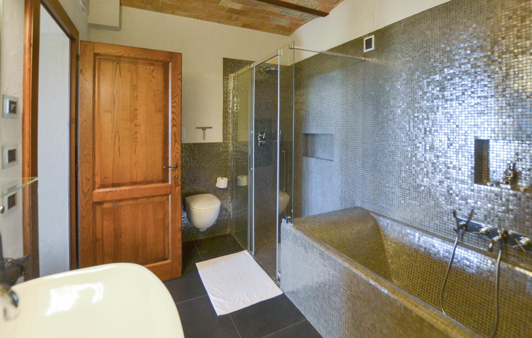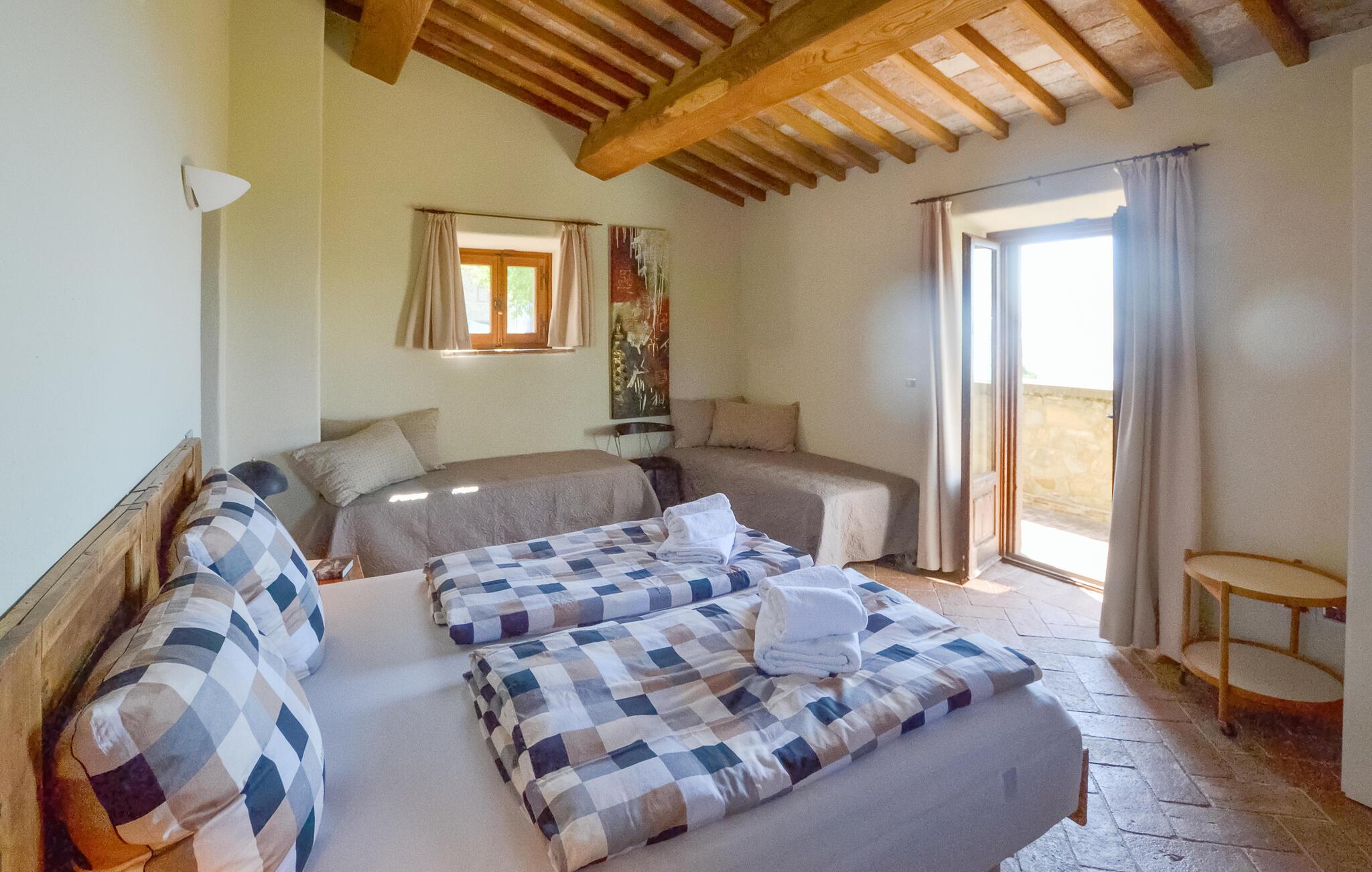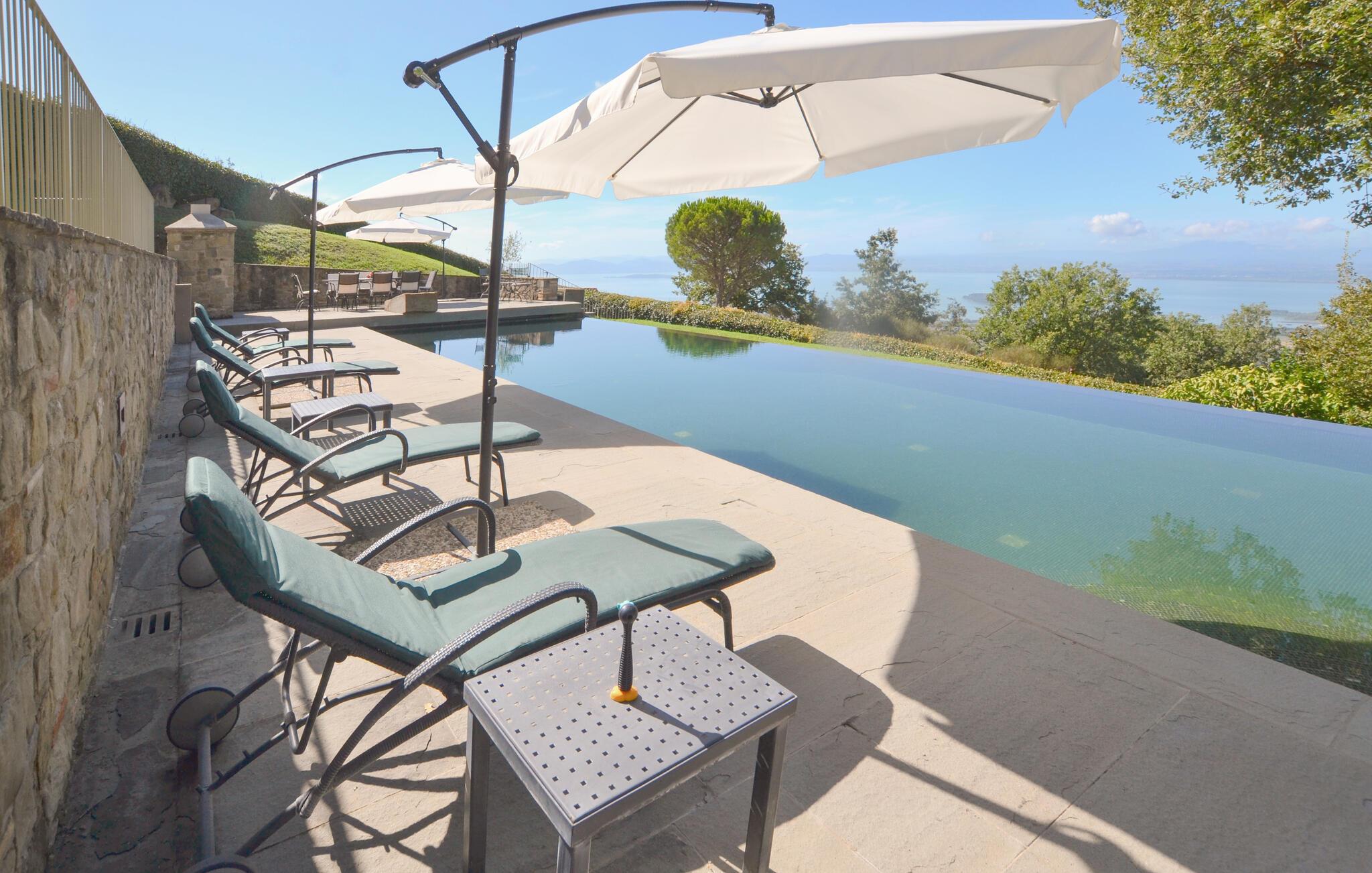 Denne rummelige ejendom har en privilegeret beliggenhed med en betagende udsigt over Trasimenosøen. Det stilfulde og rummelige interiør byder på en perfekt blanding af rustik charme og moderne komfort. Fremkald kulinariske lækkerier, nyd lange måltider med toscansk vin, og udnyt tiden sammen til stimulerende samtaler i en unik atmosfære.