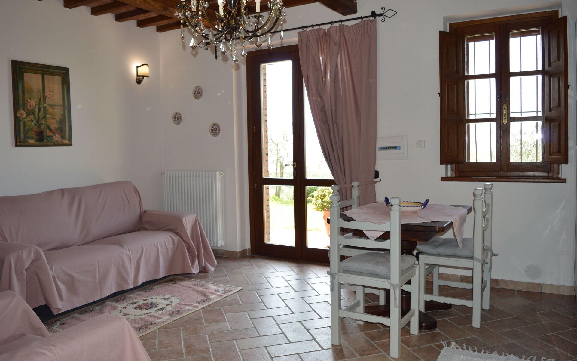 Eine externe Steintreppe führt Sie in den ersten Stock. Die Wohnung verfügt über einen Wohnbereich, der aus einem Wohnzimmer und einem Esszimmer mit Sofas, Kamin, Fernseher und Esstisch besteht. Der Schlafbereich umfasst ein Doppelzimmer, ein Zweibettzimmer und ein Badezimmer mit Dusche. Diese Wohnung verfügt über eine Terrasse mit einem außergewöhnlichen Blick auf den Trasimenischen See mit einer Pergola, die mit bequemen Gartenmöbeln ausgestattet ist und totale Entspannung bietet. Es gibt auch eine vordere Terrasse, von der aus Sie unvergessliche Ausblicke und Sonnenuntergänge genießen können.