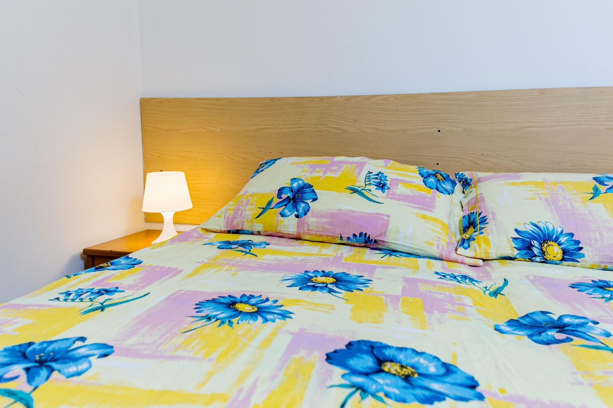 Stue(dobbeltsovesofa, Fjernsyn(parabol)), tekøkken(spisebord, kogeplade(Komfur med fire kogeplader, gas), mikrobølgeovn, køleskab), soveværelse(køjeseng eller 2 enkeltsenge), badeværelse(badekar eller bruser, toilet, føntørrer), Reception, Bordtennis, Legeområde, Have, balkon, varme, klimaanlæg, terrasse(deles med andre gæster), havemøbler, parkering, liggestole, Parasol, swimmingpool(deles med andre gæster, inkl. separat børne swimmingpool (maks. dybde 50 cm), 5 x 4 m., opened from Apr upto and including Sep), baby crib(paid)