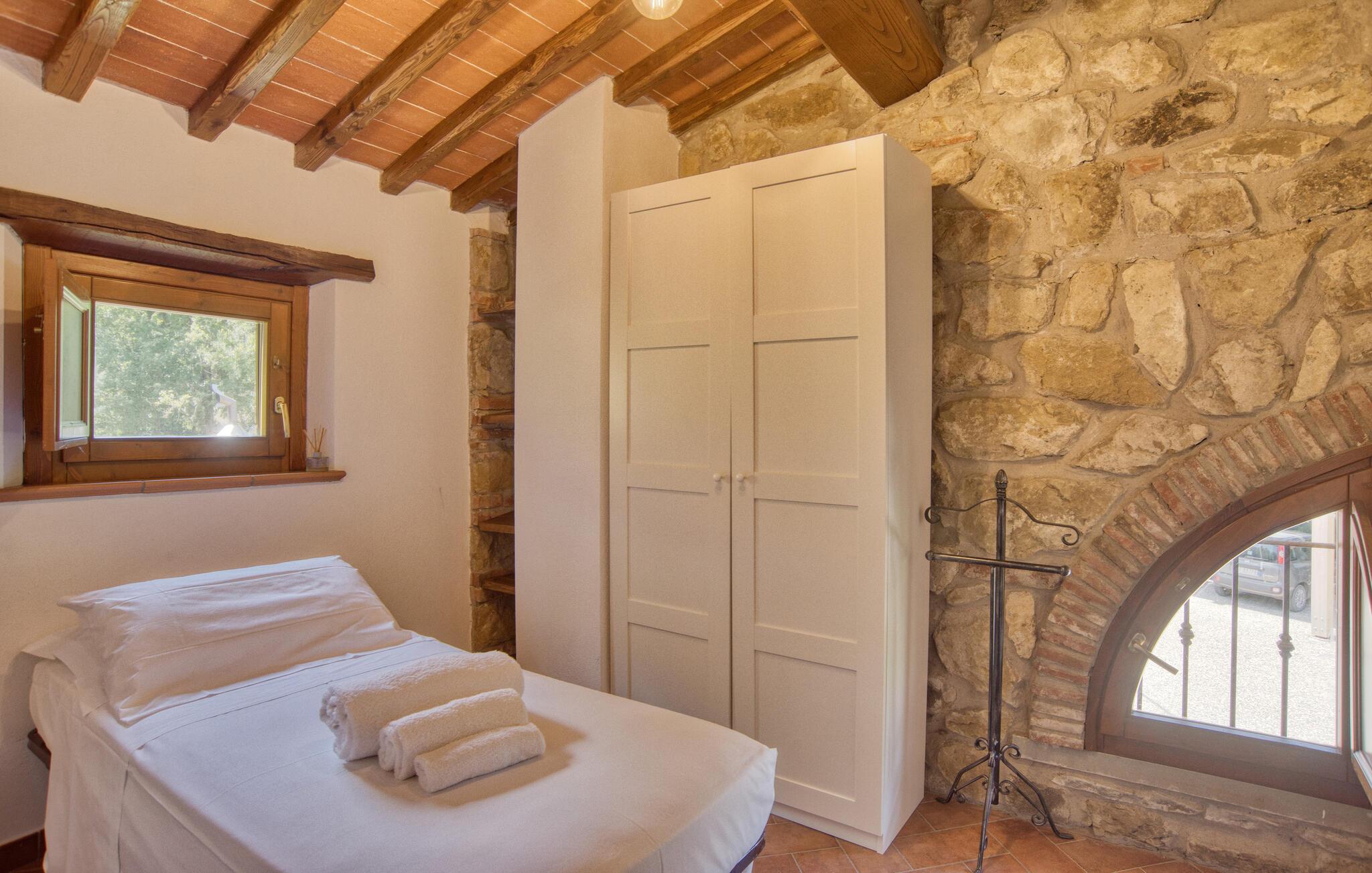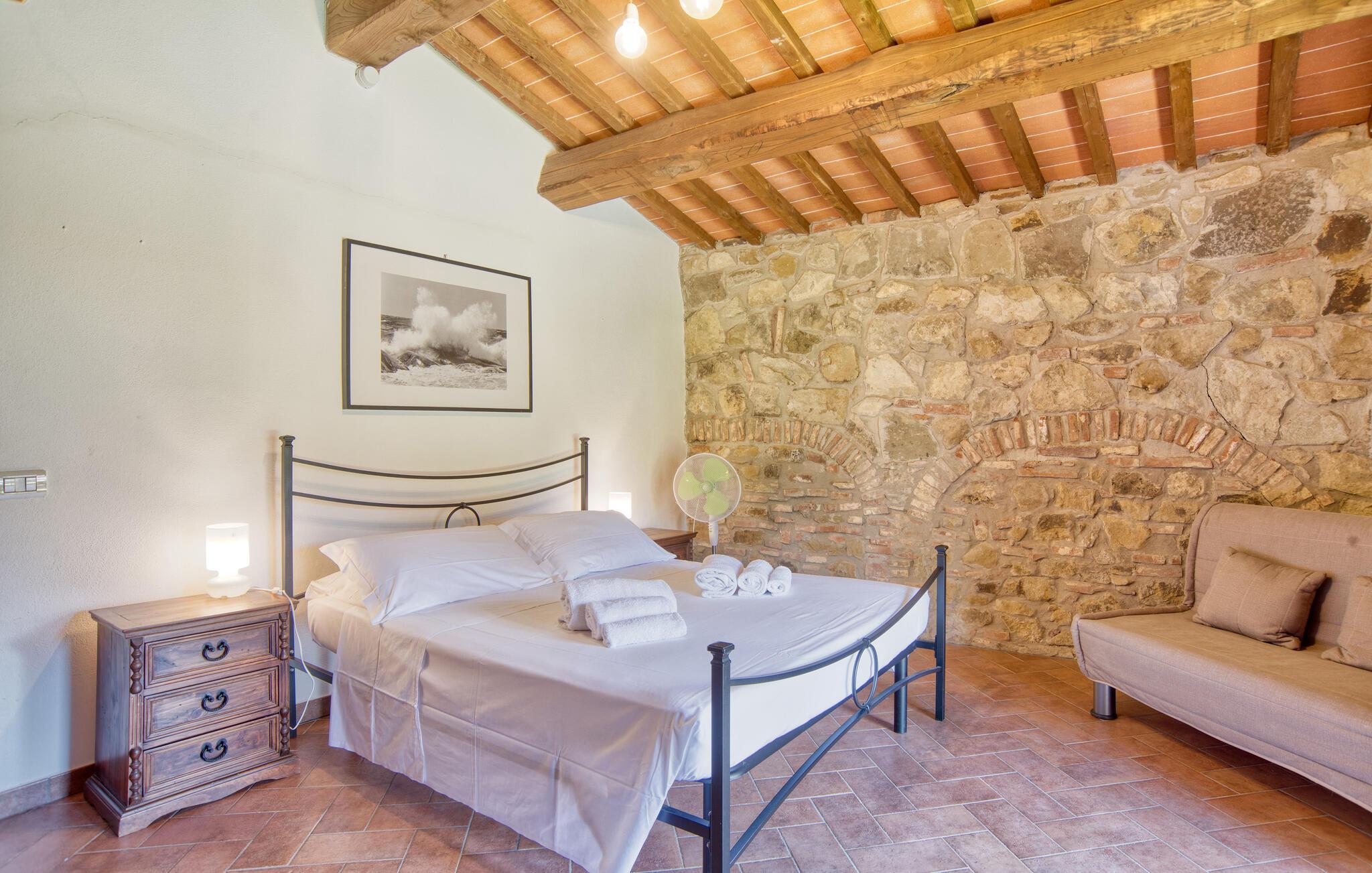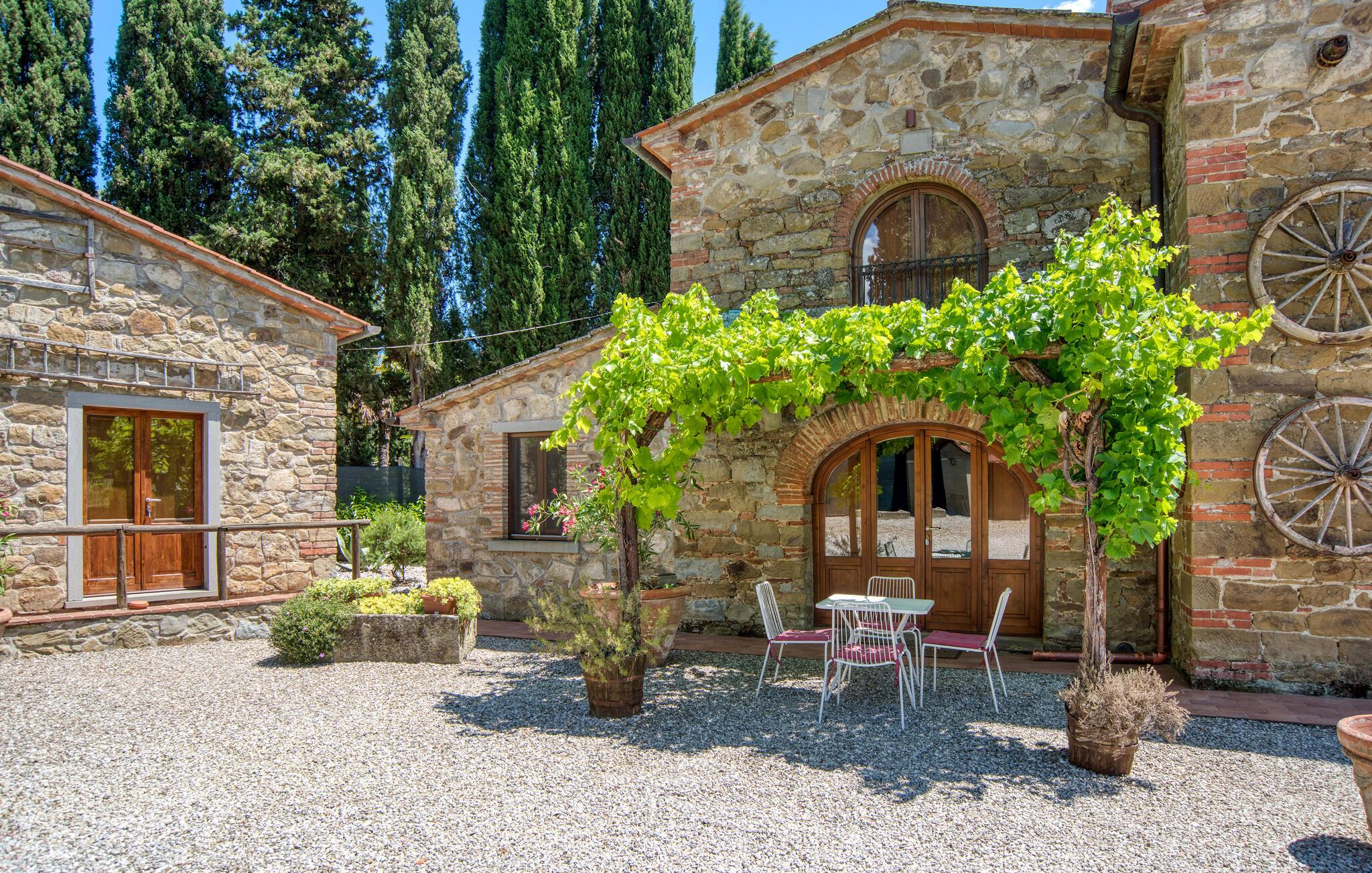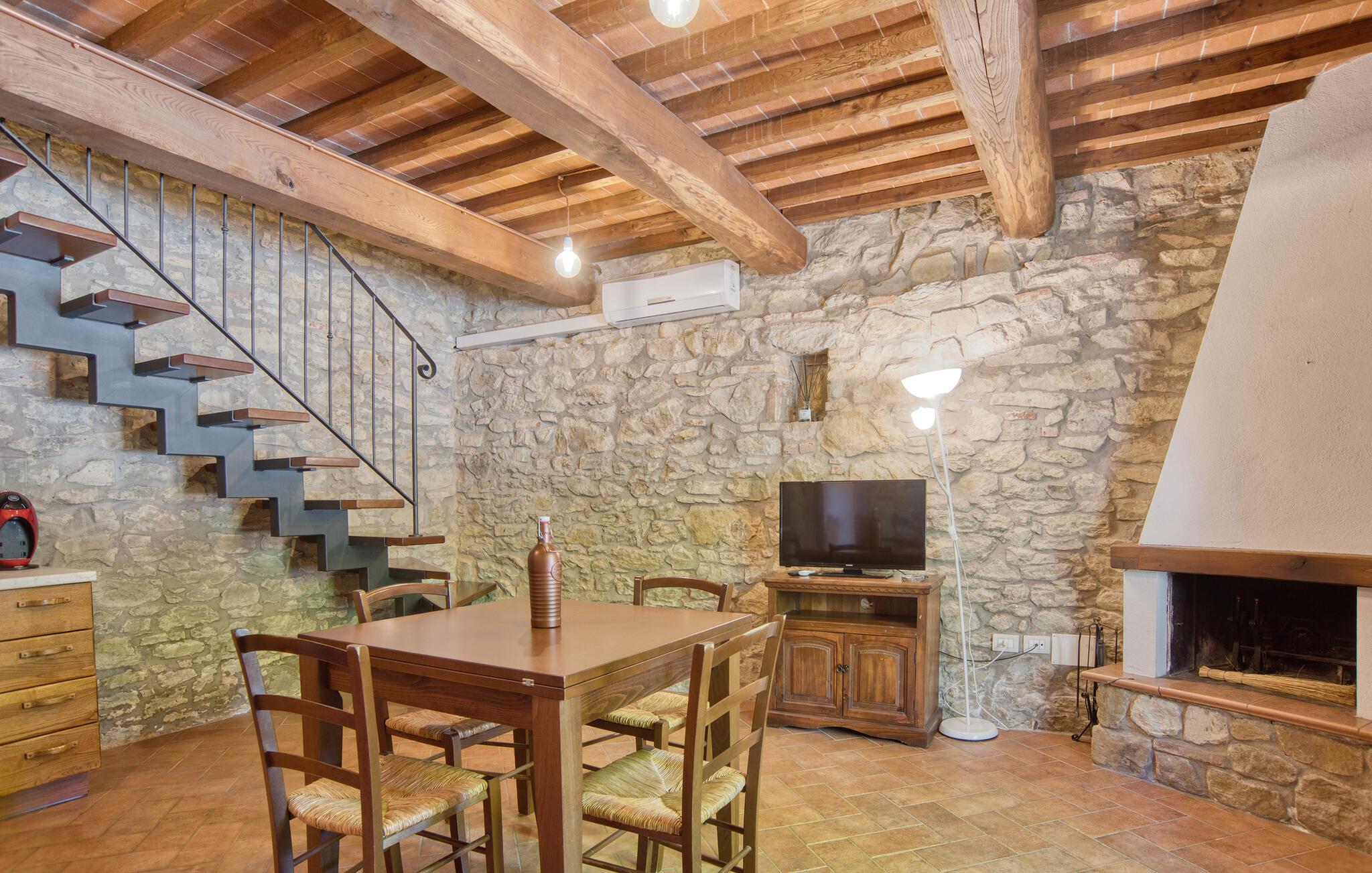 Dette smukke feriehus byder jer velkommen nær Arezzo. Nyd det rummelige stenhus, der har bevaret sin charme med fritlagte stenvægge og hyggelig indretning indenfor. Her kan I have det godt med komfort og enkel udsmykning og samle kræfter og energi i jeres private kapel. I kan også udforske haven og indsnuse de smukke blomster og blomster og slappe af på liggestolene ved den store pool. I kan tilbringe aftenen i underholdende selskab ved grillen og lægge planer for jeres næste feriedage.