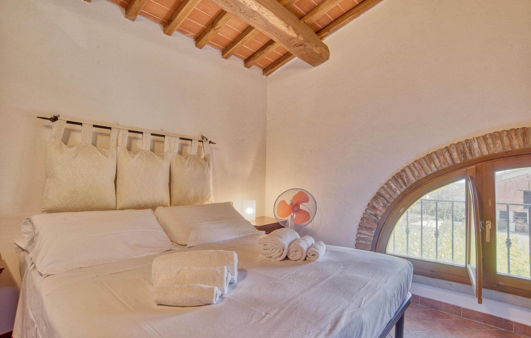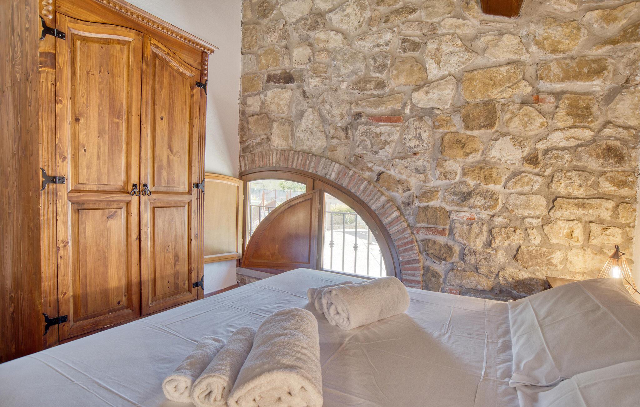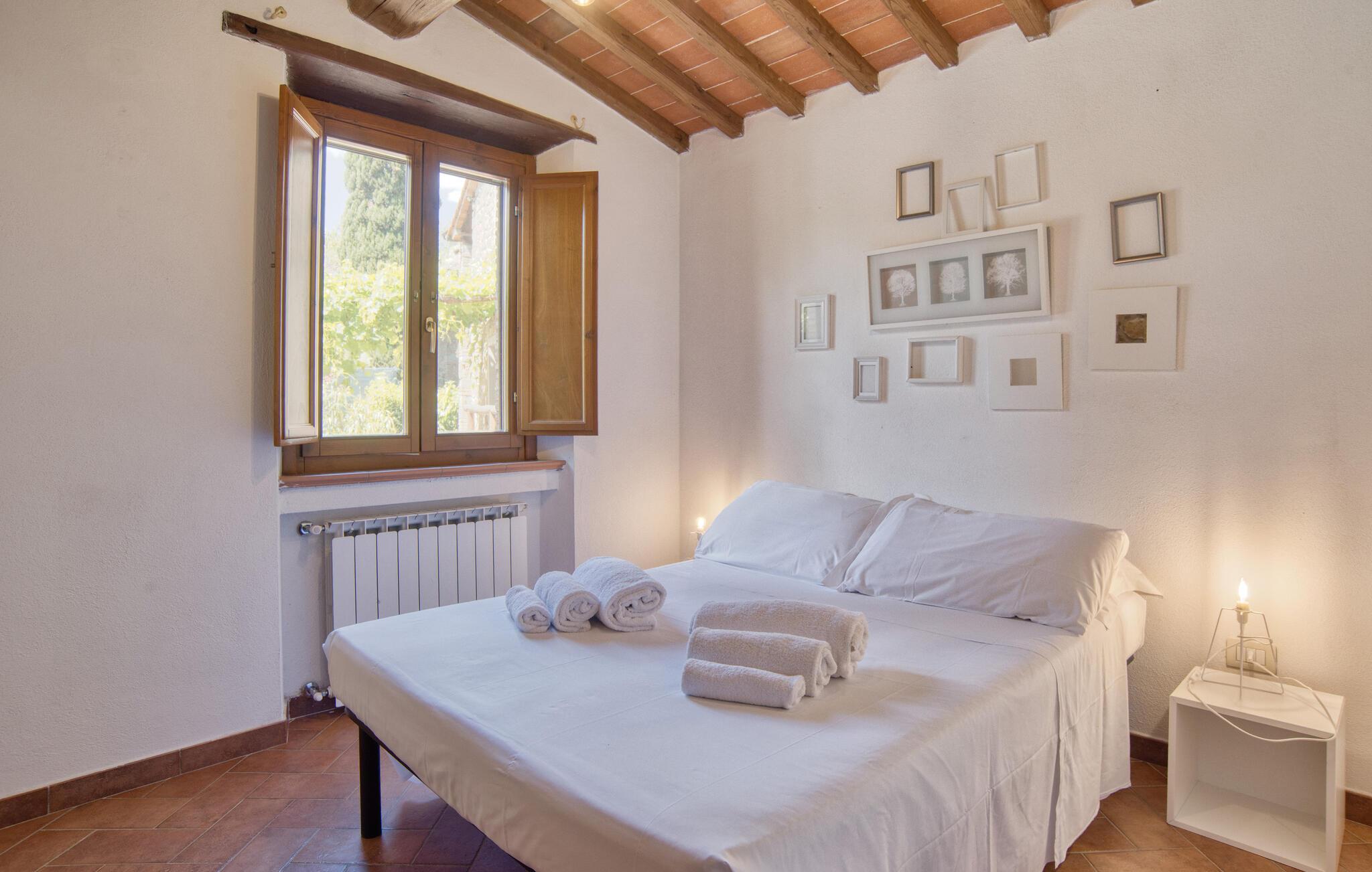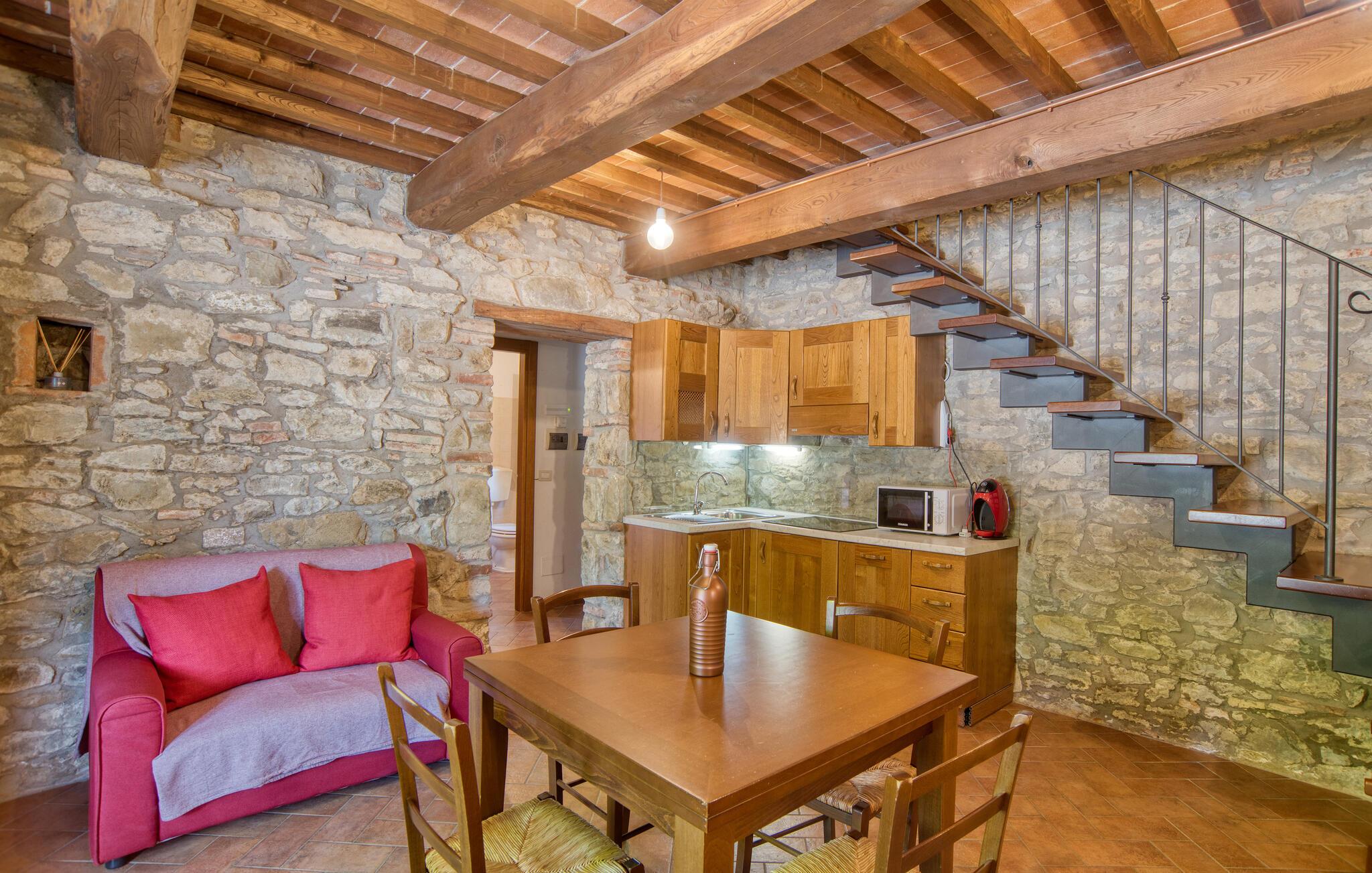 Dette smukke feriehus byder jer velkommen nær Arezzo. Nyd det rummelige stenhus, der har bevaret sin charme med fritlagte stenvægge og hyggelig indretning indenfor. Her kan I have det godt med komfort og enkel udsmykning og samle kræfter og energi i jeres private kapel. I kan også udforske haven og indsnuse de smukke blomster og blomster og slappe af på liggestolene ved den store pool. I kan tilbringe aftenen i underholdende selskab ved grillen og lægge planer for jeres næste feriedage.