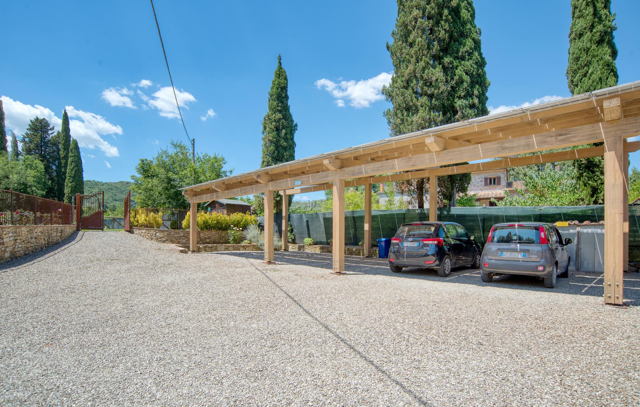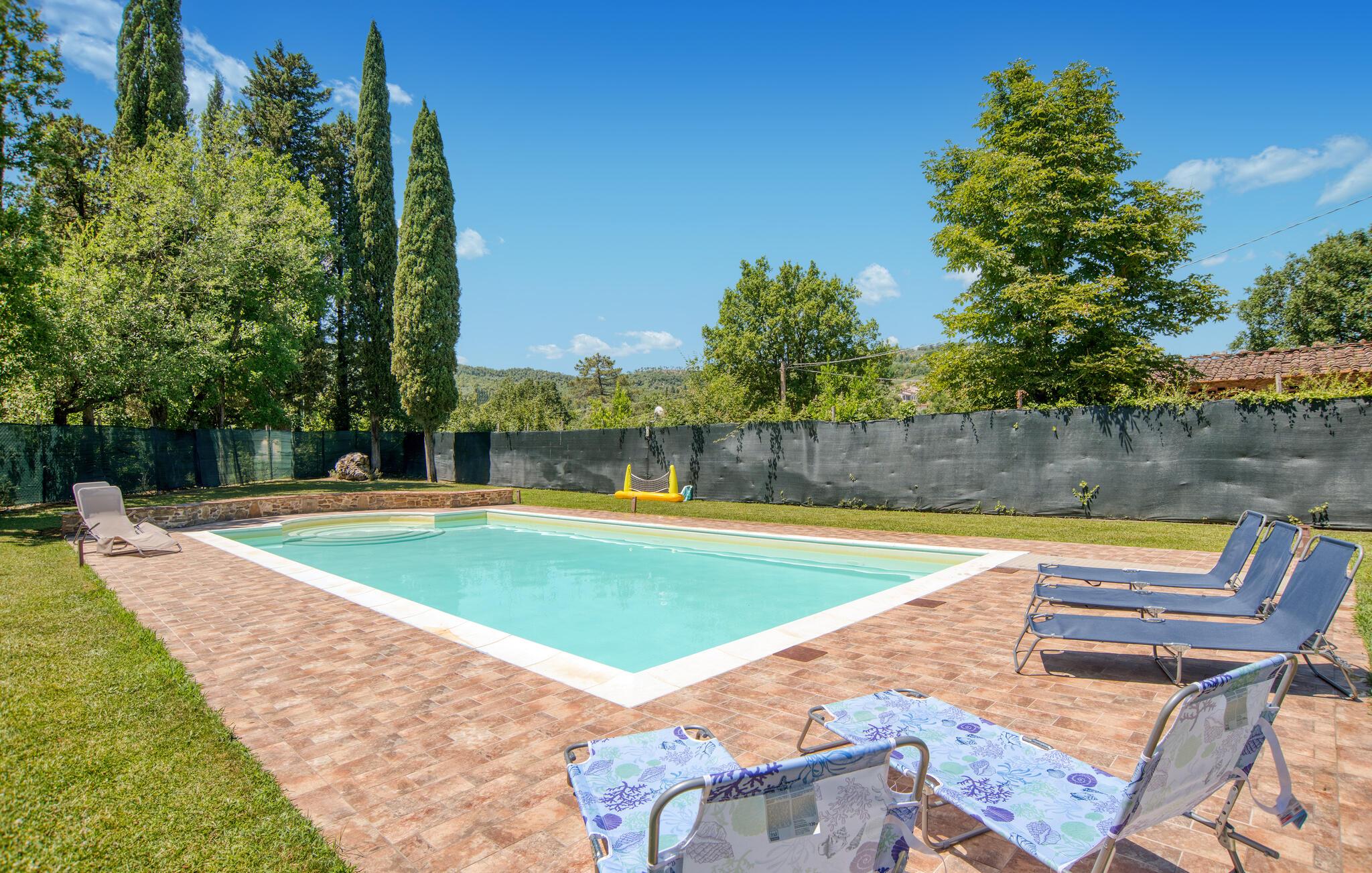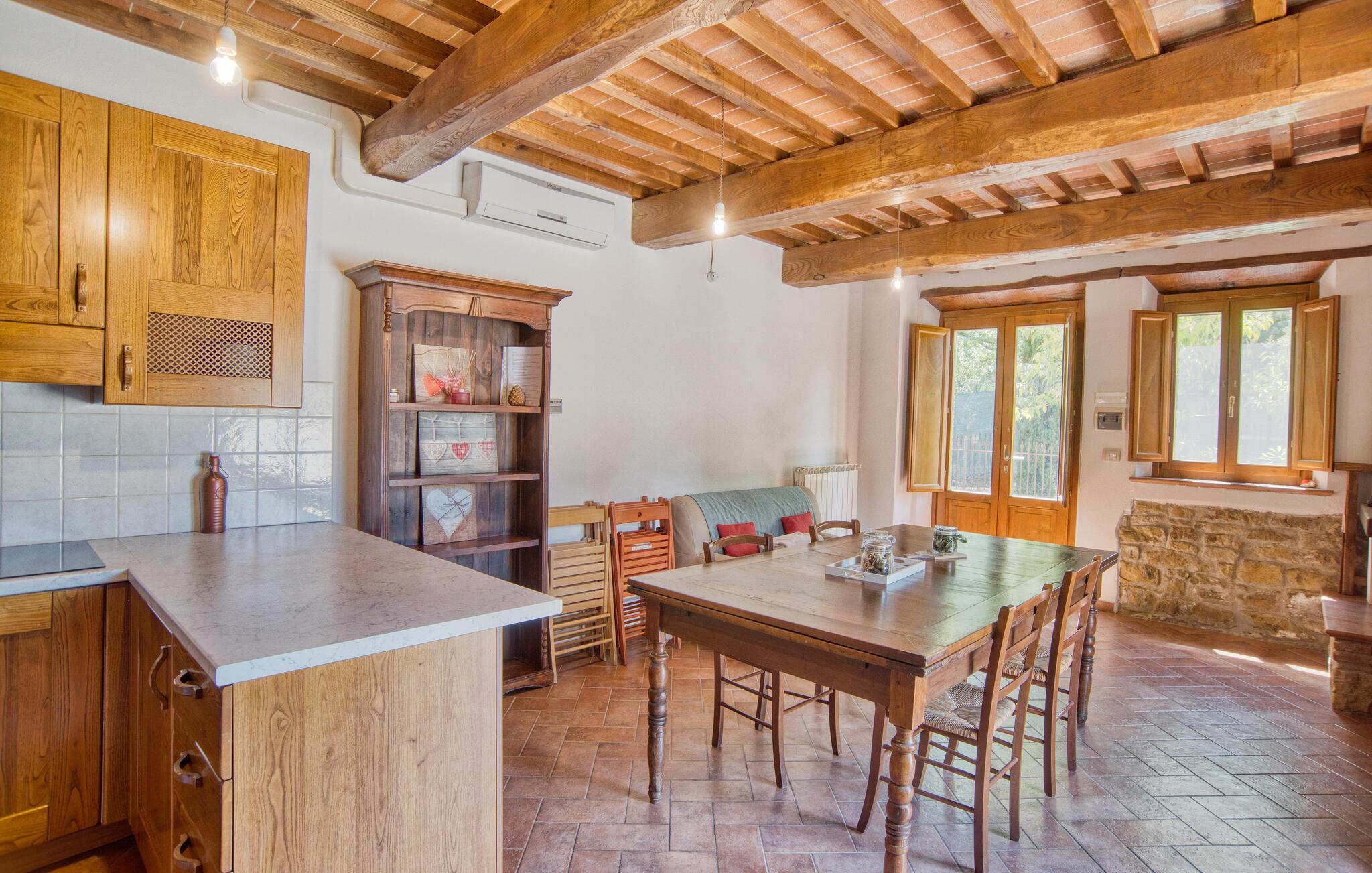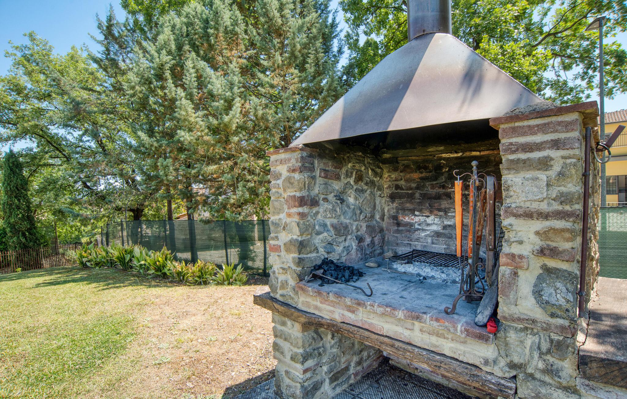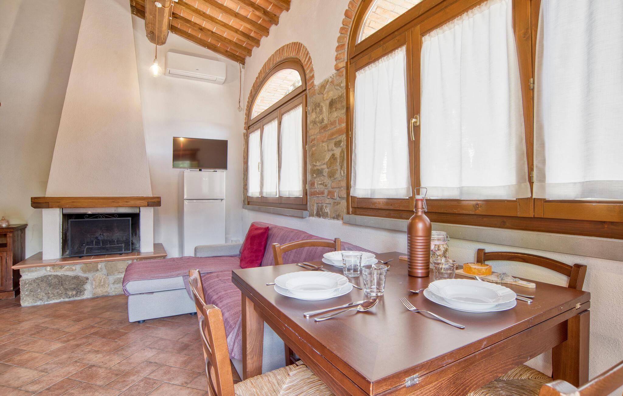 Dette smukke feriehus byder jer velkommen nær Arezzo. Nyd det rummelige stenhus, der har bevaret sin charme med fritlagte stenvægge og hyggelig indretning indenfor. Her kan I have det godt med komfort og enkel udsmykning og samle kræfter og energi i jeres private kapel. I kan også udforske haven og indsnuse de smukke blomster og blomster og slappe af på liggestolene ved den store pool. I kan tilbringe aftenen i underholdende selskab ved grillen og lægge planer for jeres næste feriedage.