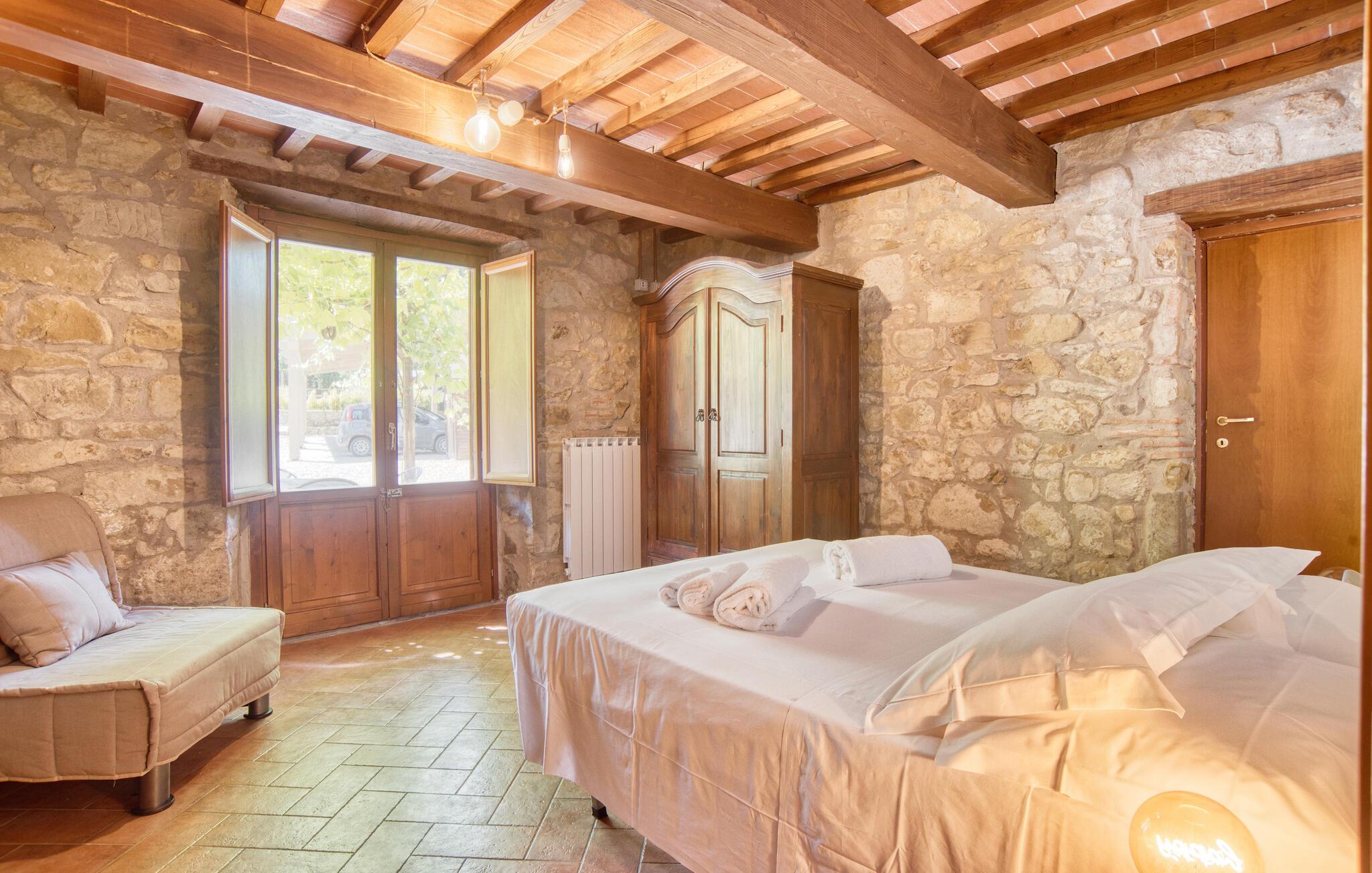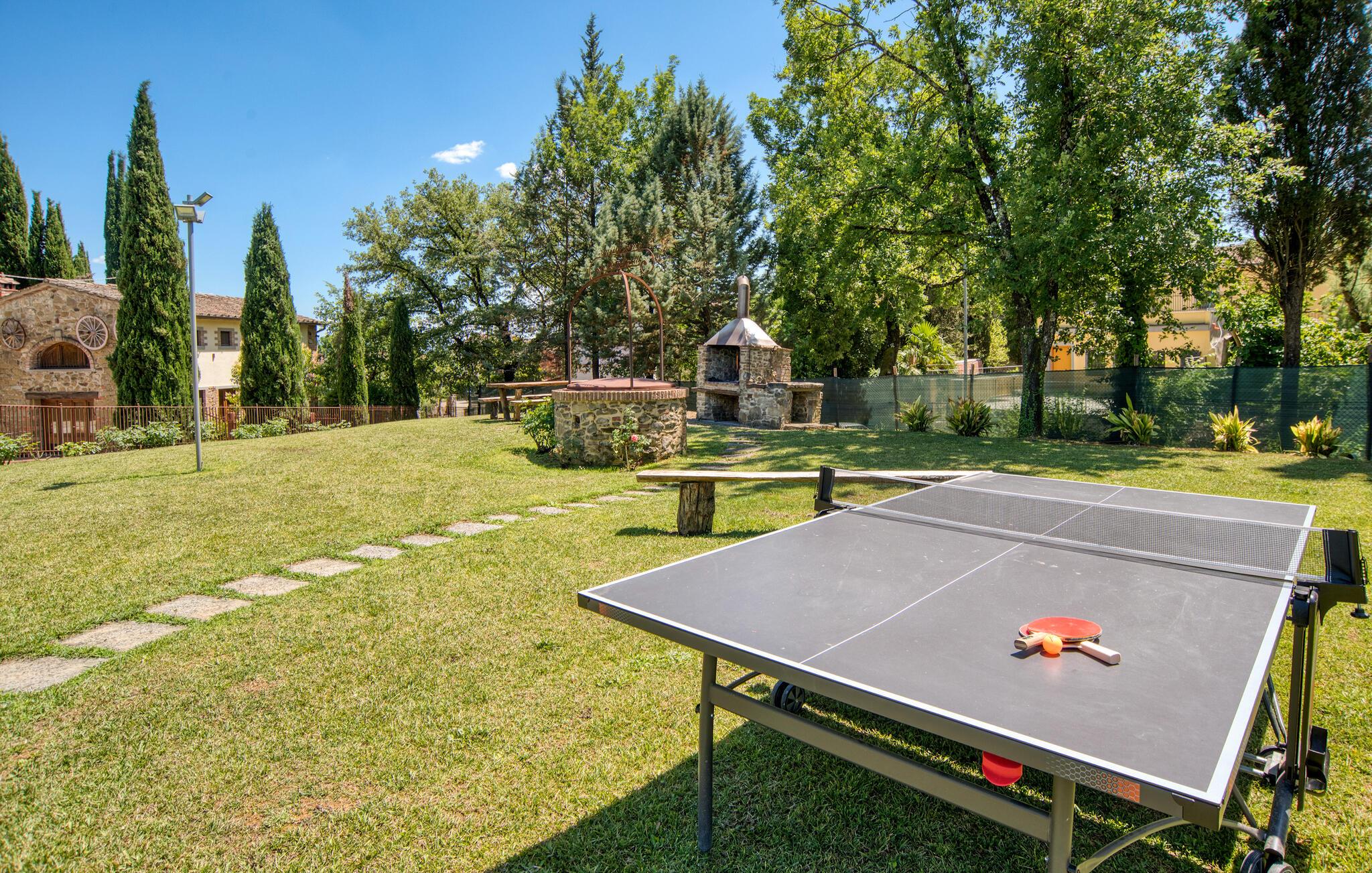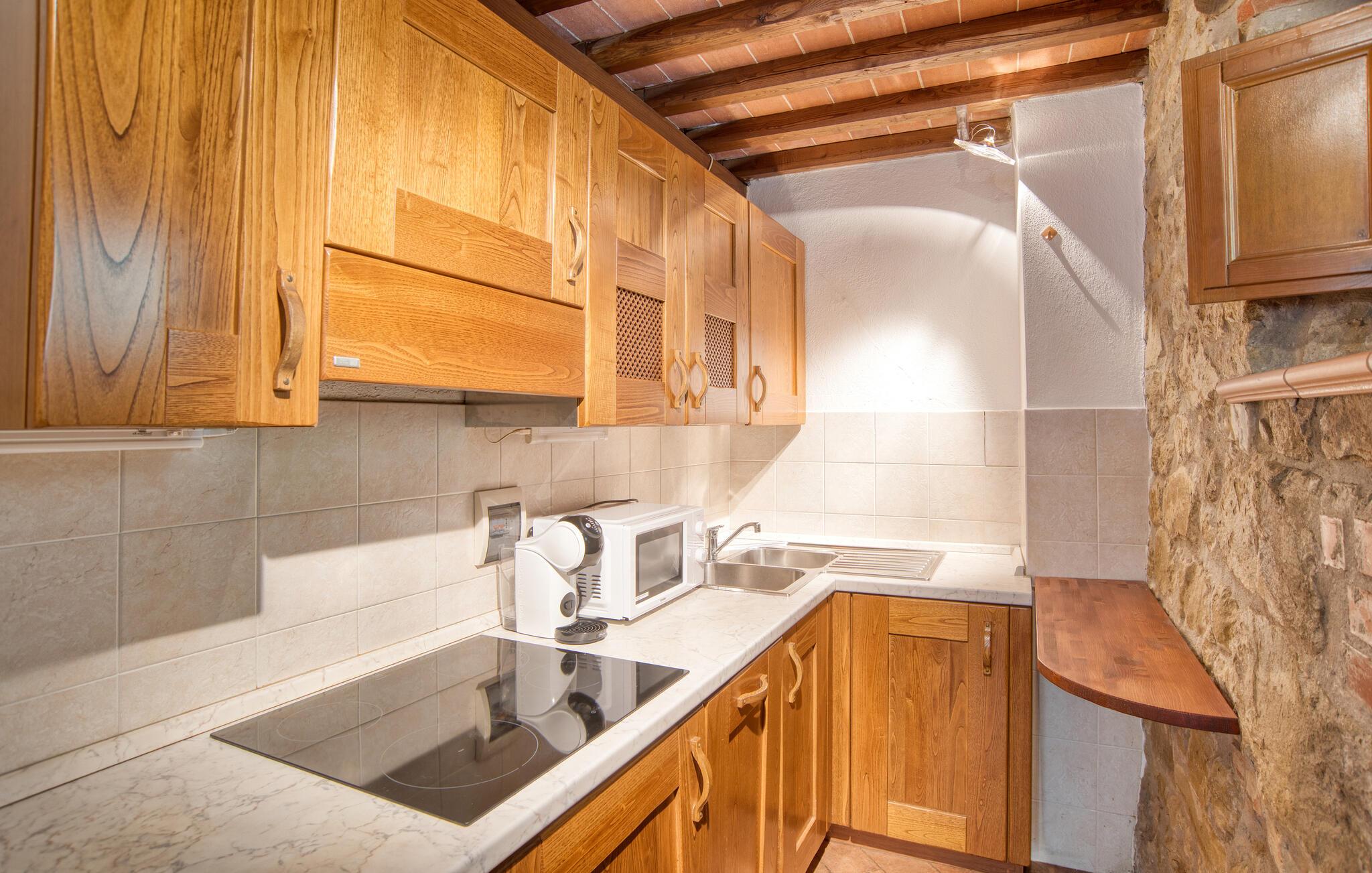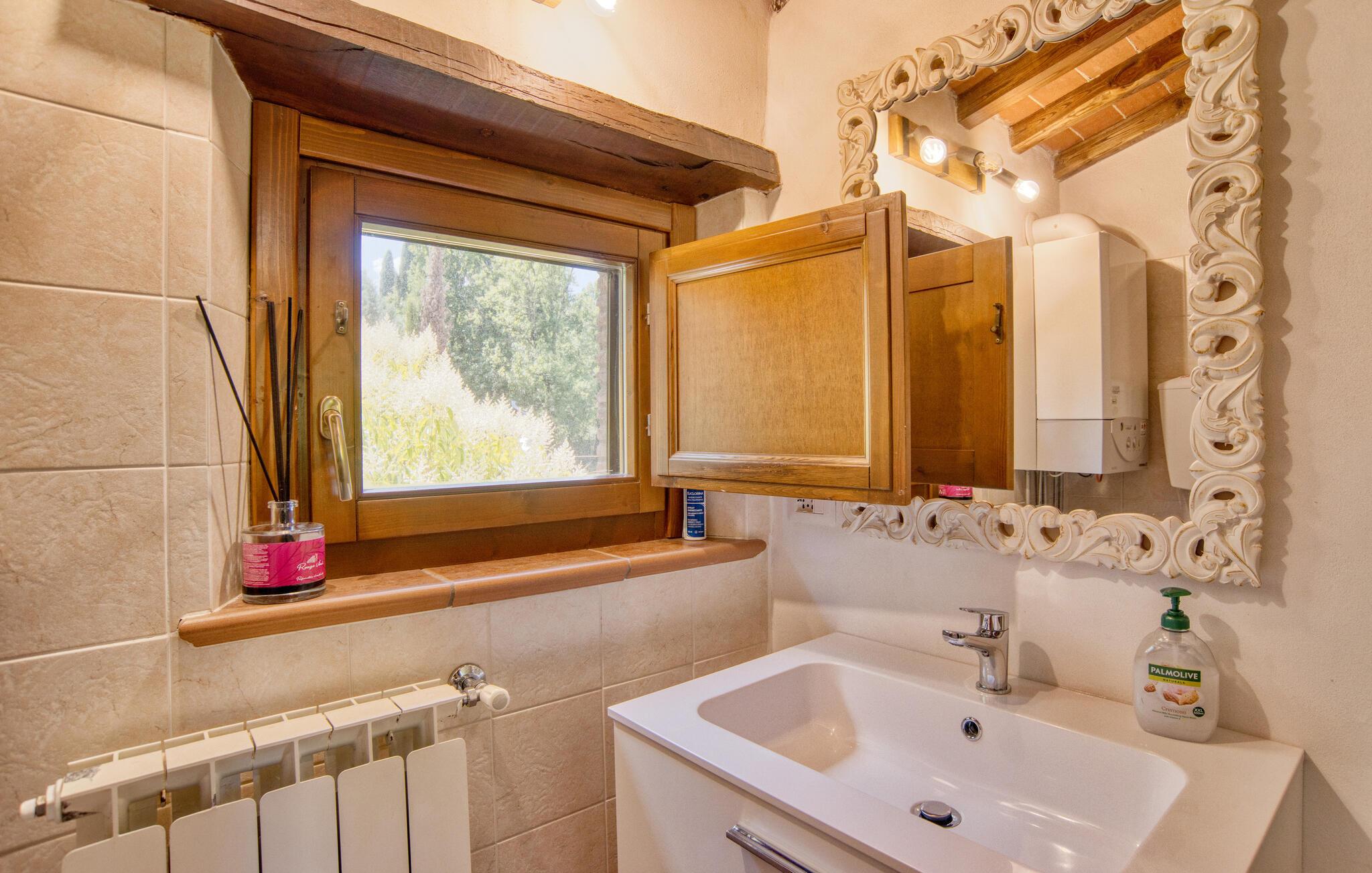 Dette smukke feriehus byder jer velkommen nær Arezzo. Nyd det rummelige stenhus, der har bevaret sin charme med fritlagte stenvægge og hyggelig indretning indenfor. Her kan I have det godt med komfort og enkel udsmykning og samle kræfter og energi i jeres private kapel. I kan også udforske haven og indsnuse de smukke blomster og blomster og slappe af på liggestolene ved den store pool. I kan tilbringe aftenen i underholdende selskab ved grillen og lægge planer for jeres næste feriedage.