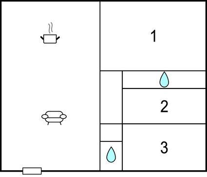 Badeværelse (nr. 1) - WC. Varmt og koldt vand. Bruser