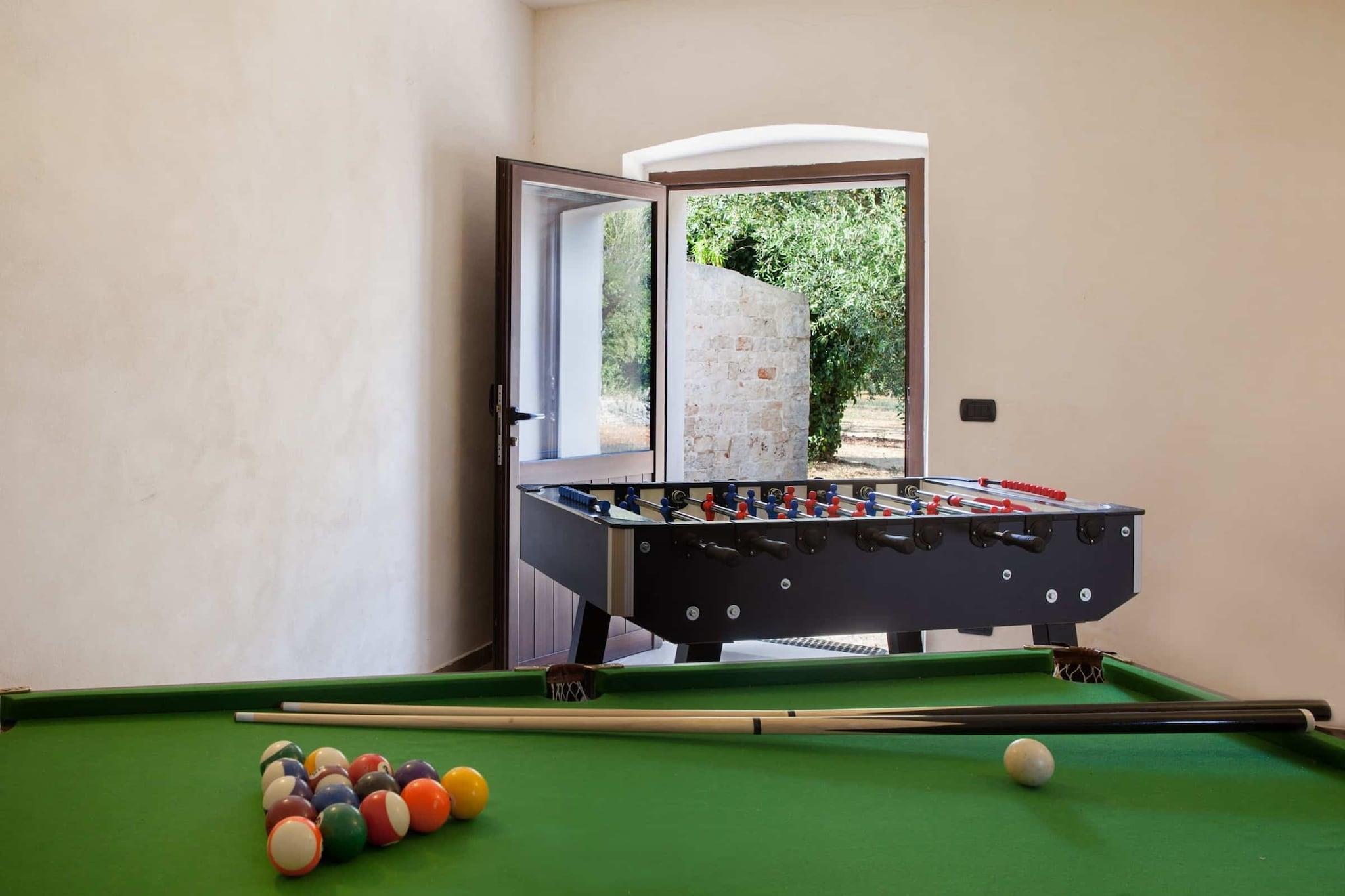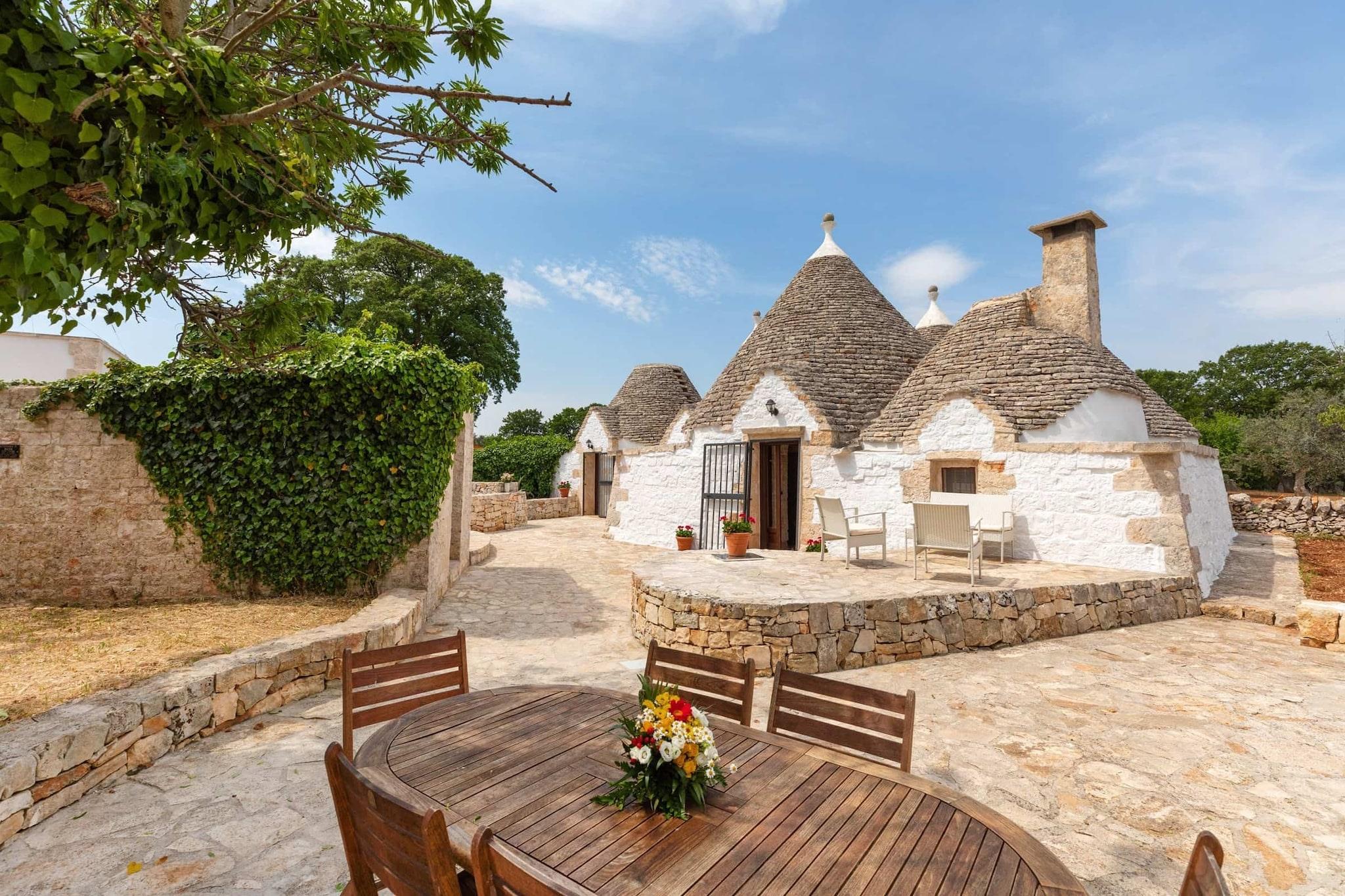 Navnet siger det hele: storslået trullo-feriehus nær Locorotondo. Nedsænket i det smukke landskab er komplekset blevet omhyggeligt renoveret ved hjælp af gamle materialer og med bevarelse af de seks kegler. En pool fuldender ejendommens exceptionelle karakter. Feriehuset kan rumme seks personer fordelt på tre soveværelser med to badeværelser, hvoraf det ene er ensuite. Stor stue med åbent køkken og karakteristisk trullo med original gammel pejs. Den underjordiske pool på 5 x 10 m med romerske trin er beliggende nær den gamle gård i skyggen af mandel- og oliventræer. Trulloen er i en strategisk position ikke langt fra Alberobello og Locorotondo og de vigtigste turistcentre i Itria-dalen Adriaterhavskysten mellem Polignano og lystbådehavnen i Ostuni er let at nå.