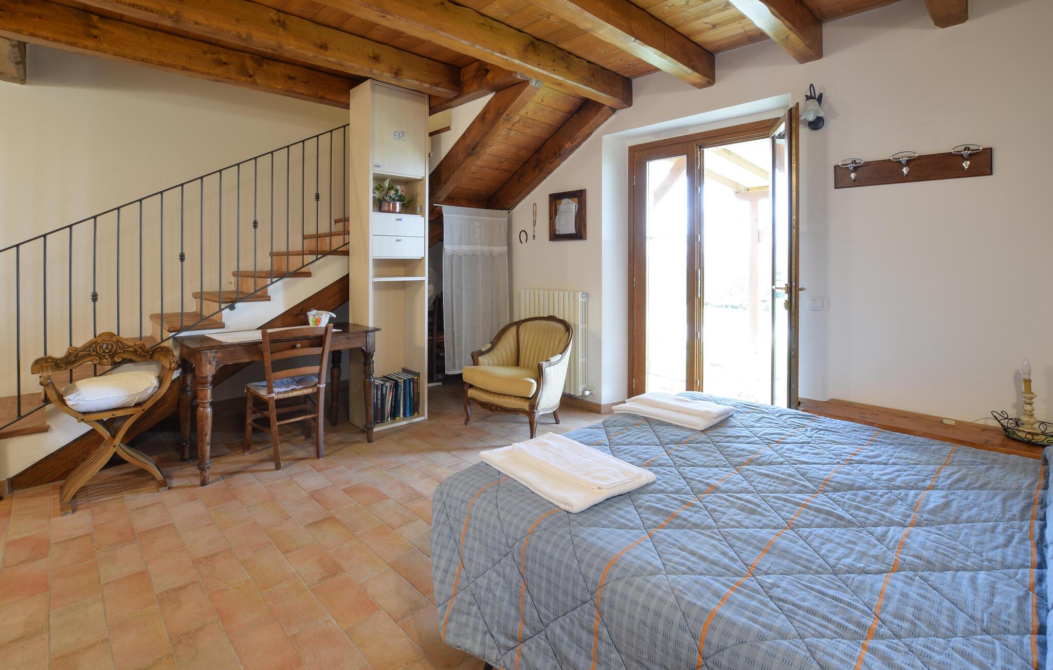 Nyd en afslappende, men aktiv familieferie i denne charmerende ferielejlighed i landlige omgivelser.