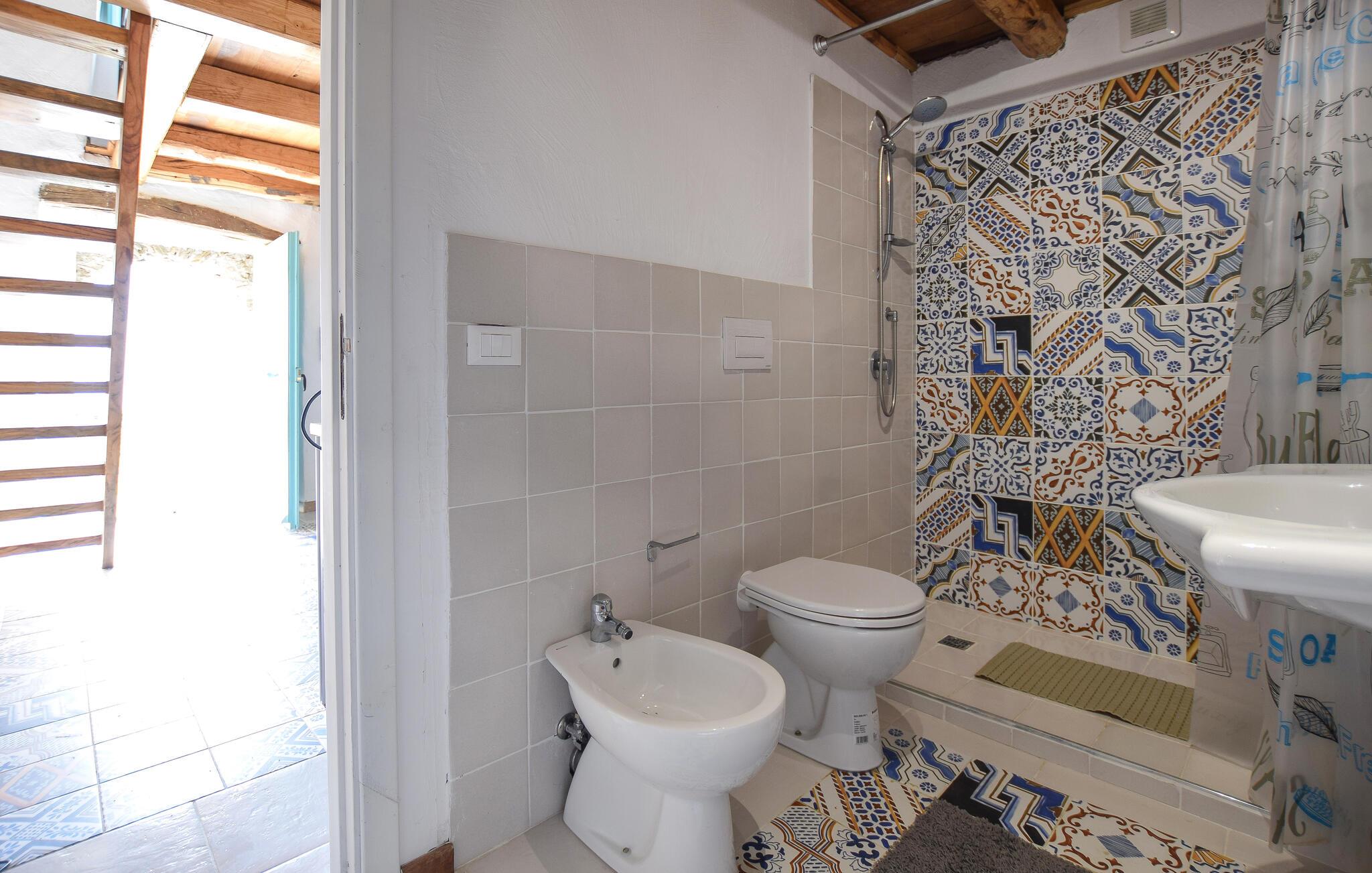 Velkommen til denne hyggelige lejlighed, der ligger i naturskønne omgivelser, og hvor der venter jer en vidunderlig base for to tæt på den calabriske kyst. Indvendigt fremtræder boligen pænt og indbydende med kærlige udsmykningsdetaljer og farverige fliser, der gør det nemt at slappe af og ekstra hyggeligt at lave mad efter en skøn dag på farten. Lad aftenen gå på hæld med lækker mad, et godt glas vin og hvil benene, mens I lægger planer for de kommende dage.