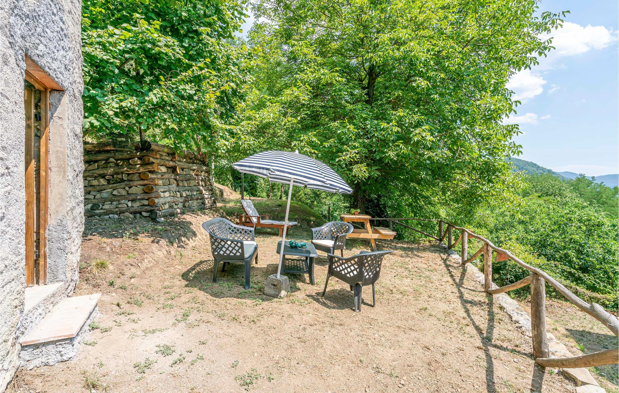 Velkommen til Italien! Det gamle stenhus, store træer, der giver skygge til de rustikke borde og bænke nedenfor, en naturlig terrasse med den fineste udsigt og det typiske italienske interiør med gamle træmøbler og masser af pynt.