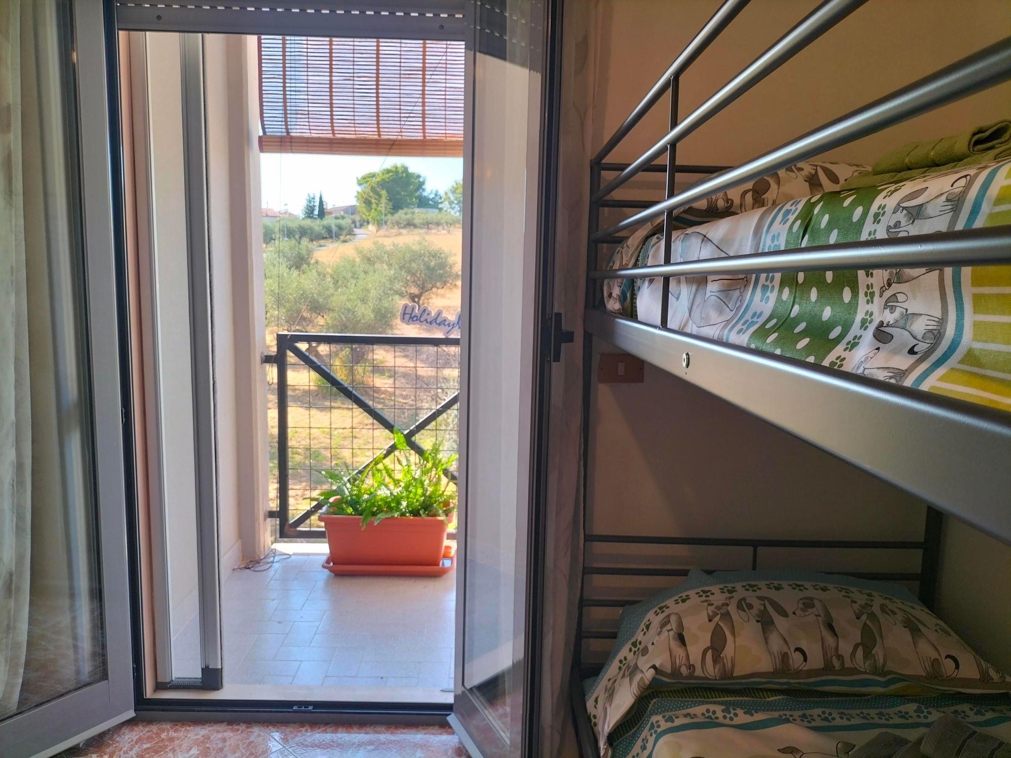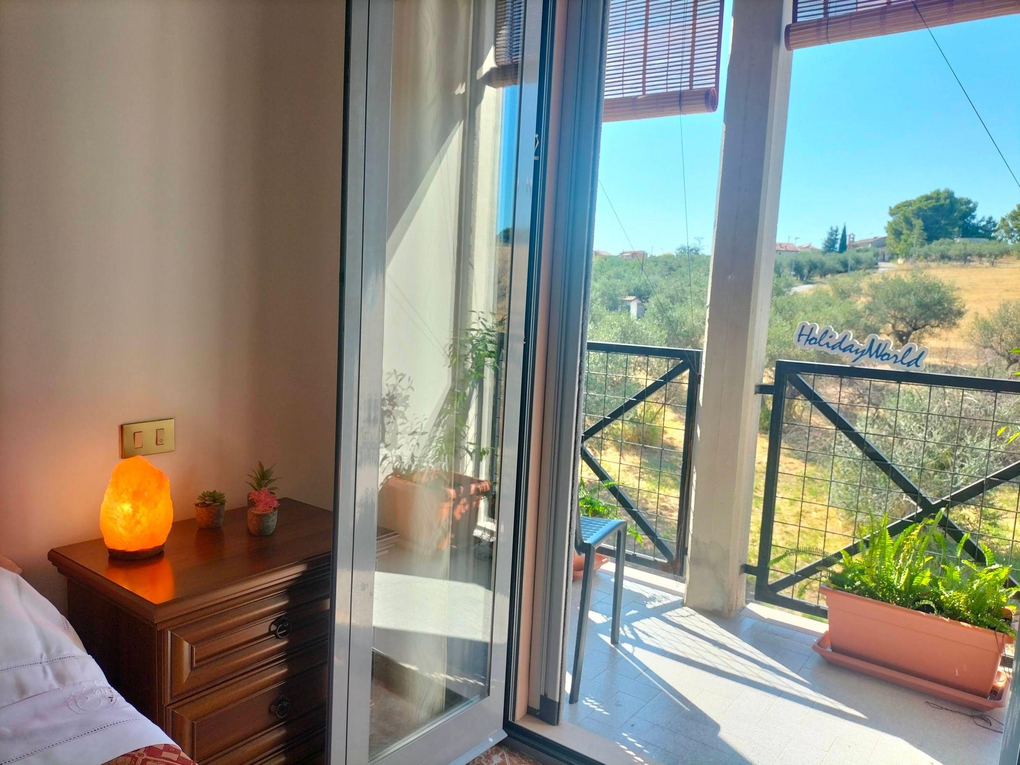 The spacious double bedroom and the comfortable small bedroom with bunk beds both have a communicating balcony that offers a splendid view of the Gran Sasso and the surrounding countryside and glimpses the small Sanctuary of the Madonna delle Grazie, a charming little church dating back to the 1400s that adds a further touch of history and beauty to the panorama.