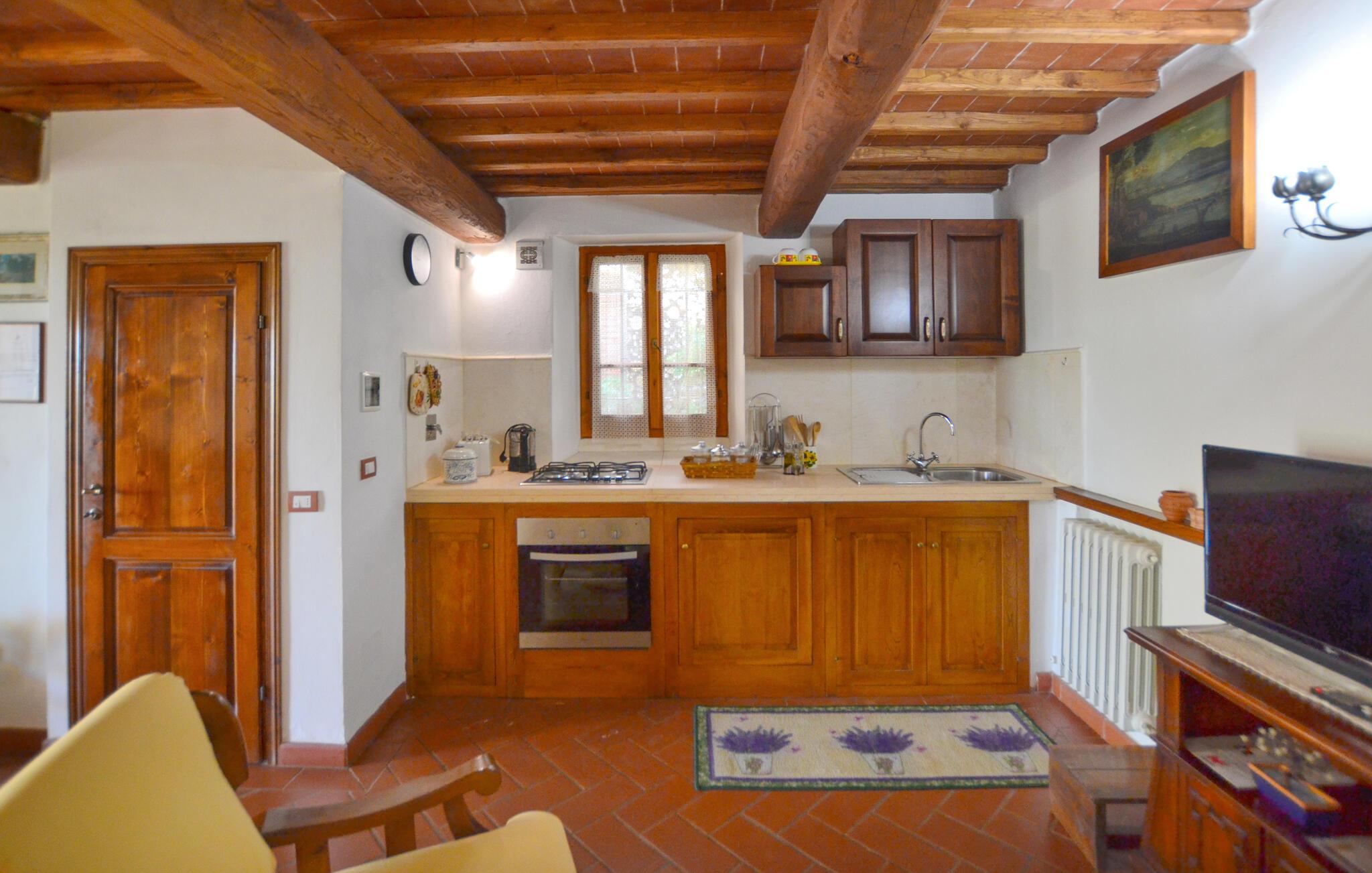 Ca. 2 km over Loro Ciuffenna ligger dette feriehus (halvdel af et dobbelthus) i den rolige bykant af en lille bebyggelse. I stueetagen er der åben pejs, soveværelser med badeværelse på første sal. Lille overdækket siddeplads foran huset, og lidt oppe ligger den private pool med terrasse til solbad, eksklusivt til gæsterne. Bebyggelsen er omgivet af olivenskov, og over det hele kan I nyde den vidunderlige panoramaudsigt over Arno-dalen. Det er oplagt at tage på vandringer i Pratomagnos bjerge og at tage på udflugt til det nære Chianti. I kan nemt komme til Arezzo (30 km), Firenze (50 km) og Siena (60 km). Den lille by Loro Ciuffenna byder på restauranter, barer, pizzariaer og en malerisk bjergbæk med badesteder (3 km).