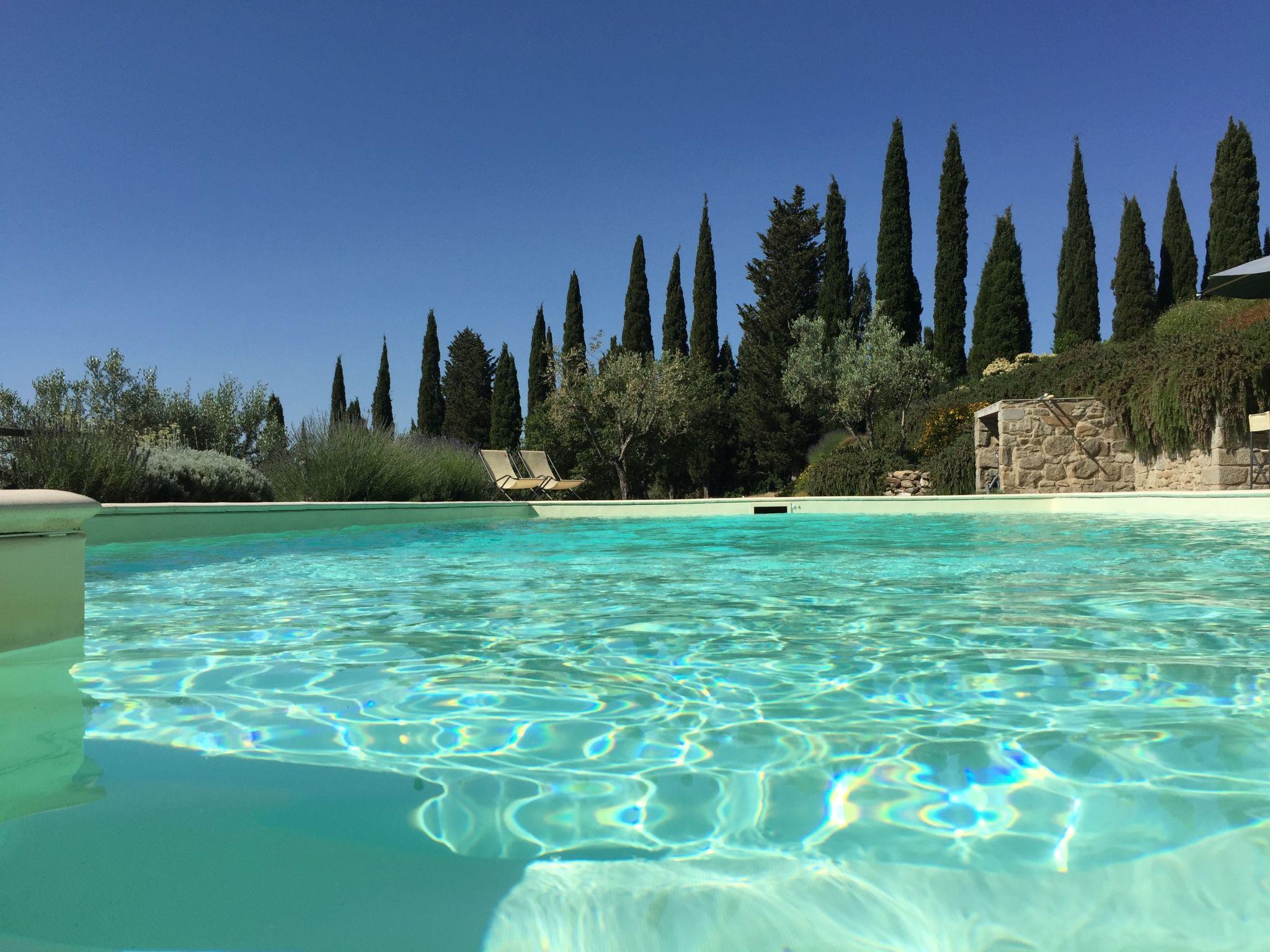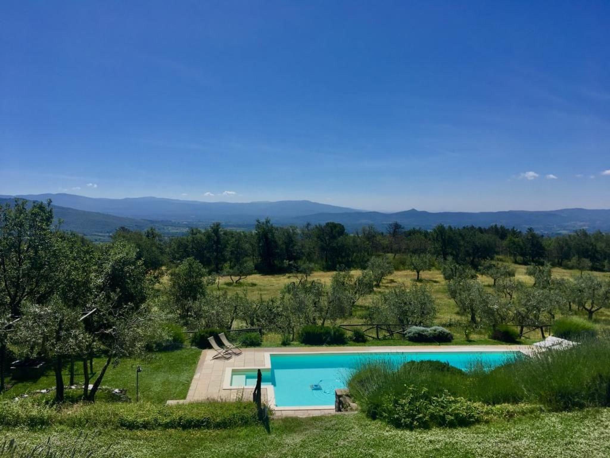 The house, on the Poggio Corsucci estate, belongs to an articulated and renovated farmhouse complex with every comfort in a context of absolute privacy and confidentiality. Set in a large panoramic garden with private swimming pool, it offers a view of the Tuscan countryside of rare beauty. An excellent starting point for the most renowned tourist and eno-gastronomic destinations in the region. Barycentric position between Florence Arezzo and Siena, one and a half hours from the sea, from Pisa Lucca and Livorno only two hours from Rome.