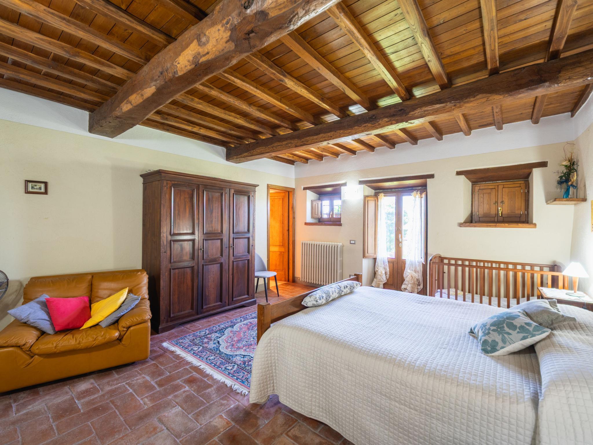 "Podere Le Coste", 9-room house 300 m2 on 2 levels, on the ground floor. Beautiful and tasteful furnishings: living/dining room with 1 double sofabed, open-hearth fireplace and TV. Exit to the garden. 1 double bedroom. Exit to the garden. 1 double bedroom with shower/bidet/WC. Exit to the garden. Open kitchen (5 hot plates, oven, dishwasher, microwave, freezer, electric coffee machine). Shower/bidet/WC. Upper floor: (exterior staircase) living/dining room with open-hearth fireplace and TV. 1 double bedroom. 1 room with 2 beds. 1 double bedroom with shower/bidet/WC. Kitchenette (oven, freezer). Shower, shower/bidet/WC. Large patio 32 m2, roofed, large garden. Terrace furniture, barbecue, deck chairs. Very beautiful panoramic view of the countryside. Facilities: washing machine, mosquito net, baby cot. Parking at the house. Maximum 2 pets/ dogs allowed. Among the 9 room is also the hayloft which is 5 m from the main house and it hason the ground floor: kitchen/dining room with fireplace, double sofa bed, shower/WC. First floor: large double bedroom with an extra single bed. Fans in all rooms. IT051020B54TTIMH5K
