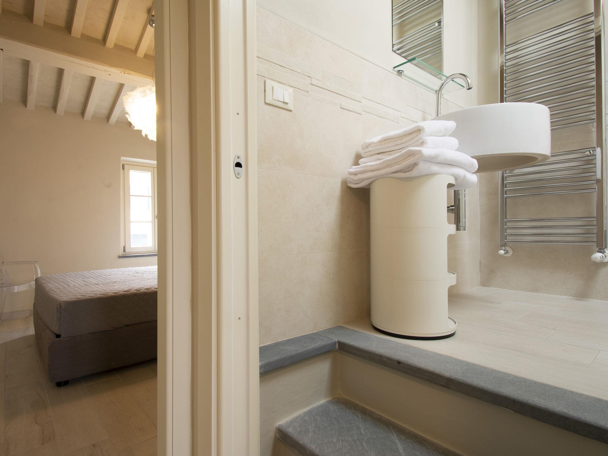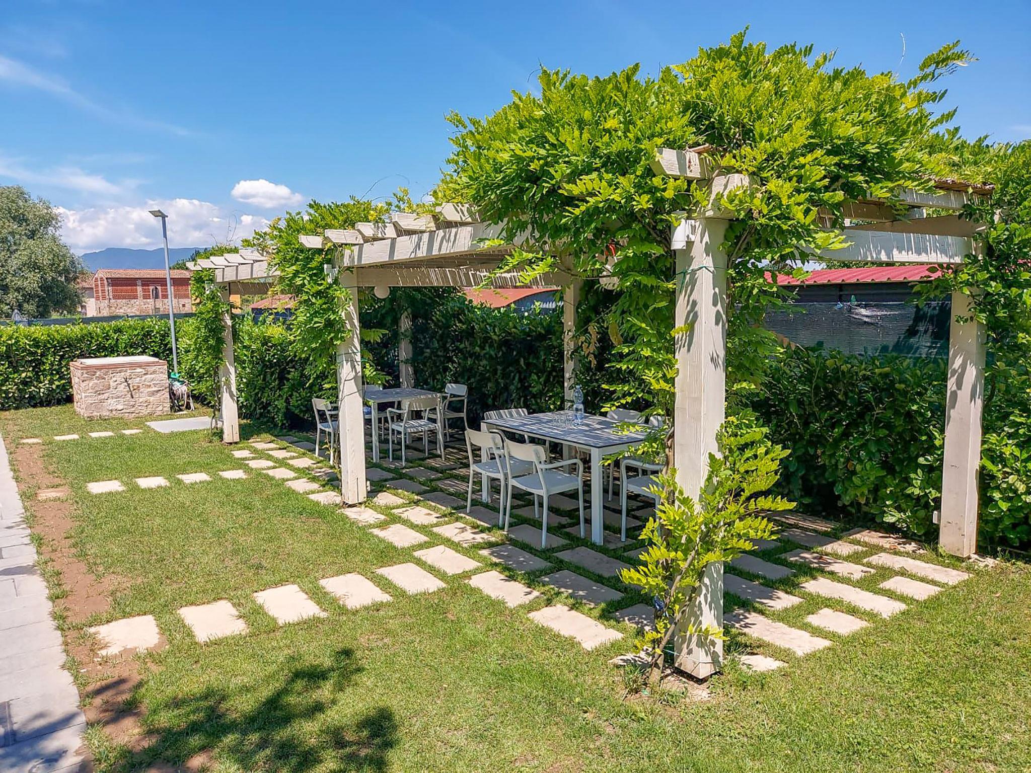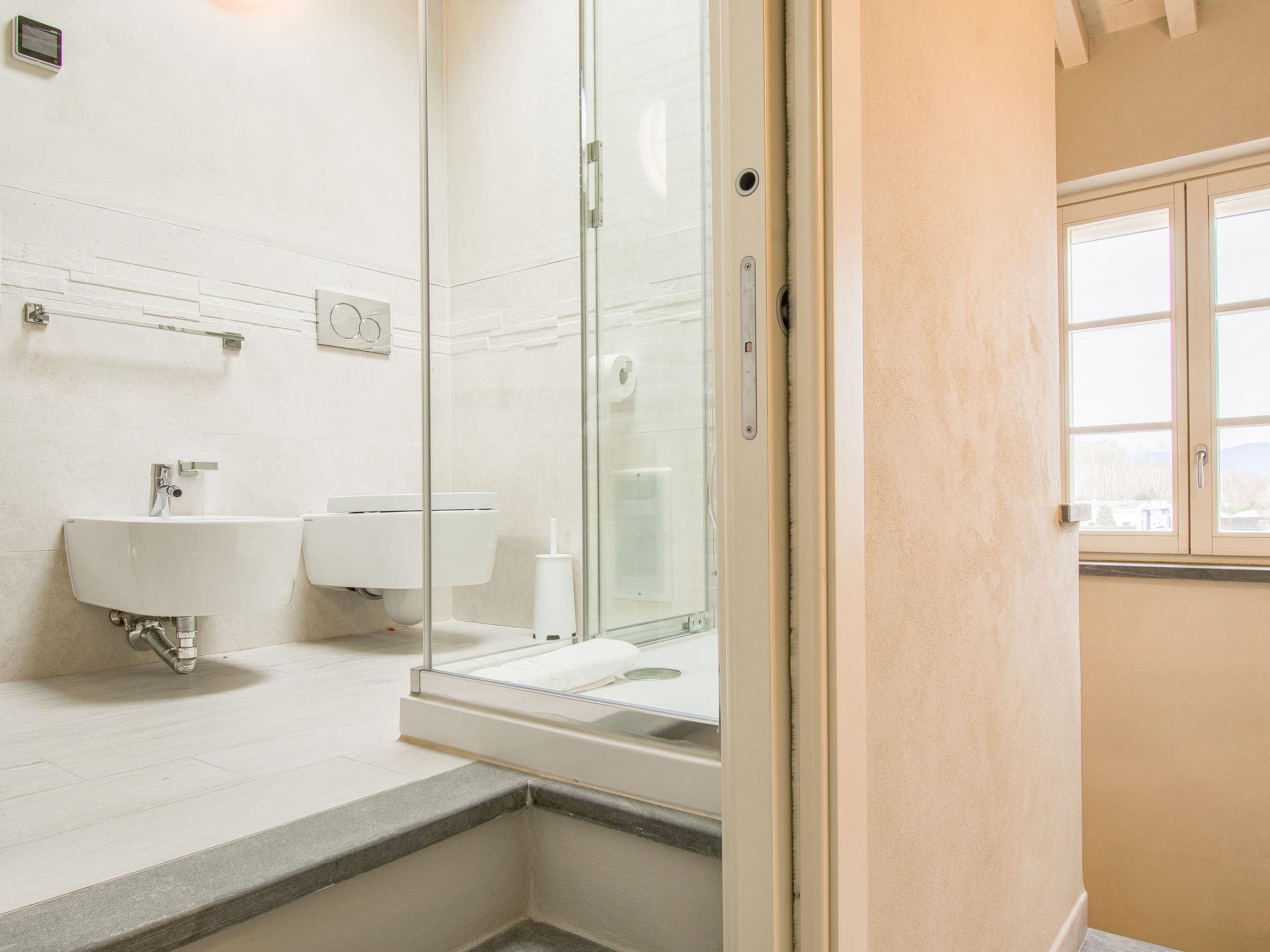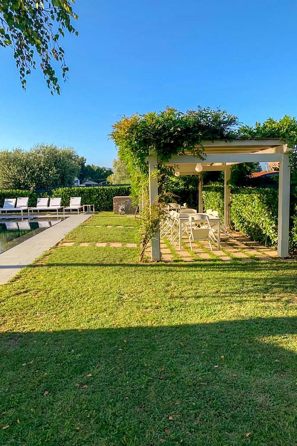 Very modern, beautiful house "Glicine", semi-detached. 3 km from the centre of Lucca, residential area (villas), 25 km from the sea. For shared use: swimming pool (11 x 5 m, depth 140 - 140 cm, seasonal availability: 15.May. - 30.Sep.). Outdoor shower. Private: garden (fenced) with flowers. Garden furniture, barbecue, children's playground, parking (for 2 cars). Supermarket 3 km, restaurant 5 km, bar 2 km, bus stop 100 m.