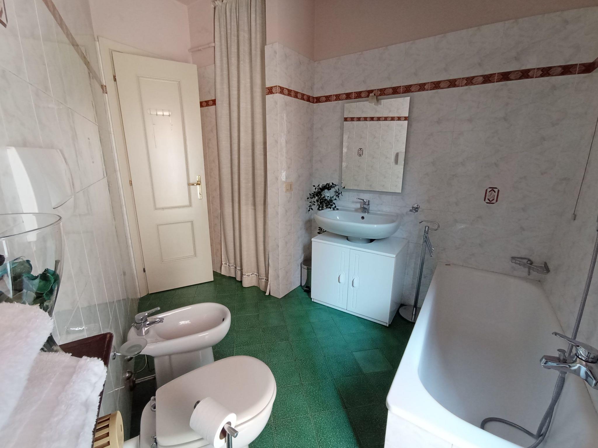 The interior of the flat is equipped with all the necessary amenities to ensure a pleasant and relaxing stay. With two bedrooms and two bathrooms, guests can enjoy privacy and convenience without having to do without everyday comfort. The presence of a shower and bathtub offers various options for a relaxing moment after a day spent exploring the surroundings. Furthermore, with air conditioning available throughout the flat, the ideal climate is ensured in every season. The well-equipped kitchen, complete with dishwasher and electric kettle, makes preparing meals a real pleasure, while the washing machine for exclusive use ensures convenience for longer stays.
