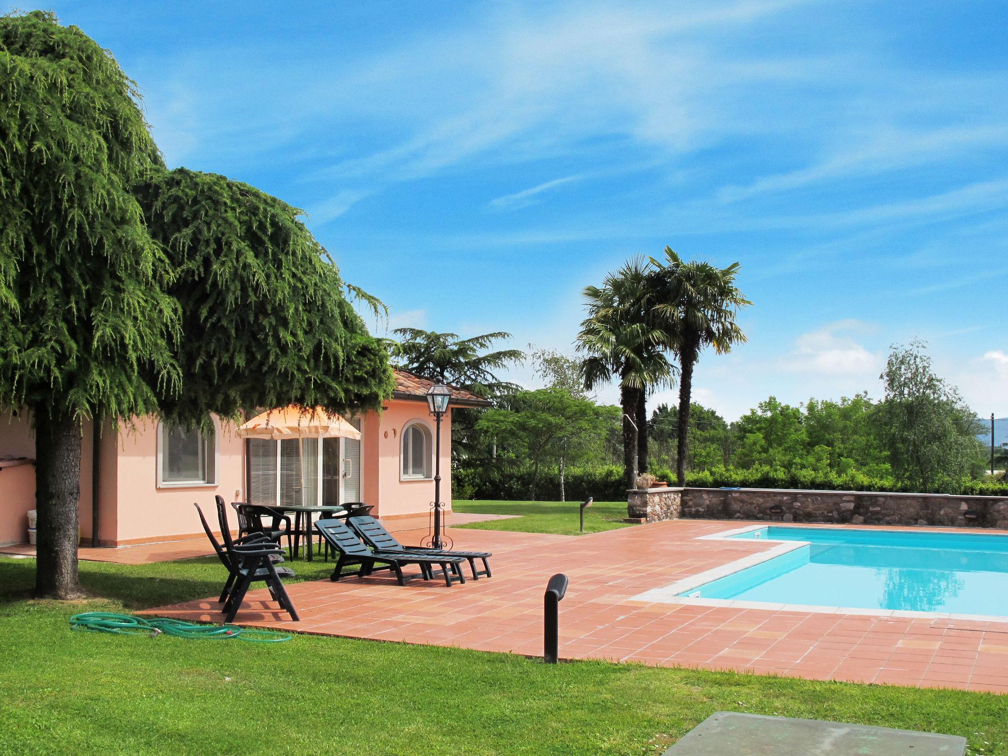 House "Teresa". In the hamlet Segromigno Monte 8 km from the centre of Lucca, 35 km from the centre of Pisa, 73 km from the centre of Florenz, 40 km from the sea, 40 km from the beach. For shared use: property 10'000 m2 (fenced), garden with lawn. Private: property 1'000 m2, well-kept garden with lawn, swimming pool (12 x 6 m, depth 130 cm, seasonal availability: 15.May. - 01.Oct.). Outdoor shower. In the house: central heating system, heating to be paid on the spot (28.Mar. - 30.Oct.), heating available only from 01.Nov. - 27.Mar.. Parking (for 2 cars). Shop 900 m, supermarket 6.3 km, bus stop 400 m, railway station "Tassignano" 6.5 km, sandy beach "Viareggio" 40 km. Golf course (18 hole) 35 km. Nearby attractions: Monsummano Terme 33 km, Collodi Pinocchio Park 8 km, Montecatini Terme 27 km, San Giuliano Terme 27 km, Firenze 90 km, Marina di Pisa 52 km. Well-known lakes can easily be reached: Lago di Massaciuccoli 32 km, Torre del Lago 40 km. Please note: car recommended. The owner lives on the same property.