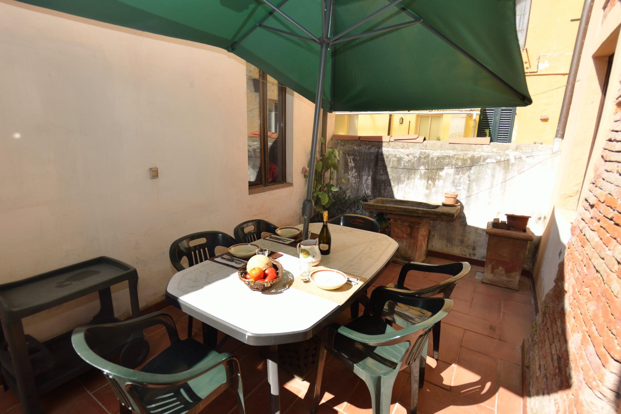 Meget hyggelig lejlighed beliggende i det historiske centrum af Lucca, et stenkast fra de smukke mure, i stueetagen i en gammel bygning med en ekstern veranda udstyret med bord, stole og parasol - det perfekte sted at få en bid udendørs . Det er den ideelle indkvartering til familier med børn. Lejligheden er indrettet med en landlig berøring med træbjælker og terracotta gulvbelægninger. Lucca er en smuk kunstby med sine smukke mure, gammel arkitektur, fine kirker og lyse pladser samt maleriske butikker og lokale restauranter. Byen er rig på kulturelle arrangementer og er et besøg værd hele året rundt.