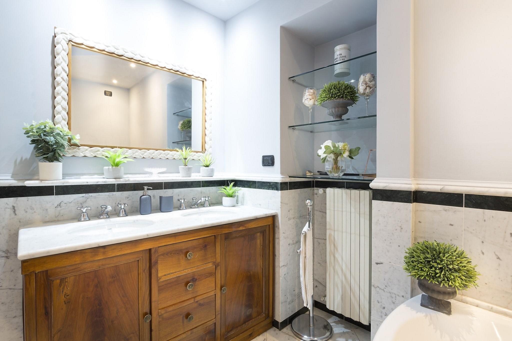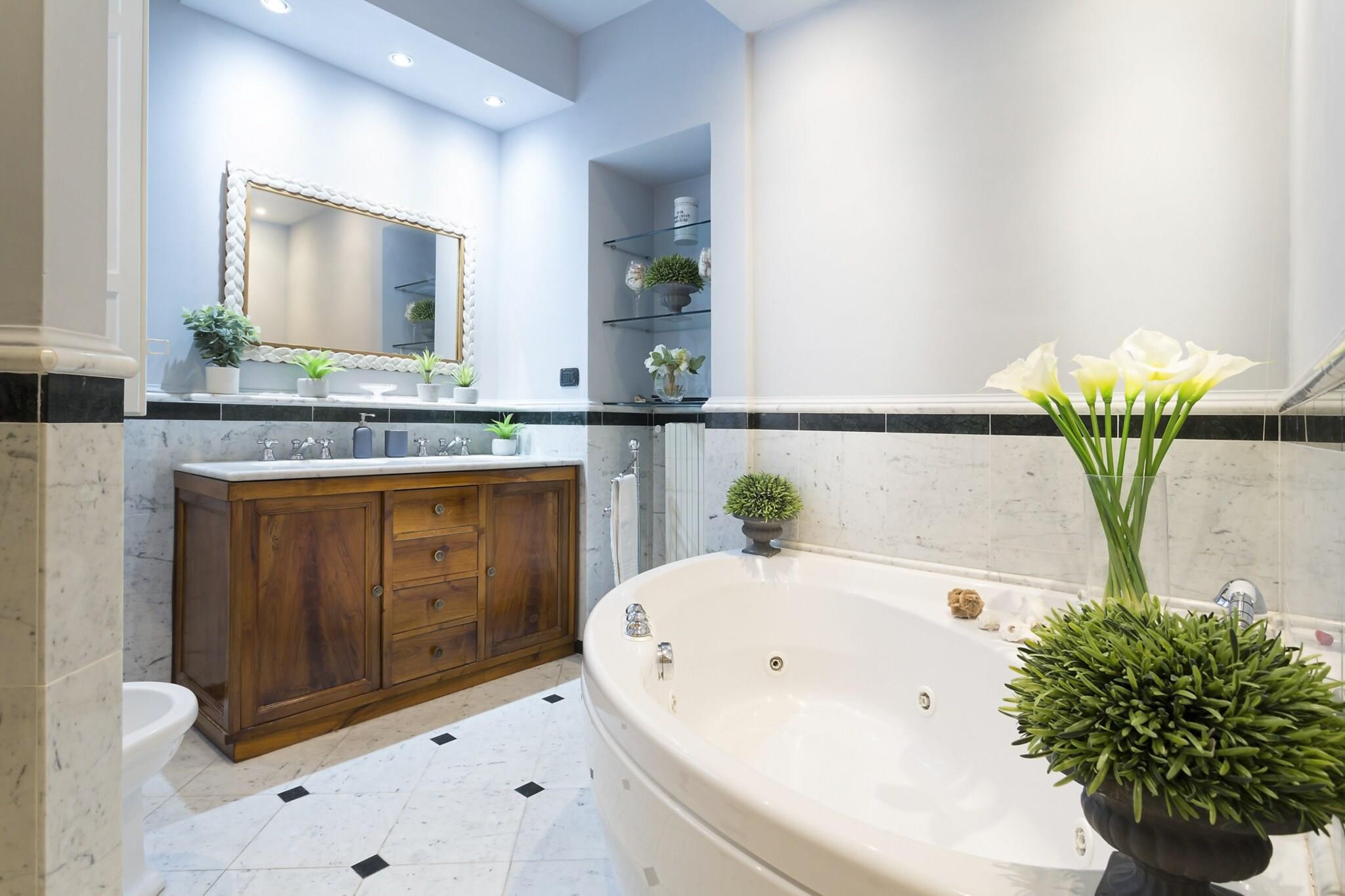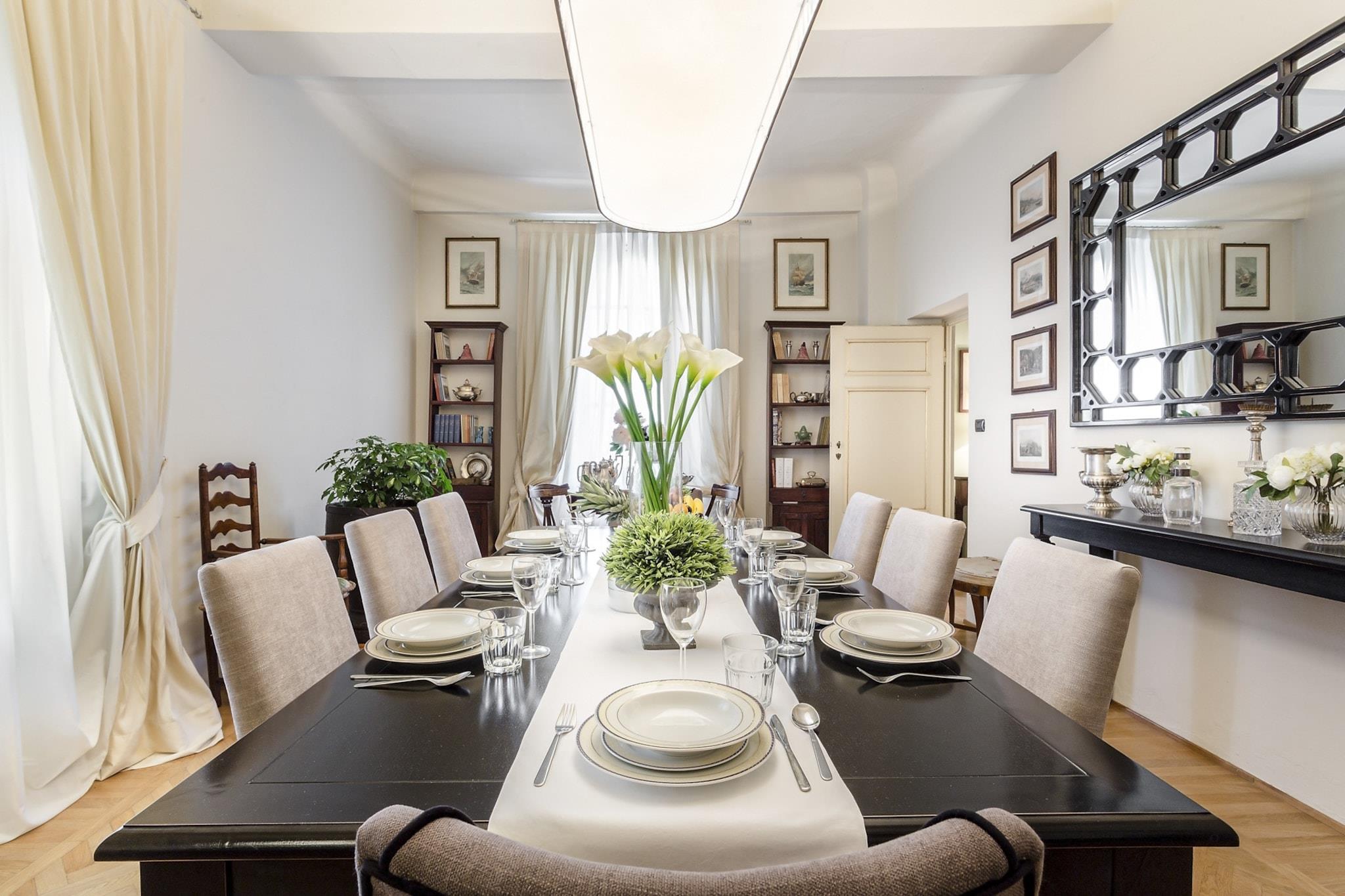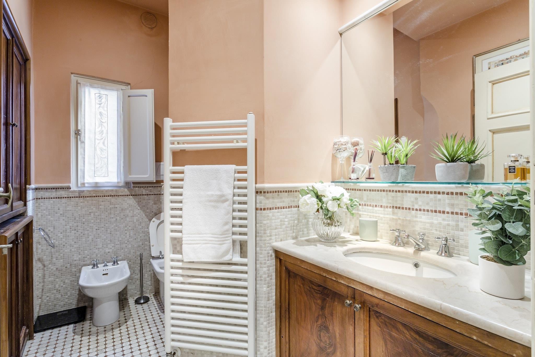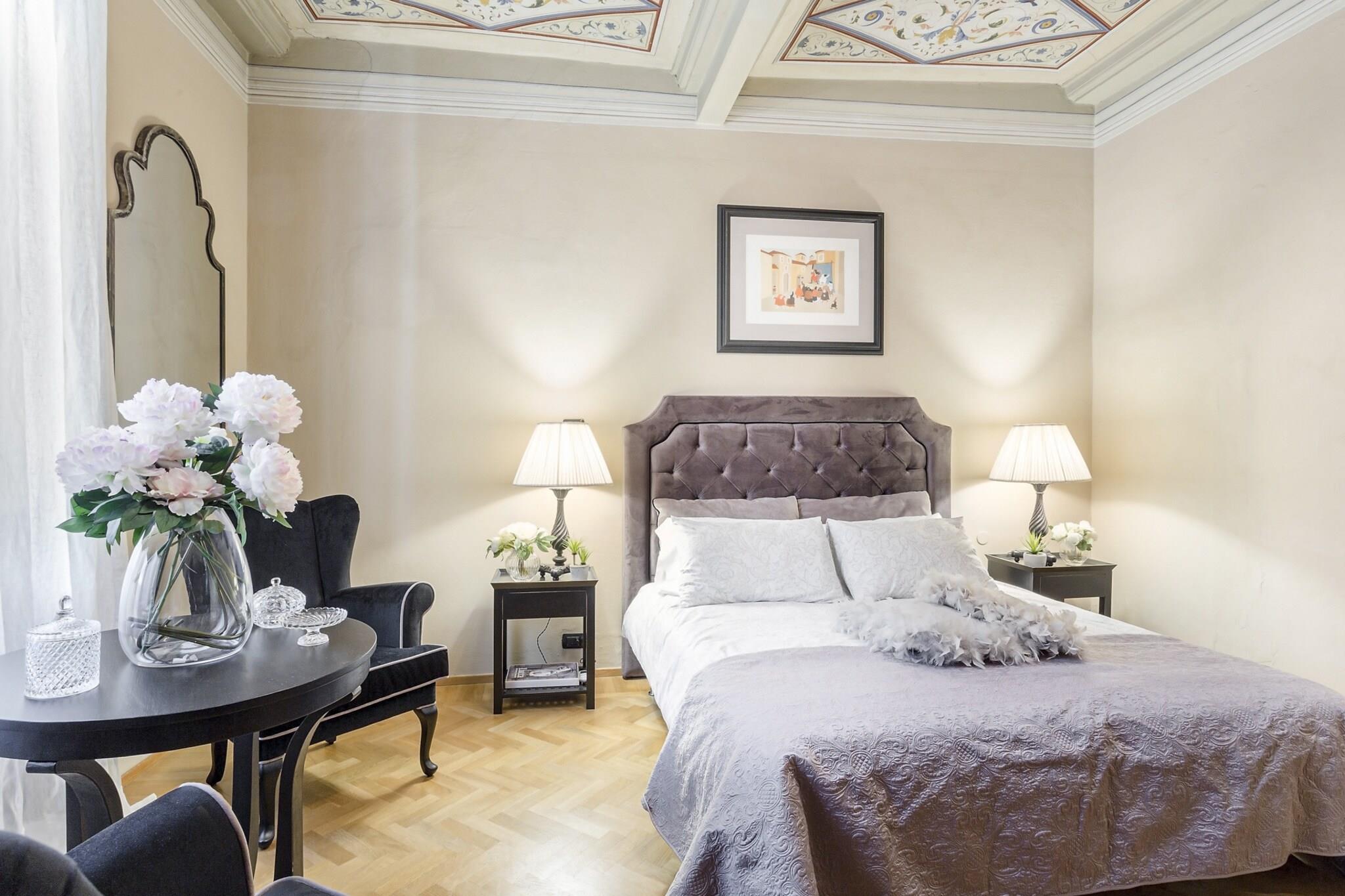 Denne udsøgte lejlighed, badet i Toscanas strålende sollys, er ideelt beliggende nær den travle Via Fillungo, hvilket gør den til en førsteklasses beliggenhed for at udforske Luccas rige historie og kultur. Kun fem minutters gåtur bringer dig til bemærkelsesværdige vartegn som Piazza San Michele, Anfiteatro og Guinigi-tårnet, samt antikvitetsmarkedet og offentlig parkering. Blandingen af historisk charme og moderne tilgængelighed skaber en unik atmosfære i denne pulserende by. Lejligheden kombinerer harmonisk elegansen af sin arkitektoniske arv med moderne bekvemmeligheder. Funktioner som freskomalerier i loftet og en marmorskorsten minder om byens historiske fortid, mens moderne bekvemmeligheder som kabel-tv, Wi-Fi og aircondition sikrer et behageligt ophold. Studieværelset tilbyder et ideelt sted til fjernarbejde, og det veludstyrede køkken med opvaskemaskine giver mulighed for stressfri madlavning, hvilket gør det nemt at nyde kvalitetstid ved det store spisebord med venner og familie. Gæsterne kan nyde lejlighedens traditionelle pragt, fremhævet af Murano-glaslysekroner og rigt mønstrede tæpper, samtidig med at de værdsætter den sofistikerede stil i moderne møbler. Beliggenheden opfordrer til udforskning af Luccas pulserende scene, lige fra at lytte til aftenlige Puccini-koncerter i den nærliggende Basilica di San Giovanni til at slentre langs de ikoniske renæssancemure. Med forskellige spisemuligheder, herunder restauranter langs kanalen og hyggelige pladser, der tilbyder lokal vin og snacks, lover oplevelsen at være både fornøjelig og mindeværdig. Bemærk venligst, at lejligheden ligger på anden sal og ikke har elevator, hvilket tilføjer et charmerende, omend autentisk, præg til din toscanske ferie. Bemærk: Turistskat skal betales på ejendommen.