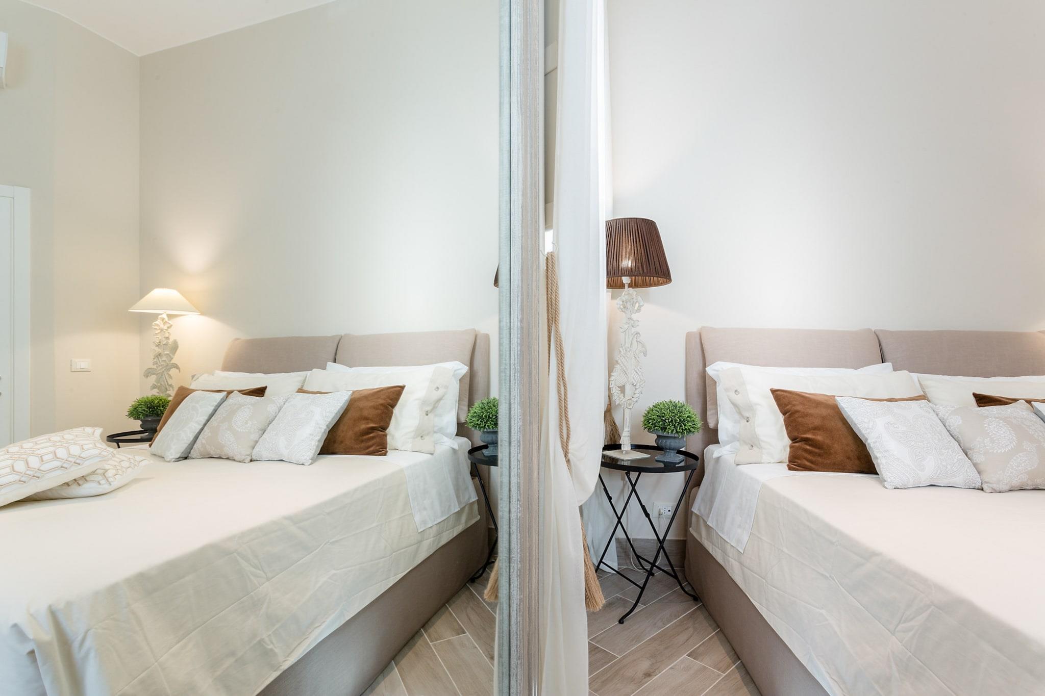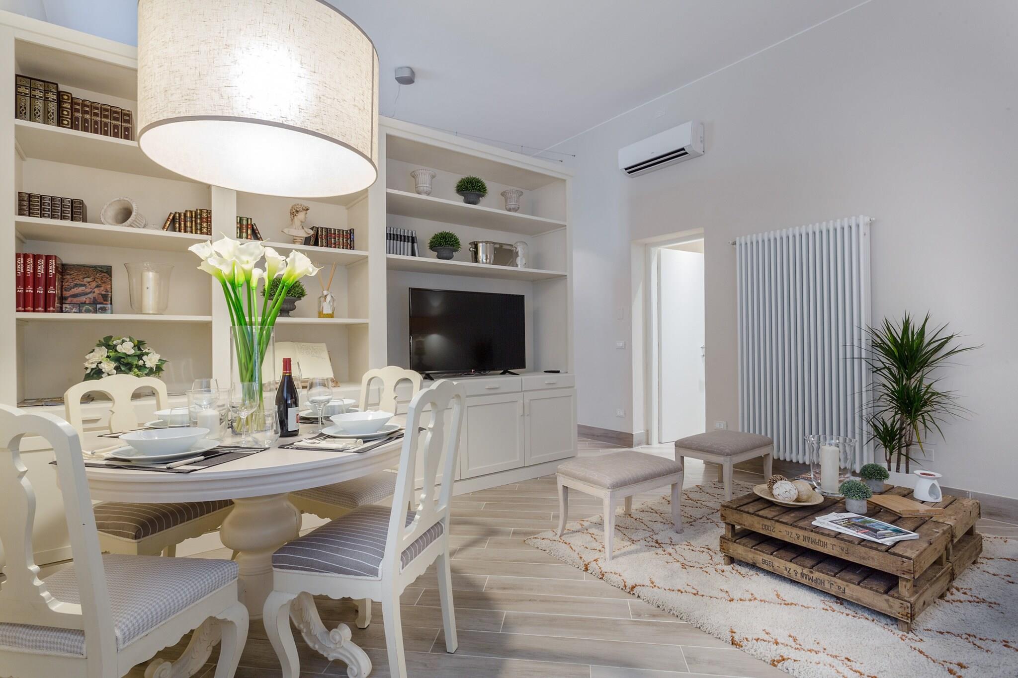 Velkommen til denne moderne lejlighed i stueetagen, der tilbyder en blanding af luksus og afslapning i hjertet af Lucca. Lejligheden er tilgængelig via en privat indgang fra Via Vittorio Emanuele og ligger i et gammelt palads, kun få skridt fra Luccas hovedtorv, Piazza Napoleone. Den kombinerer problemfrit historisk charme med moderne komfort og giver en enestående base for at udforske byen. Indvendigt udstråler lejligheden varme og elegance med en rummelig stue med en ny komfortabel sovesofa med plads til op til fire gæster samt et 49" 4K smart-tv med internationale satellitkanaler. Det fuldt udstyrede køkken er perfekt til kulinariske entusiaster, inklusive opvaskemaskine, køleskab, brødrister og diverse køkkenredskaber. Det indbydende soveværelse tilbyder en kingsize-seng og rigelig garderobeplads, mens det moderne badeværelse har et behageligt brusebad, vaskemaskine og tørretumbler. Fordyb dig i den pulserende atmosfære og rige kulturarv i Lucca fra komforten i denne enestående bolig, hvor historie møder moderne luksus. Med aircondition og ubegrænset Wi-Fi er alle bekvemmeligheder lige ved hånden, hvilket sikrer et behageligt og forbundet ophold. Nyd essensen af Lucca i dette ekstraordinære fristed, hvor du kan slappe af, udforske og skabe varige minder. Bemærk: Turistskat skal betales på ejendommen.