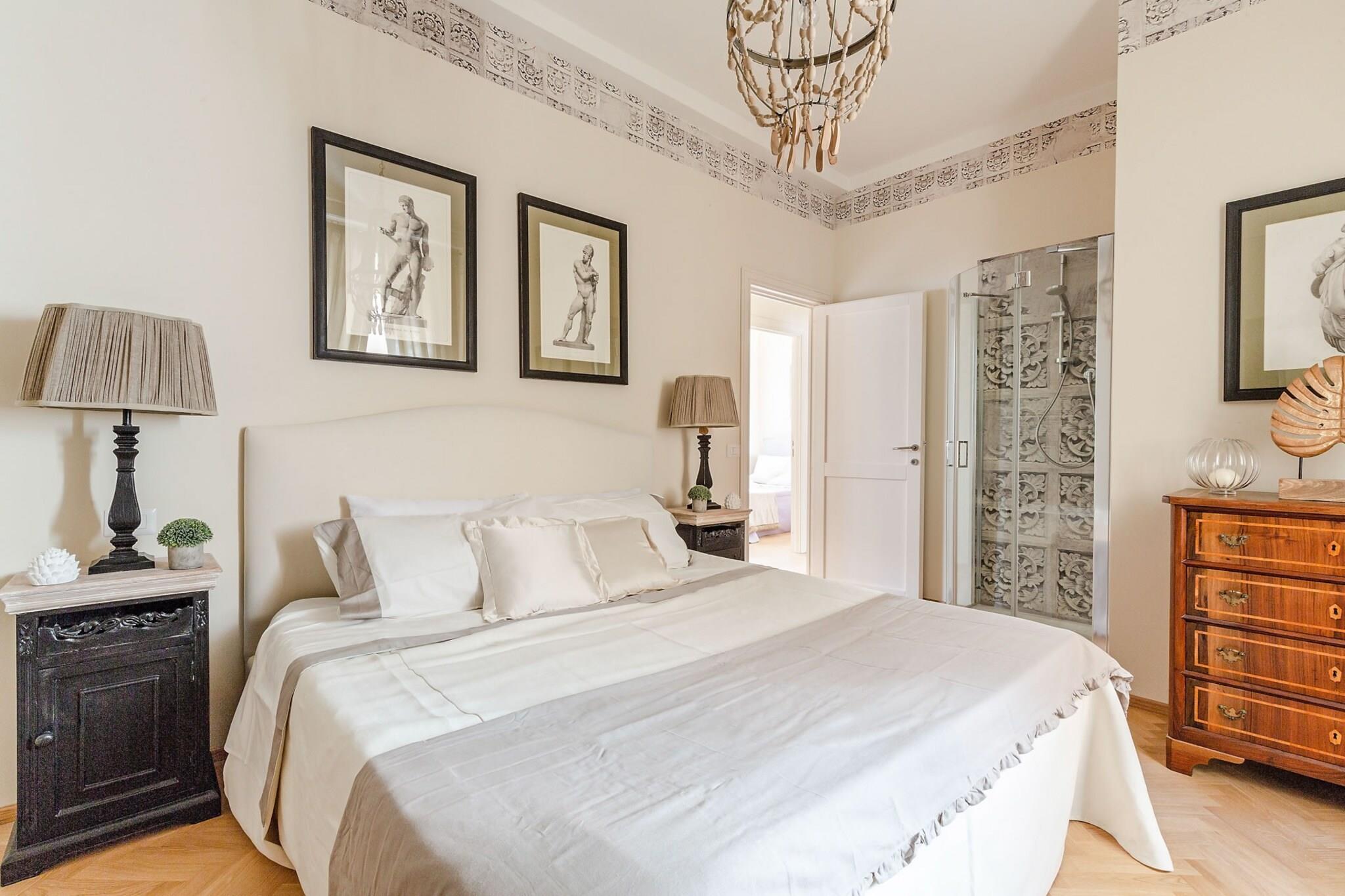 Træd ud af hoveddøren på Casa San Frediano, og du vil befinder dig i hjertet af Luccas rige historie. Denne udsøgte lejlighed, der ligger på den berømte Piazza San Frediano, tilbyder en plads på første række til et af byens mest ikoniske vartegn: San Frediano-mosaikken fra den byzantinske æra, et fantastisk mesterværk, der har prydet byen siden før år 1000. Fra dine vinduer kan du sole dig i de varme nuancer af den gamle mosaik, hvor fortid og nutid smelter sammen og giver en daglig påmindelse om Luccas historiske arv. Beliggende inden for Luccas historiske mure fordyber Casa San Frediano dig i den autentiske charme af et traditionelt italiensk kvarter. Den pulserende plads summer af liv, og den storslåede romanske kirke, kronet af sin betagende mosaik, ligger kun få skridt væk. Hvert hjørne af Luccas fortryllende gader inviterer til udforskning, med lokale markeder, kunsthåndværksbutikker og dejlige caféer, der venter på din opdagelse. Derudover, med nem adgang til togstationen, er dagsture til Firenze, Pisa og den fantastiske Cinque Terre inden for rækkevidde. Indenfor er Casa San Frediano et fristed af komfort og elegance, der harmonisk blander historisk charme med moderne bekvemmeligheder. Denne smukt indrettede lejlighed med tre soveværelser har luksuriøse soveværelser, smukt designede badeværelser og et fuldt udstyret køkken, der er klar til kulinariske eventyr. Rummelige opholdsområder indbyder til sammenkomster, mens gennemtænkte detaljer - som højhastigheds-WiFi og aircondition - sikrer et problemfrit ophold. Med smagfulde møbler og en indbydende atmosfære er denne lejlighed ideel for familier og venner, der er ivrige efter at opleve Toscanas traditionelle elegance, mens de nyder moderne komfort. Lad Casa San Frediano være din port til Luccas tidløse skønhed. Bemærk: Turistskat skal betales på ejendommen.