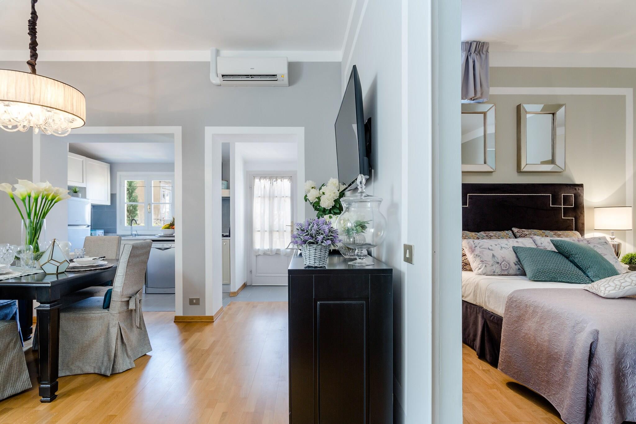 Stig op i den fortryllende penthouselejlighed, der ligger oven på en historisk bygning fra middelalderen og er tilgængelig via en malerisk og charmerende elevator. Denne lejlighed kombinerer mesterligt moderne komfort med historisk charme og tilbyder et unikt tilflugtssted i hjertet af byen. Ottone Penthouses kronjuvel er dens store panoramaterrasse, hvor du kan slappe af med en betagende udsigt over den detaljerede barokkirke fra 1600-tallet. Dette rolige rum tilbyder de perfekte rammer for rolige øjeblikke og fantastiske solnedgange, suppleret af de beroligende toner af opera og klavermusik, der driver fra det nærliggende National Conservatory. Indenfor kan lejligheden prale af et fuldt udstyret køkken, der er skræddersyet til kulinariske entusiaster, samt en komfortabel stue med et 49" fladskærms Smart-tv og internationale kanaler. Det luksuriøse soveværelse lover afslappende nætter med sin 180 cm kingsize-seng og det elegante badeværelse med et rummeligt brusebad. Med aircondition overalt og pålidelig WiFi inviterer Ottone Penthouse dig til at opleve en harmonisk blanding af moderne luksus og historisk charme i et virkelig betagende miljø. Bemærk: Turistskat skal betales på ejendommen.