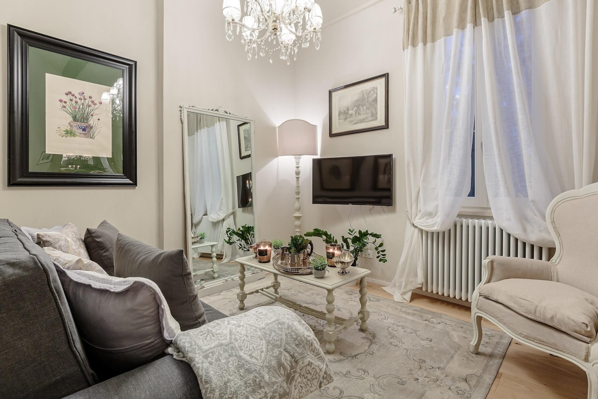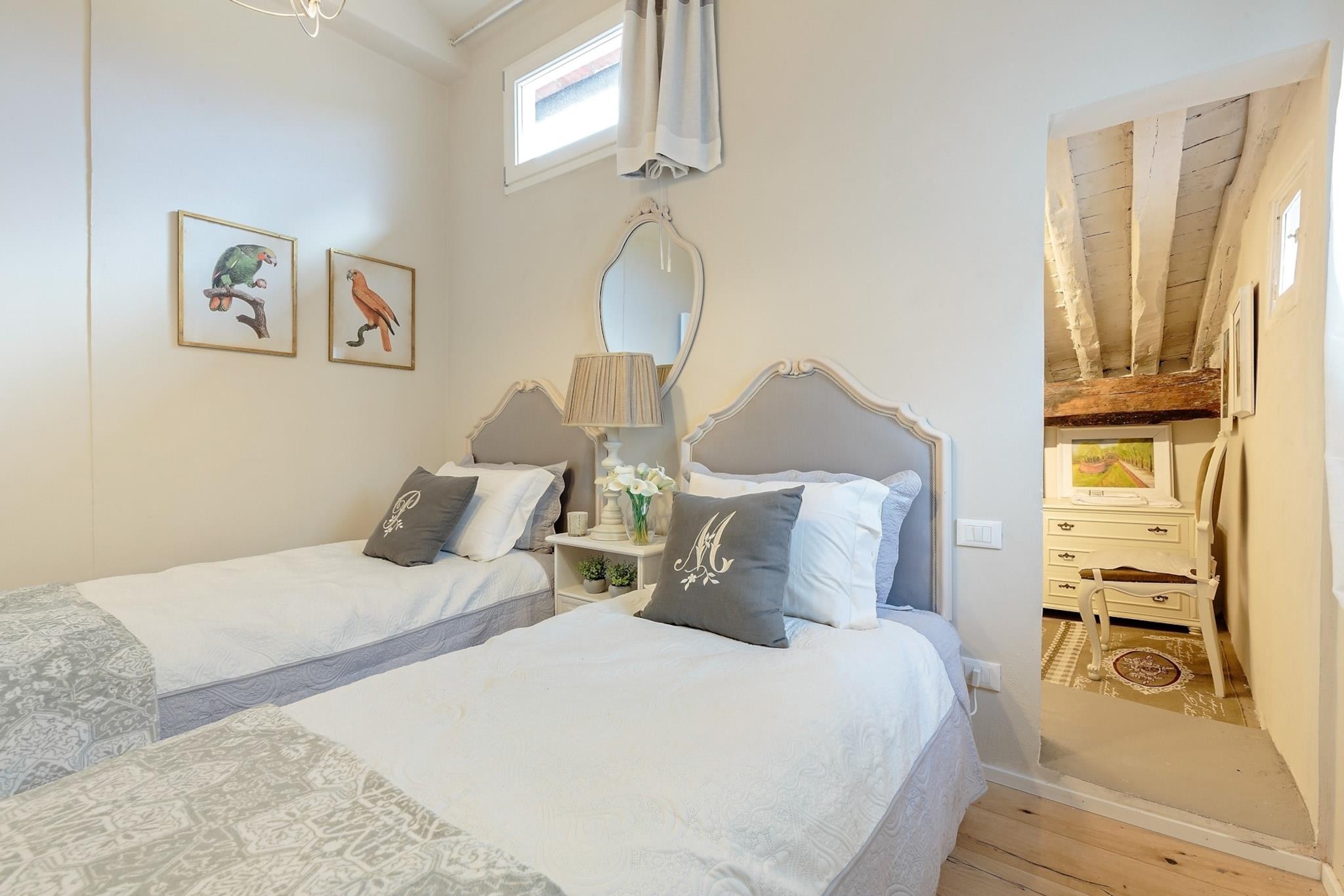 Oplev indbegrebet af romantik og afslapning i denne fortryllende lejlighed på øverste etage, beliggende inden for Luccas historiske bymure. Dette charmerende feriested med to soveværelser har en rummelig terrasse, der tilbyder betagende udsigt over hemmelige indre haver og århundrede gamle cedertræer. Denne perle er bekvemt placeret nær det travle vejkryds med Via Fillungo og placerer dig lige i hjertet af byen, samtidig med at den sikrer en rolig og rolig atmosfære væk fra trafik- og shoppingstøj. Træd udenfor og find dig selv fordybet i et pulserende kvarter fyldt med dejlige oste-, pasta- og delikatesseforretninger samt fremragende restauranter. En gratis parkeringsplads er bekvemt placeret kun fem minutters gang væk, mens lejligheden ligger kun få skridt fra en busterminal og en kort gåtur fra Lucca Station. Mange af byens hovedattraktioner ligger inden for en nem 2 til 5 minutters gang, hvilket gør den til en perfekt base for at udforske alt, hvad Lucca har at byde på. Indenfor er lejligheden et paradis af komfort og stil med møbler af høj kvalitet, der er designet til at forbedre dit ophold. Den solbeskinnede terrasse, der er tilgængelig fra køkkenet, tilbyder en fantastisk udsigt over Luccas hustage og antikke haver og er møbleret med siddepladser, herunder et spisebord, sofa og lænestole - ideelt til spisning under åben himmel eller blot til afslapning med et glas vin. En række moderne faciliteter sikrer en behagelig oplevelse, herunder pålidelig Wi-Fi, et tv og et fuldt udstyret køkken med alt, hvad der er nødvendigt for at tilberede lækre måltider, hvilket gør denne lejlighed til et unikt og uforglemmeligt tilflugtssted i en af Italiens mest maleriske byer. Bemærk: Turistskat skal betales på ejendommen.