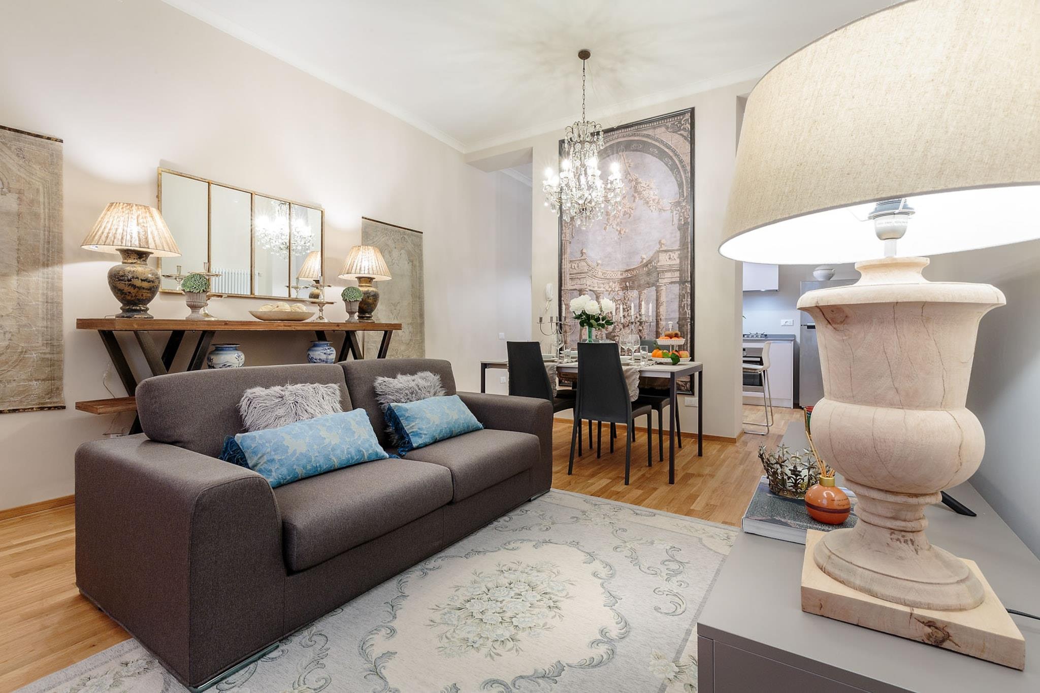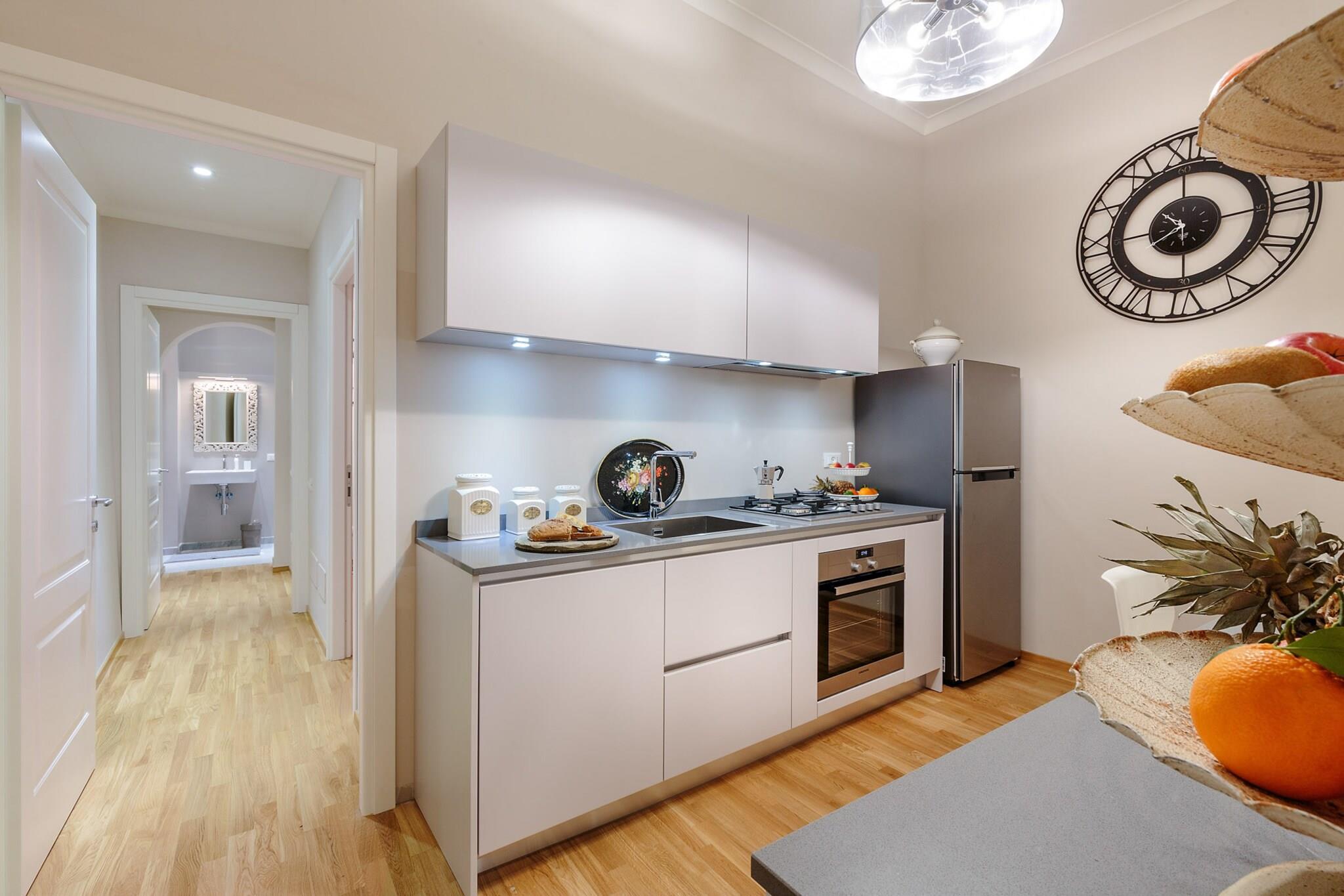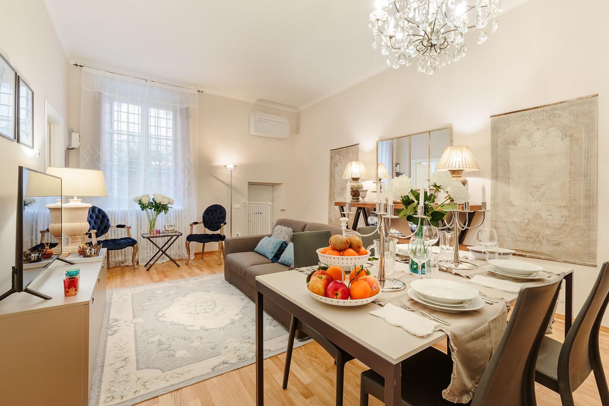 Beliggende inden for de fortryllende renæssancemure i Luccas historiske centrum, tilbyder denne udsøgte lejlighed i stueetagen en harmonisk blanding af moderne komfort og historisk charme. Med betagende interiør og en fantastisk udsigt over kirken Santa Maria Corteorlandini, kendt for sin slående hvide og grønne marmorfacade, tilbyder dette tilflugtssted en unik ramme for et mindeværdigt ophold. Kun få skridt fra Piazza San Michele har du adgang til det bedste af lokal mad, friske råvarer og dejlig hjemmelavet gelato. De omkringliggende gader er fyldt med smarte butikker og fremragende shoppingmuligheder, hvilket gør hver dag til et eventyr fyldt med nye opdagelser. Den pulserende atmosfære i dette charmerende kvarter forbedrer den samlede oplevelse med en hyggelig café, et lækkert bageri og familiedrevne købmandsforretninger inden for rækkevidde, suppleret af en fremragende rosticceria, der tilbyder lækre retter. Træd indenfor for at finde et gennemtænkt designet rum med højt til loftet og alle moderne bekvemmeligheder, herunder et fuldt udstyret køkken med essentielle apparater og rigeligt med køkkenredskaber. Pålidelig højhastigheds-Wi-Fi og aircondition bidrager til komforten i lejligheden. Indretningen består af en indbydende entré, en hyggelig stue, et dobbeltværelse med eget badeværelse, et andet dobbeltværelse og et ekstra badeværelse med bruser. Med store attraktioner kun fem minutters gang væk, giver denne centrale oase dig mulighed for at fordybe dig i Luccas rige historie og kultur, samtidig med at den tilbyder et roligt tilflugtssted til at slappe af og genoplade. Bemærk: Turistskat skal betales på ejendommen.
