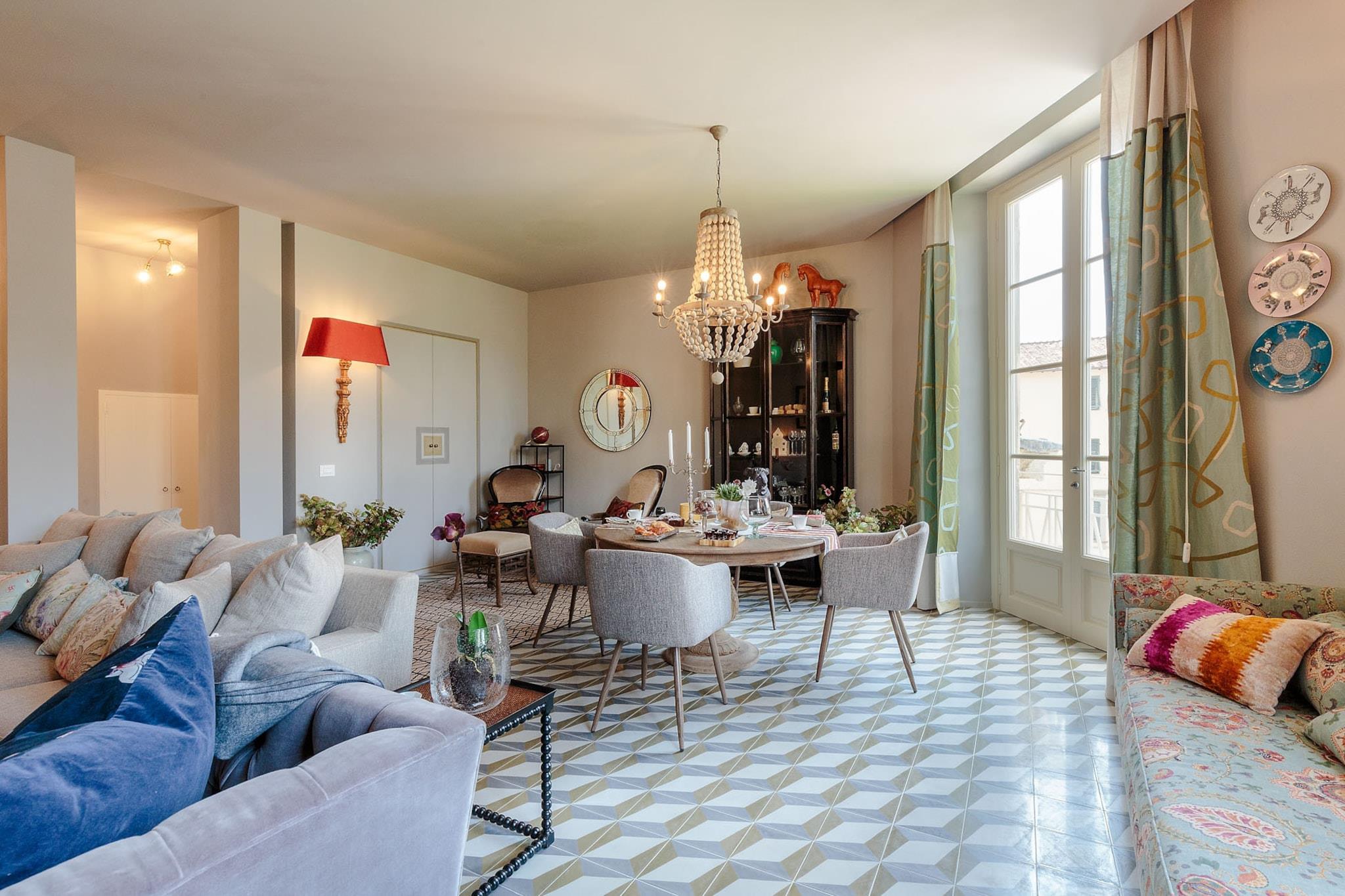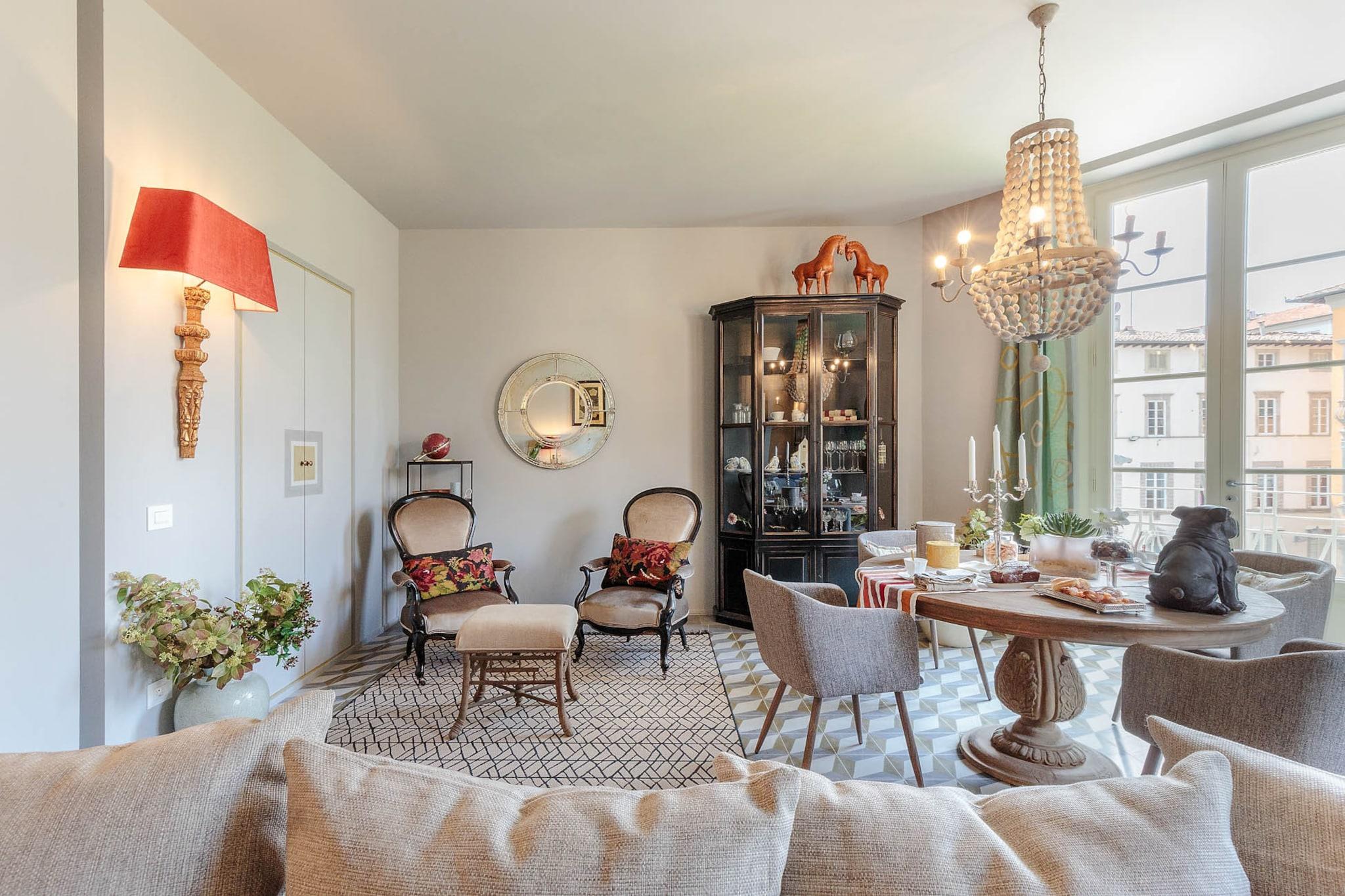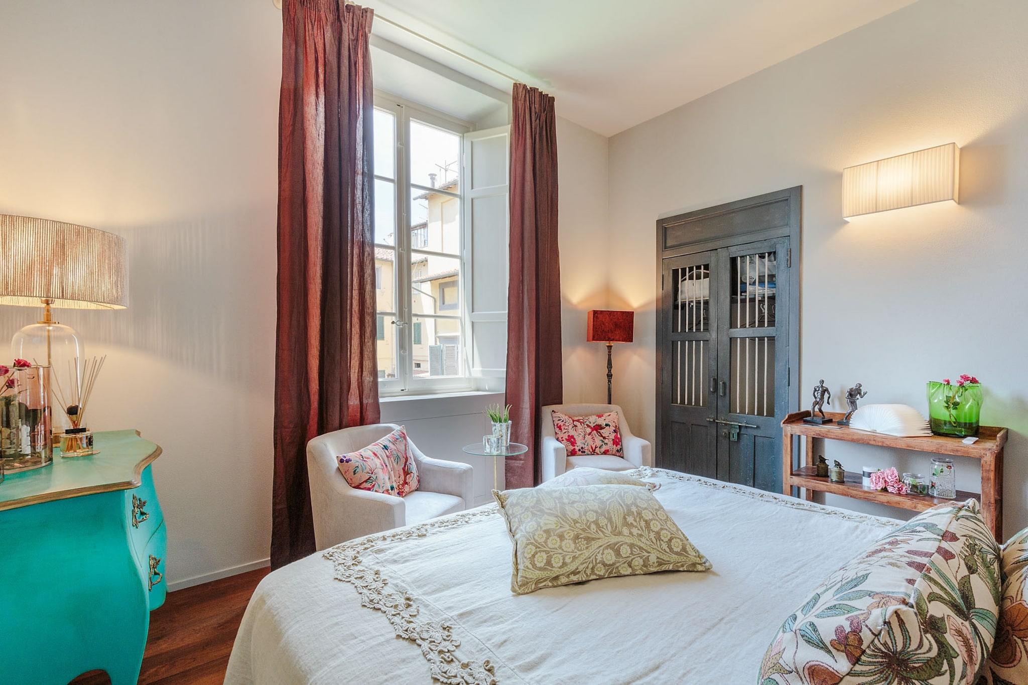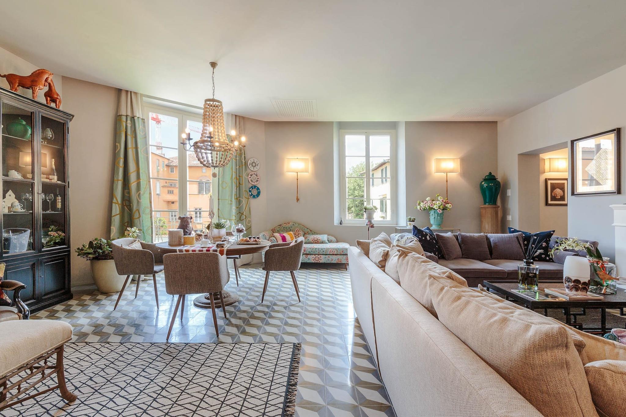 Oplev Lucca, når det er mest raffineret, i denne rummelige lejlighed på 350 m², der er designet til stil, komfort og ubesværet gruppeliv. Med 4 smukt indrettede soveværelser og plads til op til 8 gæster er dette moderne tilflugtssted ideelt for familier eller venner, der søger en fredelig base i hjertet af det historiske centrum. Beliggende i en rolig, men central beliggenhed, er du kun få skridt fra byens mest ikoniske steder, herunder de middelalderlige mure, Piazza Napoleone og Duomoen, mens Luccas fineste restauranter - såsom Il Giglio og La Buca di Sant'Antonio - venter lige uden for din dør. Gå til kunsthåndværkerbutikker, charmerende caféer og grønne boulevarder, eller nå nemt tog- og busstationerne for dagsture i Toscana. Indenfor åbner lejligheden ind i store opholdsrum oversvømmet med naturligt lys, med elegante møbler og en indbydende atmosfære. Det elegante åbne køkken er fuldt udstyret med alt, hvad du behøver - fra gaskomfur og opvaskemaskine til kaffemaskine og brødrister - til mindeværdige fælles måltider. Hold dig forbundet med hurtig Wi-Fi, slap af i den hyggelige lounge efter en dag med sightseeing, eller nyd en rolig aften derhjemme med en flaske toscansk vin. Praktiske detaljer som centralvarme, aircondition, vaskemaskine/tørretumbler og flere moderne badeværelser sikrer, at alle har det behageligt. Uanset om du er her for at udforske Lucca eller slappe af med stil, er dette dit perfekte hjem væk fra hjemmet. Bemærk: Turistskat skal betales på ejendommen.