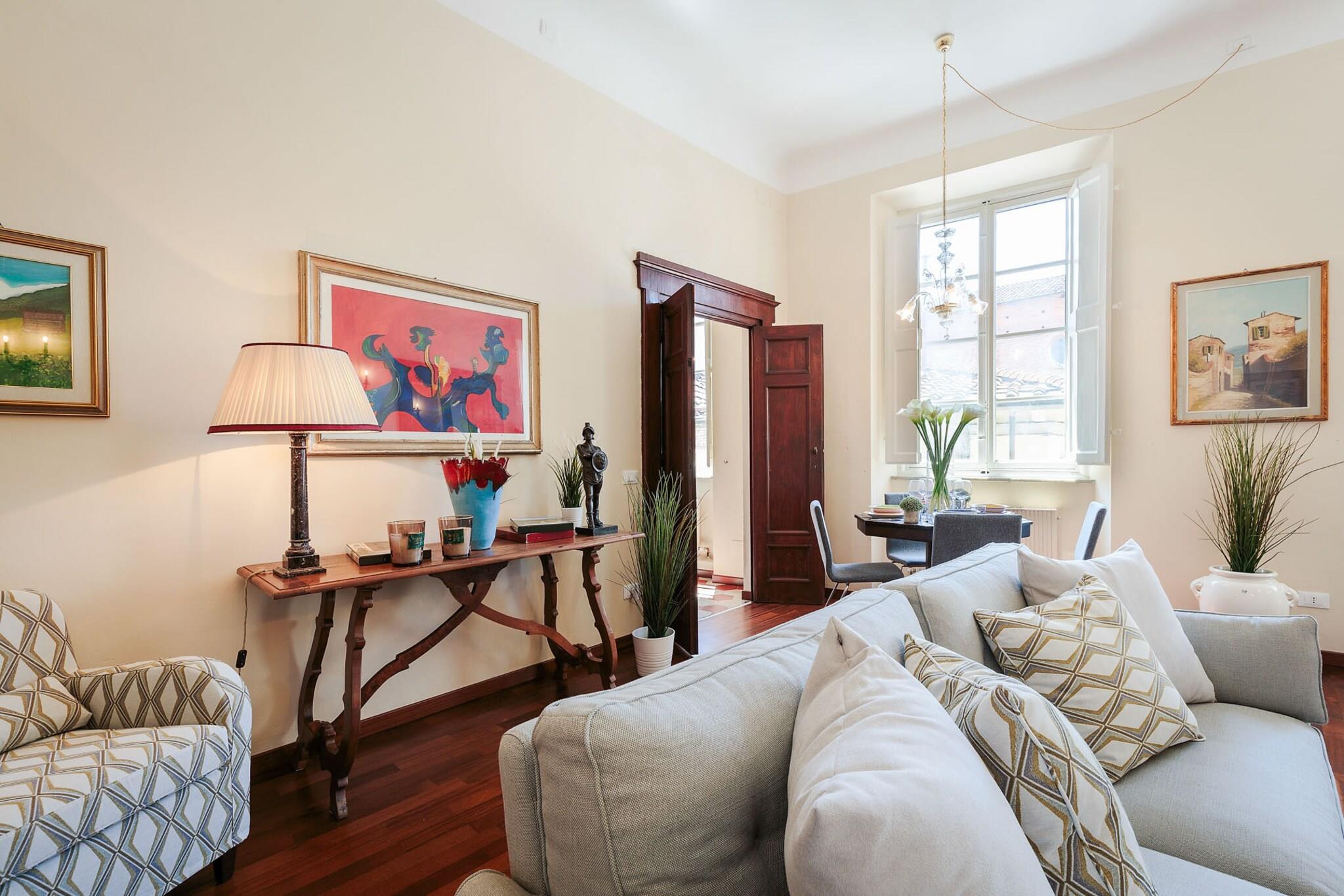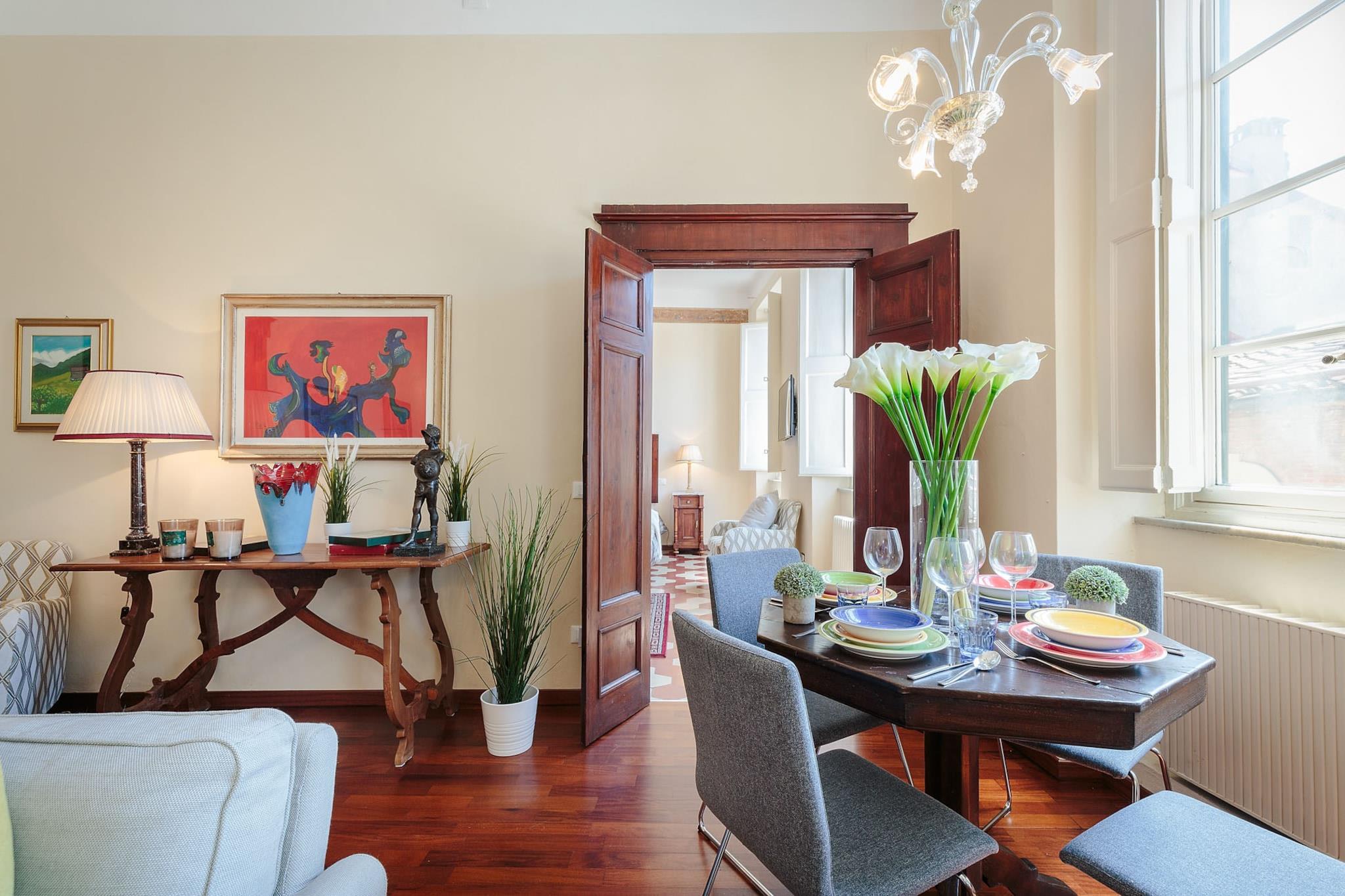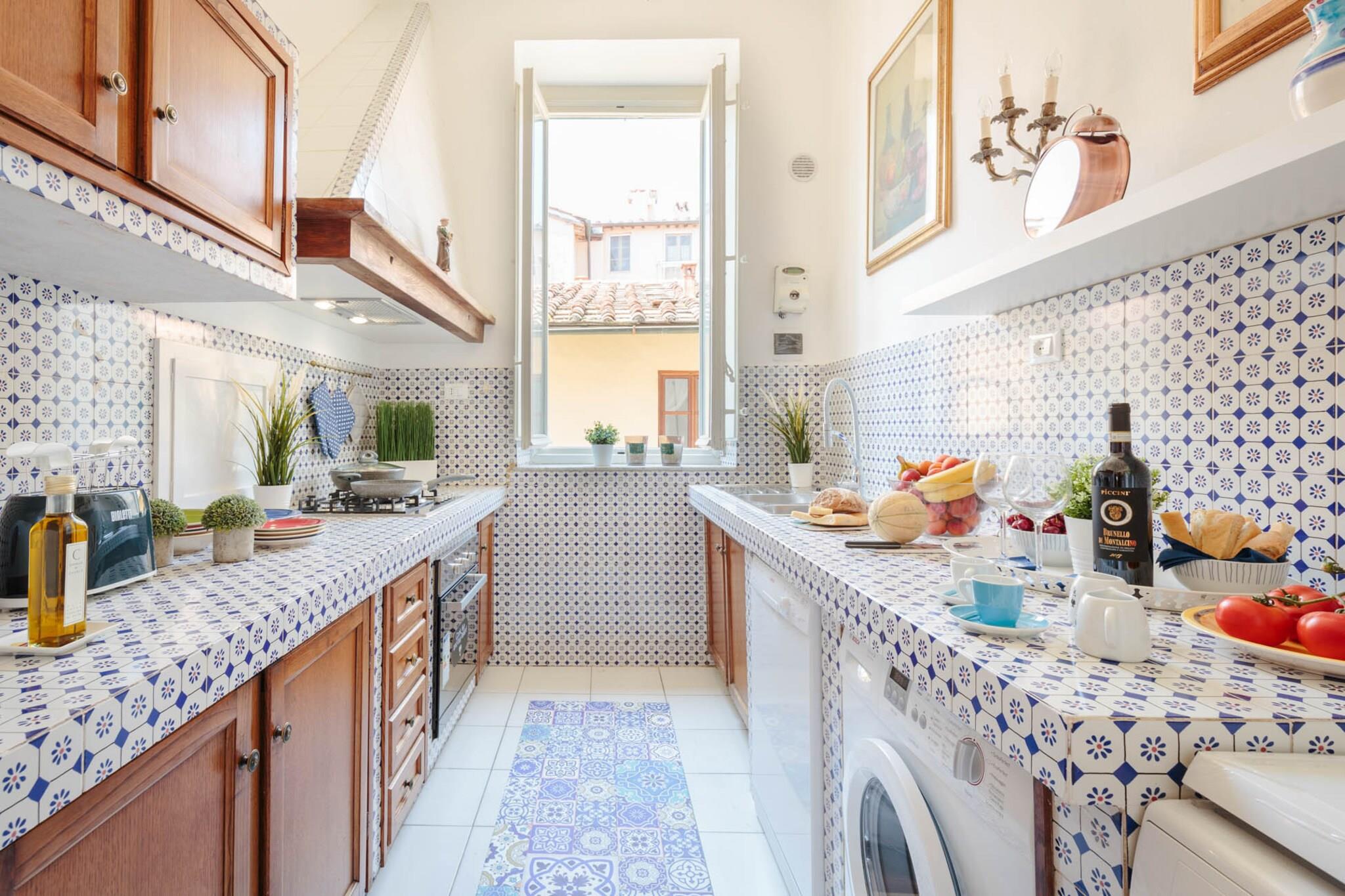 Vågn op til Luccas charme i denne romantiske lejlighed med 2 soveværelser med udsigt over den maleriske Piazza Santa Maria Forisportam. Med en storslået udsigt fra stuen og spisestuen føles hvert øjeblik her som et postkort, der kommer til live. Kun en kort gåtur fra Luccas ikoniske vartegn - Guinigi-tårnet, Piazza Napoleone, San Michele og Via Fillungo - er du også inden for fem minutter fra bekvem parkering og togstationen. Interiøret blander klassiske Lucchese-detaljer med moderne komfort. To rummelige soveværelser og et lyst badeværelse tilbyder et roligt tilflugtssted efter en dag med sightseeing. Det fuldt udstyrede køkken har alt fra brødrister og mikrobølgeovn til opvaskemaskine, vaskemaskine og tørretumbler - perfekt til lange eller korte ophold. Slap af i den hyggelige stue med moderne sofaer, ideel til at slappe af med et glas vin, mens solen går ned over pladsen. Lejligheden er omhyggeligt designet med komfort i tankerne og har madrasser af høj kvalitet, stærk Wi-Fi og aircondition i det største soveværelse og opholdsstue. Dette solrige rum, der ligger på anden sal, er den perfekte base for at nyde det bedste af Lucca, lige uden for dit vindue. Bemærk: Turistskat skal betales på ejendommen.