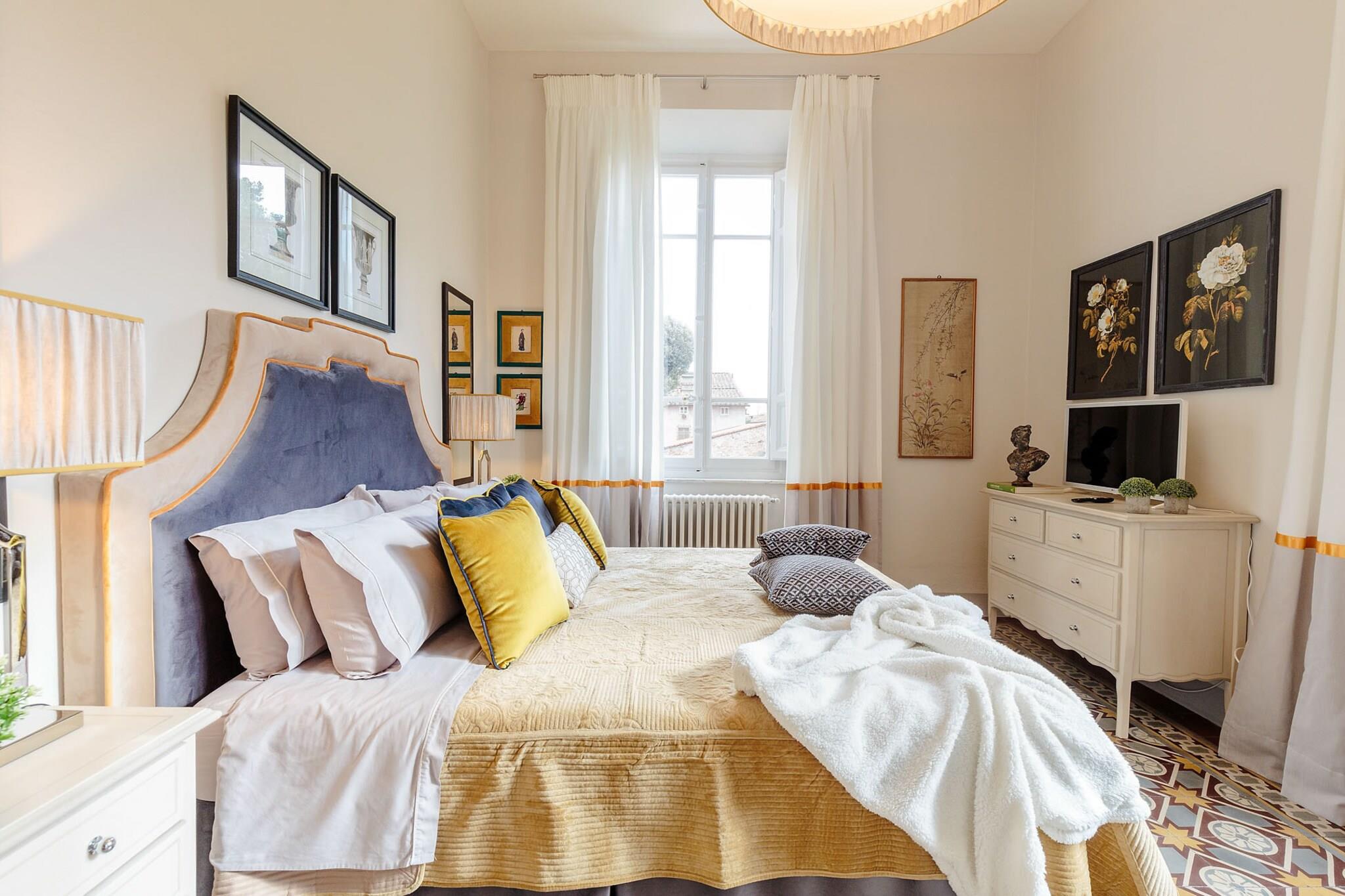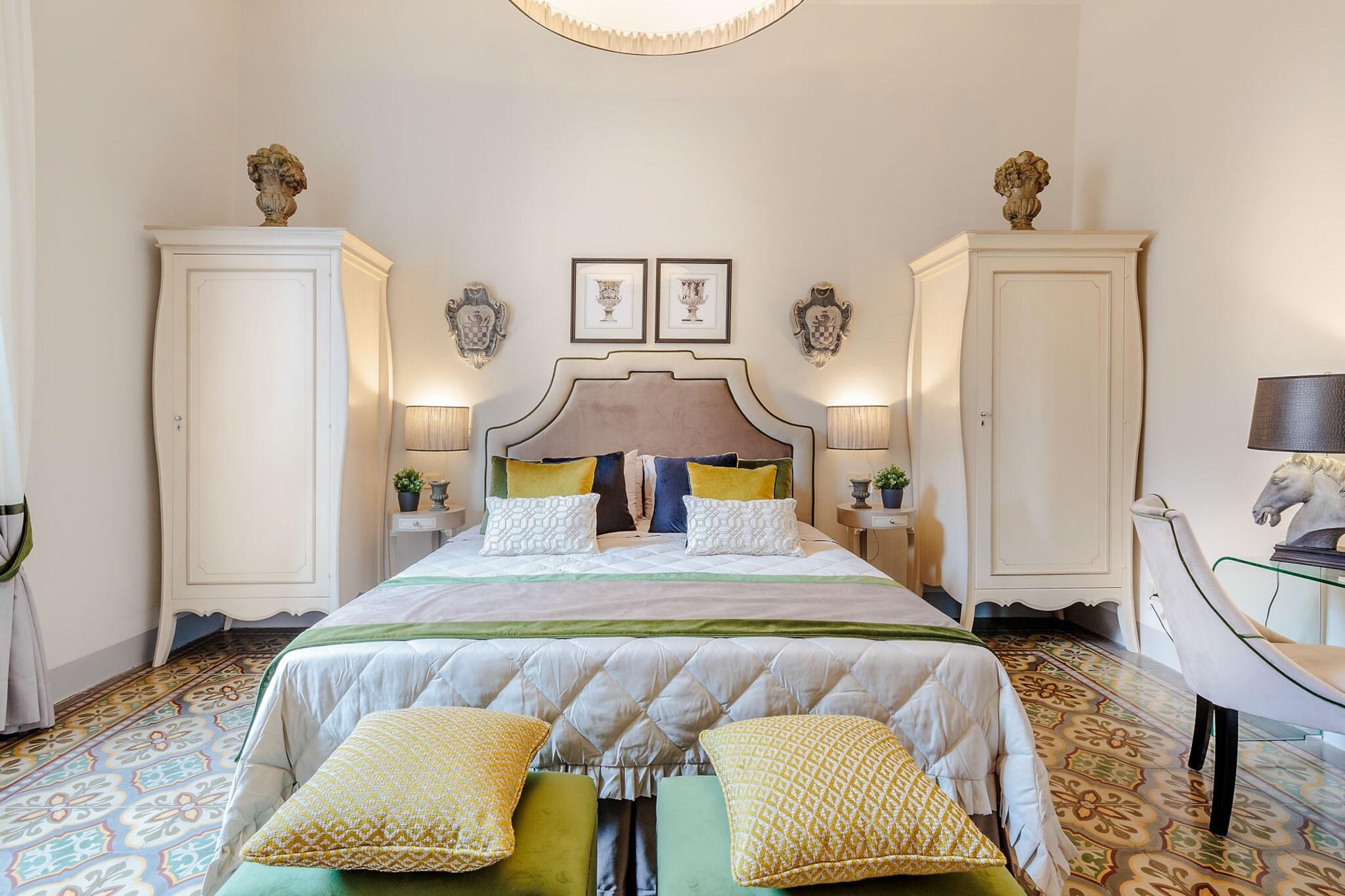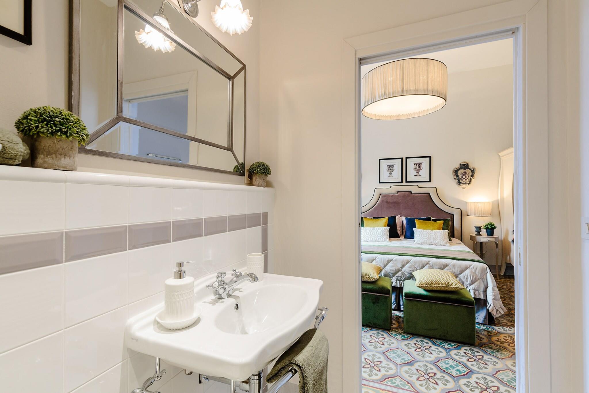 Denne raffinerede lejlighed, der ligger på fjerde sal med en storslået udsigt over renæssancevilla Bottini's frodige haver, lever op til sit navn: Parkudsigt. Hvert vindue og den rummelige private terrasse indrammer Luccas mest ikoniske grønne områder. Omgivelserne er ren toscansk elegance, kun 5 minutters gang fra togstationen, sikker parkering og vartegn som Anfiteatro, San Michele og Via Fillungo, som man ikke må gå glip af. Indenfor møder tidløs charme moderne luksus. Lofter til kip, franske døre og originale antikke fliser blandes problemfrit med fløjlsmøbler og bløde nuancer af smaragd og trækul. Den åbne stue og spisestue inviterer til lange samtaler, mens det fuldt udstyrede køkken er klar til kulinariske eventyr. Efter en dag med udforskning kan du slappe af med et dampbad i det spa-lignende badeværelse eller nippe til vin under stjernerne på den overdækkede tagterrasse. Med fire stilfulde soveværelser og fire badeværelser - to med eget badeværelse - plus aircondition, højhastigheds-Wi-Fi og elevatoradgang er lejligheden en ideel base for familier eller venner. Kvarteret summer af historie, fra middelaldergader og romanske facader til restauranter i verdensklasse som den Michelin-stjernede Giglio. Og om sommeren forvandles den nærliggende park til en udendørsbiograf, der tilbyder aftener med auteurfilm under den toscanske himmel. Bemærk: Turistskat skal betales på ejendommen.