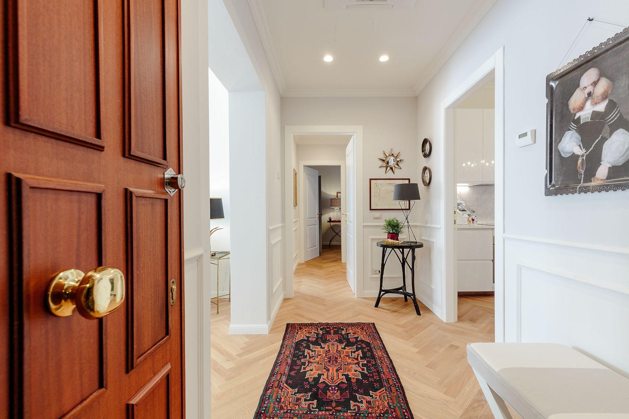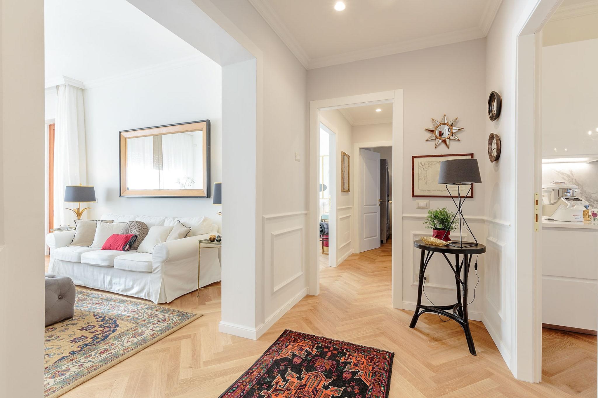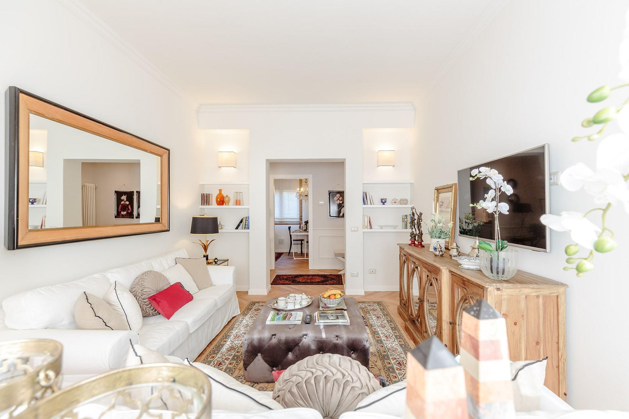 Nyd din egen toscanske ferie i denne smukt opdaterede og centralt beliggende lejlighed i Lucca. Perfekt til en lille familie, to par eller en romantisk ferie. Lejligheden har to komfortable kingsize-værelser, en privat terrasse, aircondition og endda privat parkering – sjældent i hjertet af byen. Bygningen har en elevator, hvilket gør det nemt at komme, og beliggenheden placerer dig kun få minutter fra Luccas historiske bymure, togstationen og de vigtigste attraktioner. Indenfor balancerer lejligheden charmen af italiensk tradition med elegant, moderne komfort. Elegante antikke detaljer møder moderne møbler, og den åbne stue og spisestue er ideel til at samles efter en dag med sightseeing. Der er også en hyggelig tv-stue og et veludstyret køkken med morgenmadsområde. Et luksuriøst marmorbadeværelse, sengelinned af høj kvalitet og gennemtænkte detaljer overalt skaber et indbydende og afslappende tilflugtssted. Træd udenfor, og du er inden for kort gåafstand af Luccas mest kendte seværdigheder – Via Fillungo, Piazza San Michele, Torre Guinigi og Puccini-koncertsalene. Privat parkering gør det nemt at udforske den bredere region, med dagsture til Firenze, Pisa, San Gimignano og strandene i Versilia inden for rækkevidde. Du finder også dagligvarer, caféer, bagerier og restauranter inden for få gader, så du kan leve som en lokal, mens du nyder komforten i et privat, stilfuldt hjem. Bemærk: Turistskat skal betales på ejendommen.