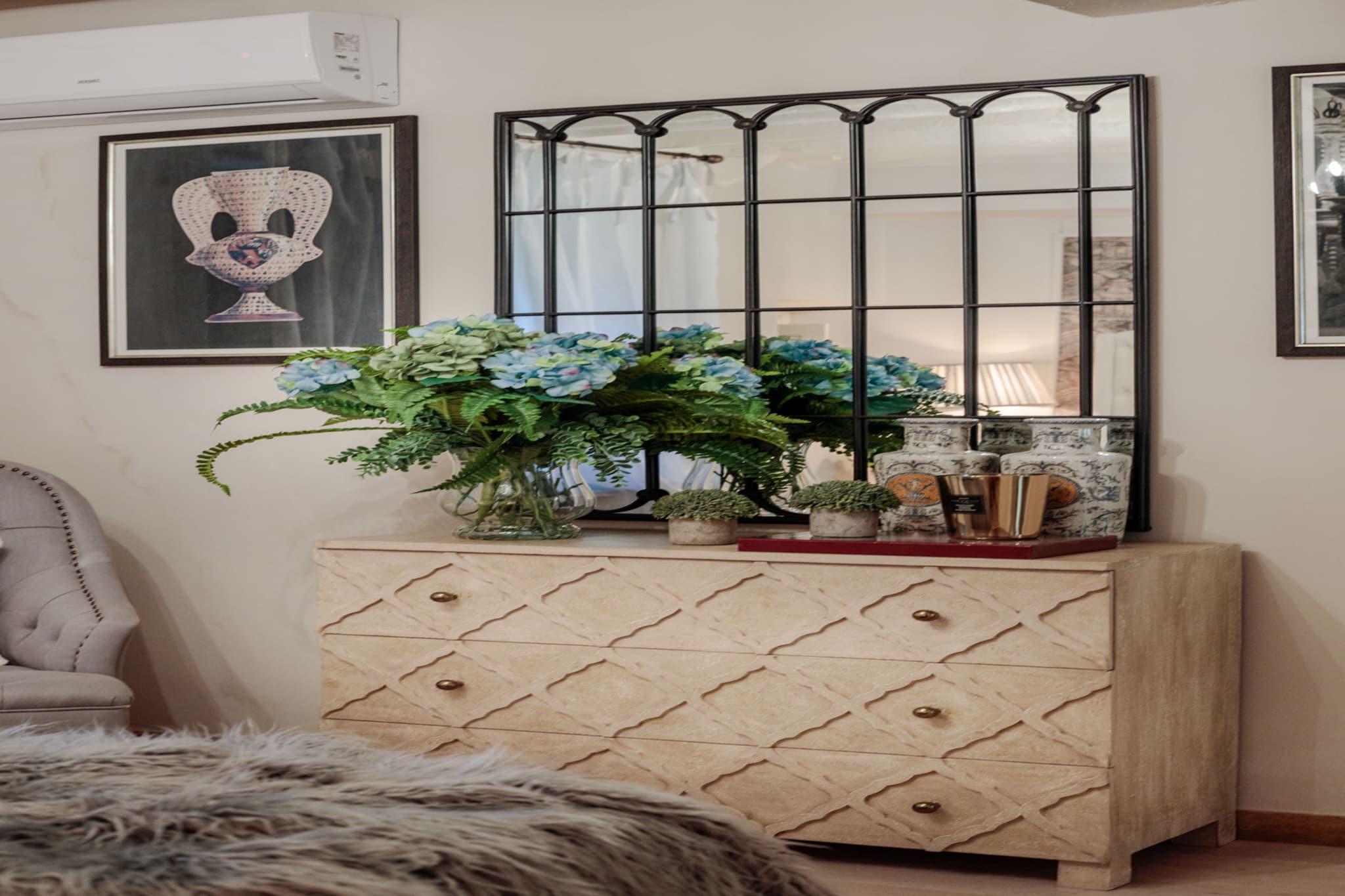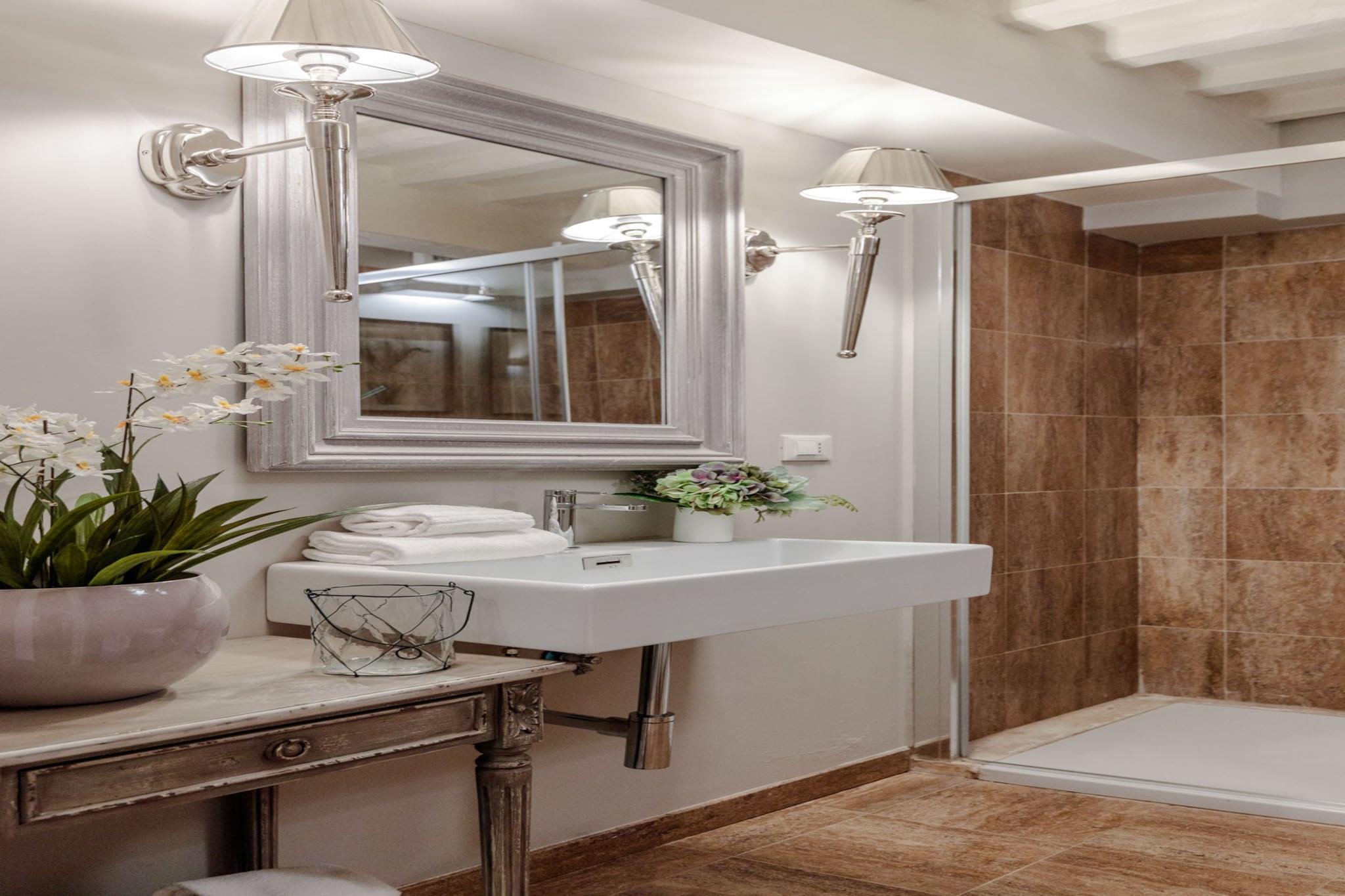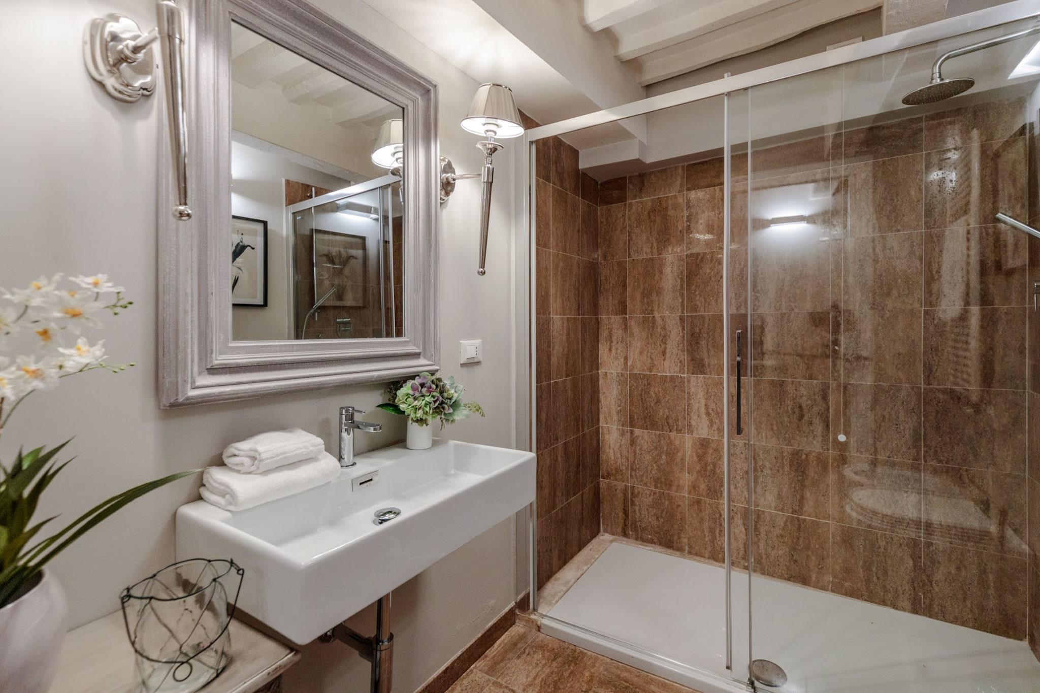 Dette romantiske gemmested i stueetagen ligger lige ved Via della Rosa og tilbyder en rolig tilflugtssted i hjertet af det historiske Lucca. Denne smukt restaurerede lejlighed blander tidløs elegance med moderne komfort og inviterer dig til at sætte farten ned og nyde Toscanas charme. Indenfor byder en blød og indbydende opholdsstue dig velkommen med høje, hvidkalkede bjælkelofter og omhyggeligt udvalgte detaljer. Soveværelset har håndmalet tapet, en overdådig seng under en glitrende lysekrone og store vinduer med udsigt over en rolig, hemmelig have. Badeværelset er et raffineret fristed med en elegant marmorbruser - perfekt til afslapning efter en dag med udforskning. Det fuldt udstyrede køkken indeholder alt fra elkedel og brødrister til både italienske og amerikanske kaffemaskiner, mikrobølgeovn og vaskemaskine - ideelt til længere ophold eller hyggelige måltider derhjemme. Et separat vaskerum tilføjer ekstra bekvemmelighed. Du vil være kun få øjeblikke fra Luccas mest ikoniske seværdigheder: Middelalderkirken Chiesa della Rosa og de gamle romerske ruiner ligger kun et minut væk. Den berømte Piazza San Giovanni, hjemsted for Puccini-koncerter, ligger kun en kort gåtur væk. Restauranter, vinbarer og gelato-butikker er overalt omkring dig og tilbyder alt fra romantiske middage til afslappede snacks. Togstationen ligger fem minutters gang derfra, og der er sikker parkering tilgængelig cirka 7-8 minutter væk til fods. Uanset om du søger en romantisk ferie eller en stilfuld storbyferie, lover dette drømmeagtige Lucca-tilflugtssted et uforglemmeligt ophold. Bemærk: Turistskat skal betales på ejendommen.