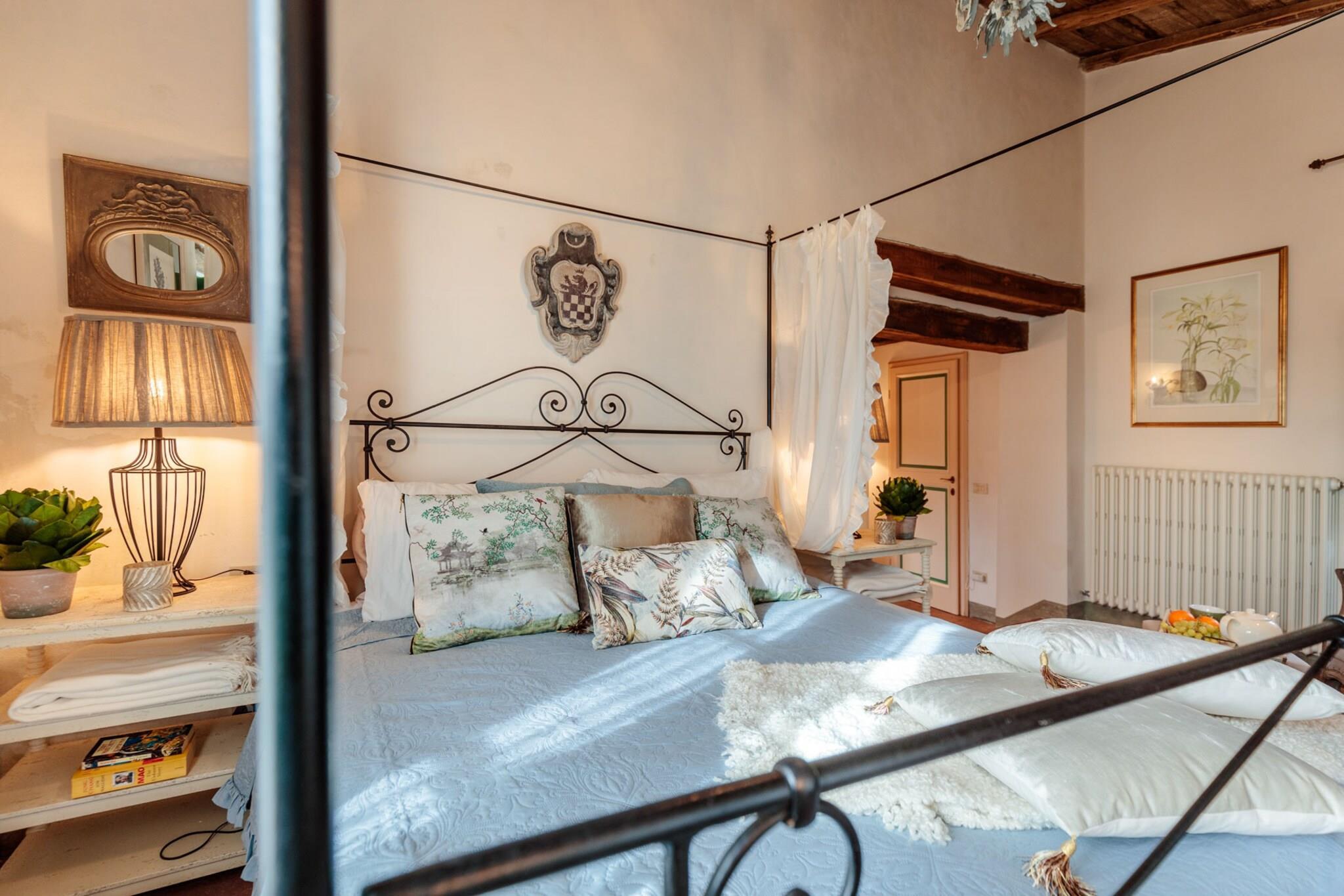 Beliggende mellem olivenlunde og bølgende bakker tilbyder dette rolige toscanske tilflugtssted en betagende udsigt over Luccas middelalderlige skyline og mod de fjerne bjerge ved havet. Ejendommen er omgivet af haver fyldt med urter, blomster og frugttræer og har en privat infinity-pool og tennisbane, mens naturskønne vandrestier starter lige uden for døren. Villaens traditionelle stukfacade og rustikke interiørdetaljer - hvælvede buer, trælofter og stengulve - skaber en varm, tidløs atmosfære, der smelter problemfrit sammen med de naturlige omgivelser. Villaen er perfekt til familier eller vennegrupper og strækker sig over tre etager og inkluderer fem smukt indrettede soveværelser, fire badeværelser og generøse fællesområder. Nyd at samles omkring det store køkkens antikke spisebord eller spise udendørs under den blåregnbeklædte veranda med udsigt over Freddana-dalen. De airconditionerede soveværelser i master-etagen og soveværelserne på øverste etage giver ekstra komfort, mens det udendørs marmorbord, lysthusloungen og siddepladserne ved poolen indbyder til lange, afslappende dage i solen. Kun 15 minutter fra Lucca og 25 fra strandene ved den versilianske riviera finder beliggenheden en perfekt balance mellem fredfyldt landlig atmosfære og adgang til kultur, vin og hav. Oplev charmerende middelalderlandsbyer, tag et madlavningskursus, nyd lokale vine, eller planlæg dagsture til Firenze, Pisa og Cinque Terre. En kort køretur ned ad bakken bringer dig til butikker, et bageri og restauranter. Bemærk venligst: Adgang via en typisk toscansk grusvej, og af sikkerhedsmæssige årsager er ejendommen ikke egnet til børn under seks år. Bemærk: Turistskat skal betales på ejendommen.