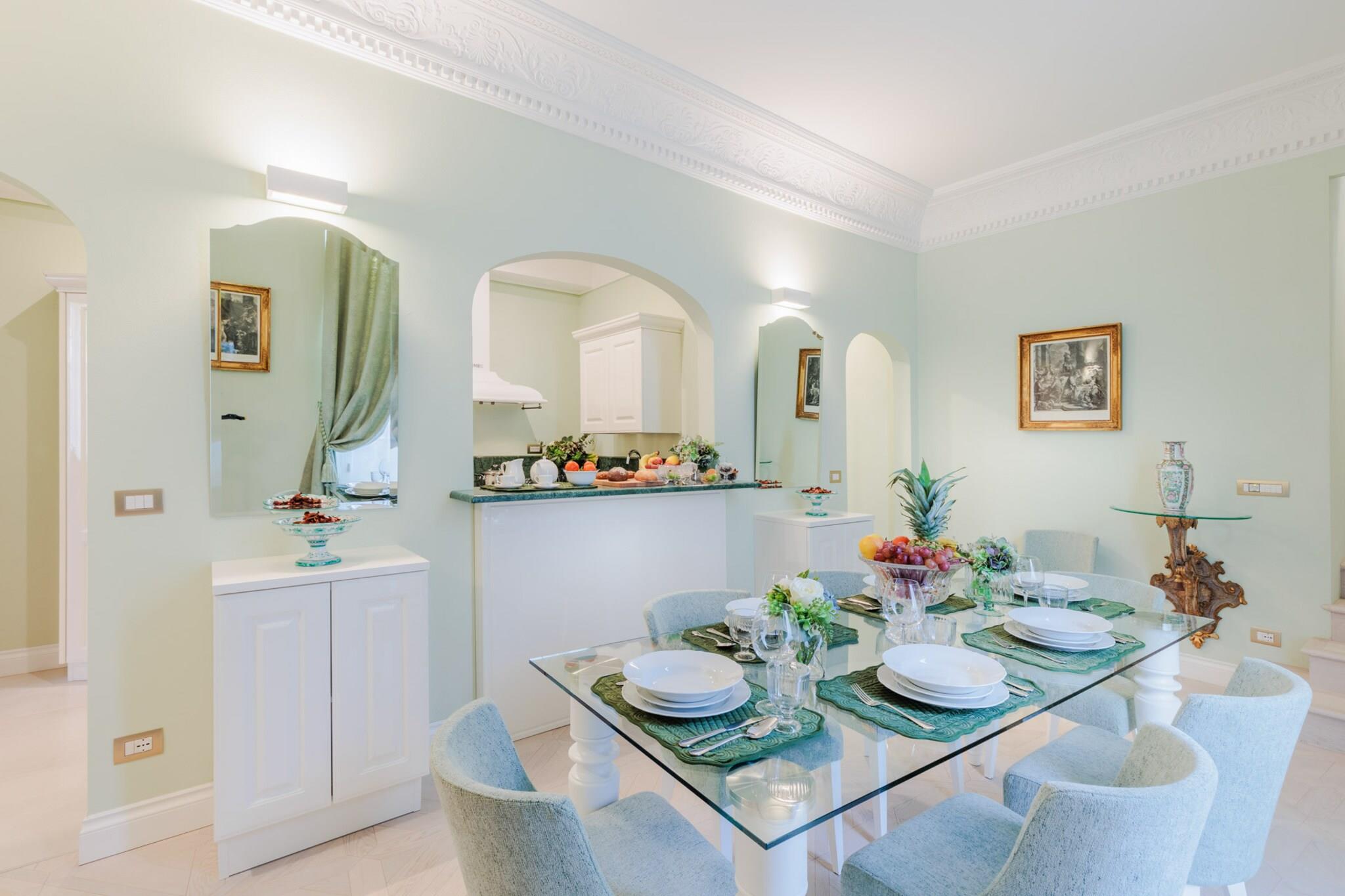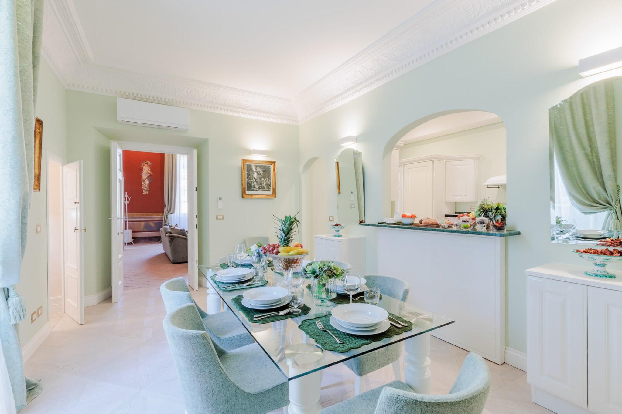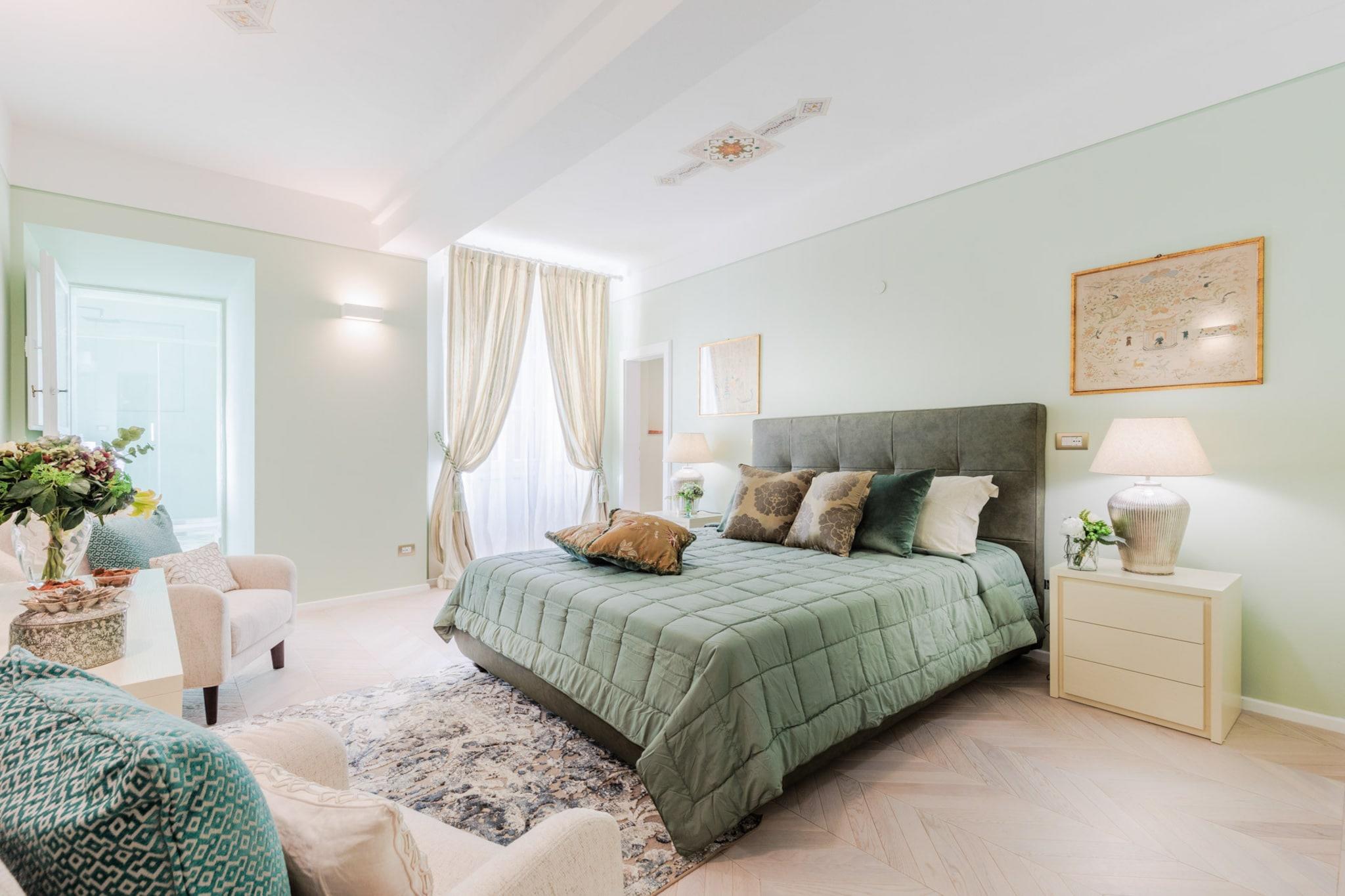 Gemt væk i hjertet af Luccas historiske centrum, er The Duchess Chambers en majestætisk tilflugtssted, hvor århundreder gammel elegance møder moderne komfort. Denne luksuriøse bolig på 200 m², der engang var hjemsted for adelen, er udsmykket med freskomalerier i stuen og trælofter i soveværelserne. Den er designet til at rumme op til seks gæster og har tre soveværelser, hver med en kingsize-seng og eget badeværelse. Den rummelige stue, fyldt med naturligt lys fra store vinduer, åbner ind til en spiseplads og et fuldt udstyret køkken, perfekt til at dele måltider efter en dag med udforskning. Hjemmet inkluderer også et gæstetoilet, vaskerum og bekvem elevatoradgang. Fra det øjeblik du træder udenfor, udfolder Luccas skatte sig omkring dig. Piazza San Michele ligger lige rundt om hjørnet, og inden for få minutters gang finder du Piazza Napoleone, det ikoniske Guinigi-tårn, Via Fillungos butikker og den elliptiske Piazza Anfiteatro. Den berømte katedral San Martino og antikvitetsmarkedet ligger også i nærheden og tilbyder en blanding af historie, kunst og lokal smag. Uanset om du foretrækker at slentre i brostensbelagte gader eller nyde espresso på en café, er byens charme altid lige ved din dør. The Duchess Chambers er godt forbundet og centralt beliggende, og er også en ideel base for at udforske områder uden for Lucca. Hovedbanegården, kun en kort gåtur væk, tilbyder nem adgang til Firenze, Pisa, Siena og endda Rom. Sikker parkering er tilgængelig cirka ti minutter fra ejendommen for gæster med bil. Uanset om du er her for kultur, gastronomi eller en ferie på landet, blander denne historiske perle ædel elegance med det bedste af toscansk livsstil. Bemærk: Turistskat skal betales på ejendommen.