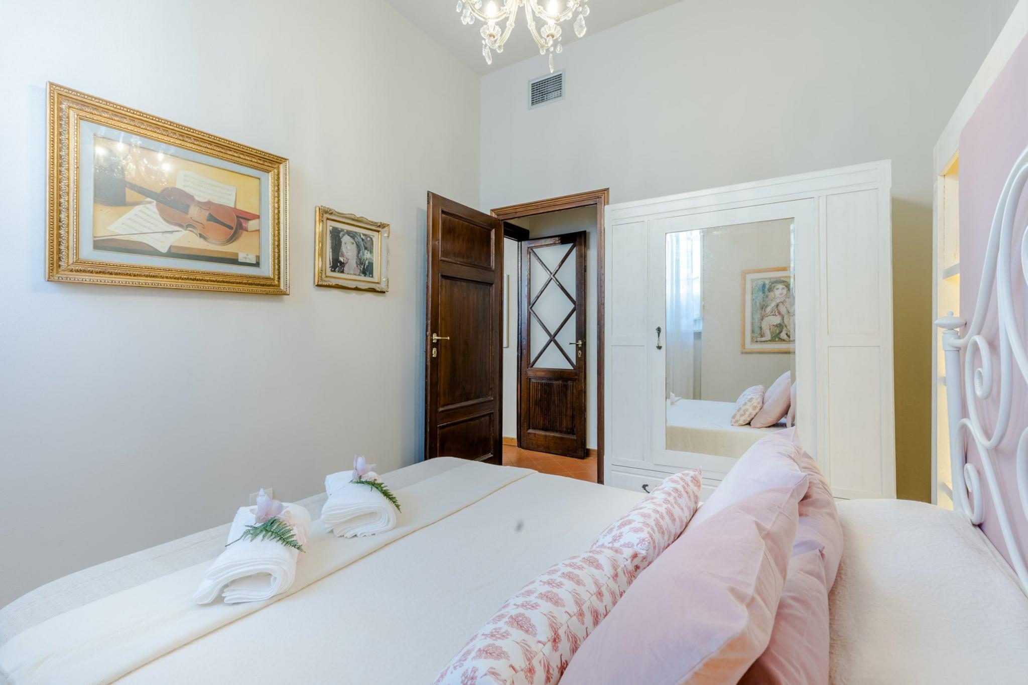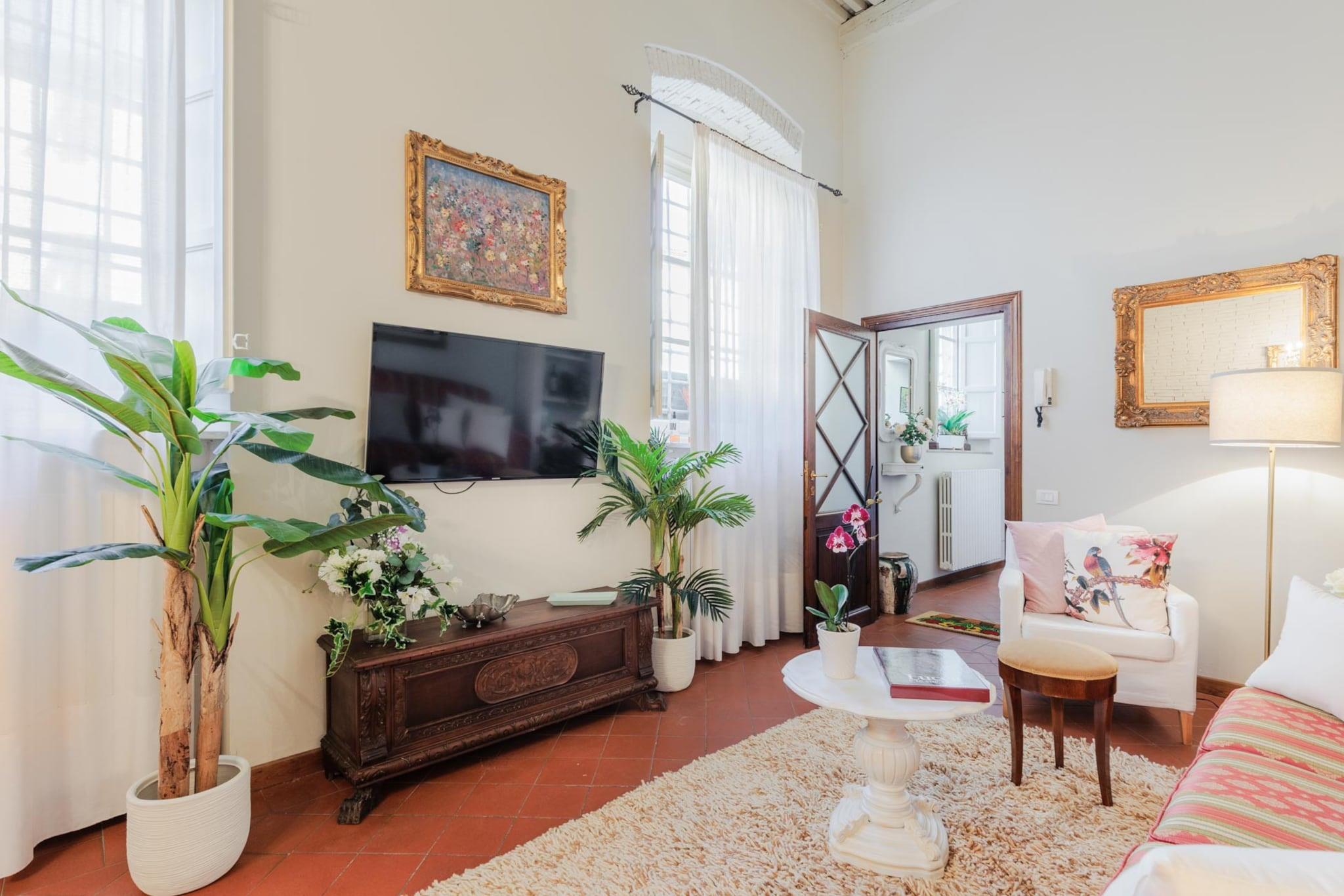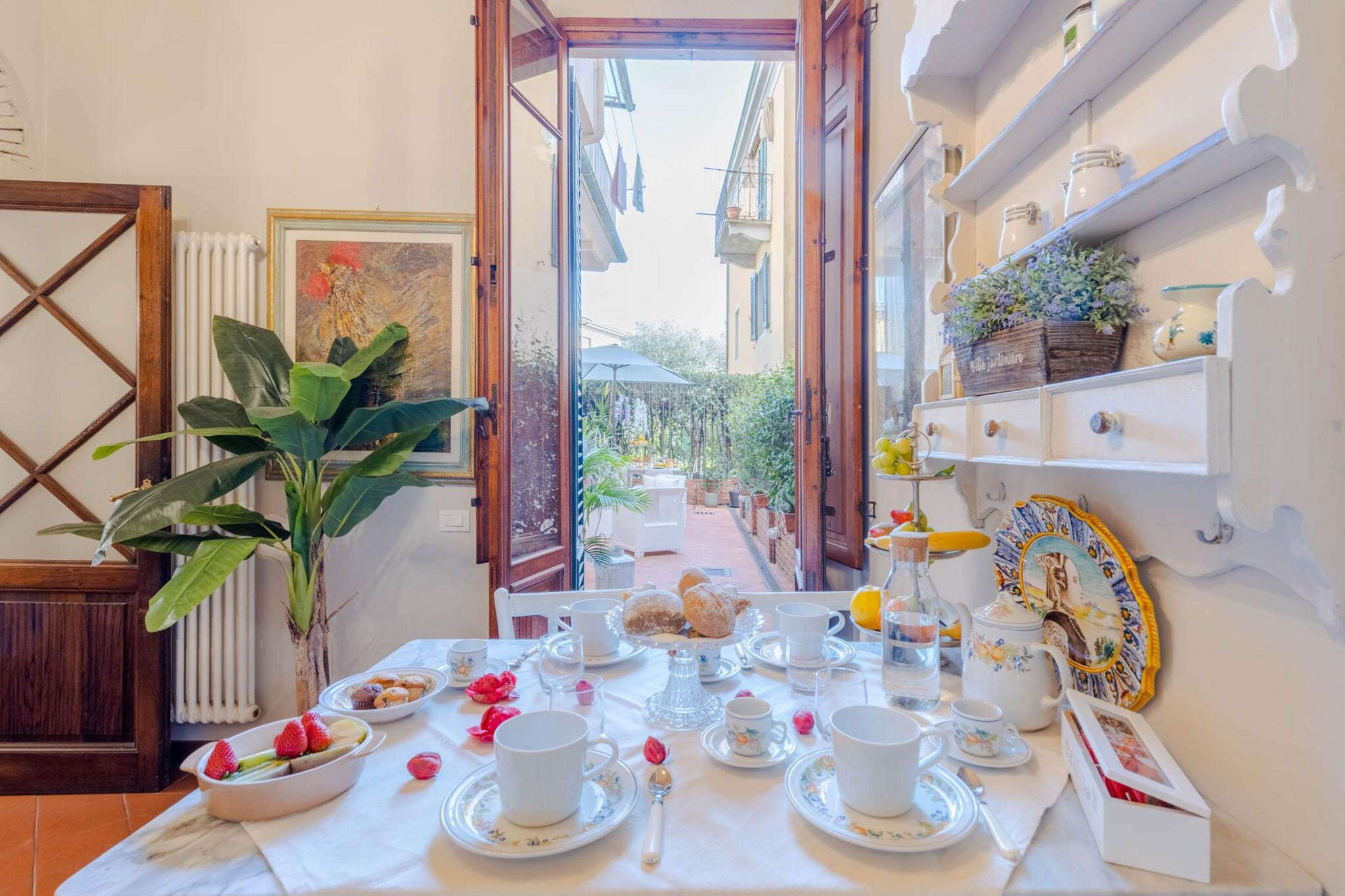 Beliggende i hjertet af Luccas historiske centrum tilbyder dette rolige tilflugtssted en fredfyldt tilflugtssted lige ved siden af en charmerende middelalderlig bæk. Lejligheden er elegant møbleret med hyggelige og indbydende møbler og kan prale af en rummelig privat have - en sjælden perle i byen - perfekt til afslapning eller til at nyde rolige øjeblikke væk fra travlheden. Den fredelige atmosfære komplementerer perfekt Luccas pulserende liv og skaber en idyllisk balance mellem ro og bekvemmelighed. Træd udenfor, og du er kun få minutter fra Luccas berømte vartegn. Gå en tur til det ikoniske Guinigi-tårn, slentre gennem Piazza dell'Anfiteatro, eller beundr den fantastiske romanske facade af San Michele in Foro - alt sammen inden for 5 minutters gang. Togstationen og sikker parkering er også i nærheden, hvilket gør rejsen ubesværet. Uanset om du udforsker byens middelalderlige mure, butikker eller dejlige caféer, er alt inden for rækkevidde. Indenfor tilbyder lejligheden to komfortable dobbeltværelser, aircondition for komfort året rundt og højhastighedsinternet, ideelt til både afslapning og arbejde. Den private have er din personlige oase i byen, mens vigtige faciliteter som frisk sengetøj, håndklæder og rengøringsservice er inkluderet for et problemfrit ophold. Dette fredelige gemmested er den perfekte base for at opleve Luccas magi med lethed og stil. Bemærk: Turistskat skal betales på ejendommen.