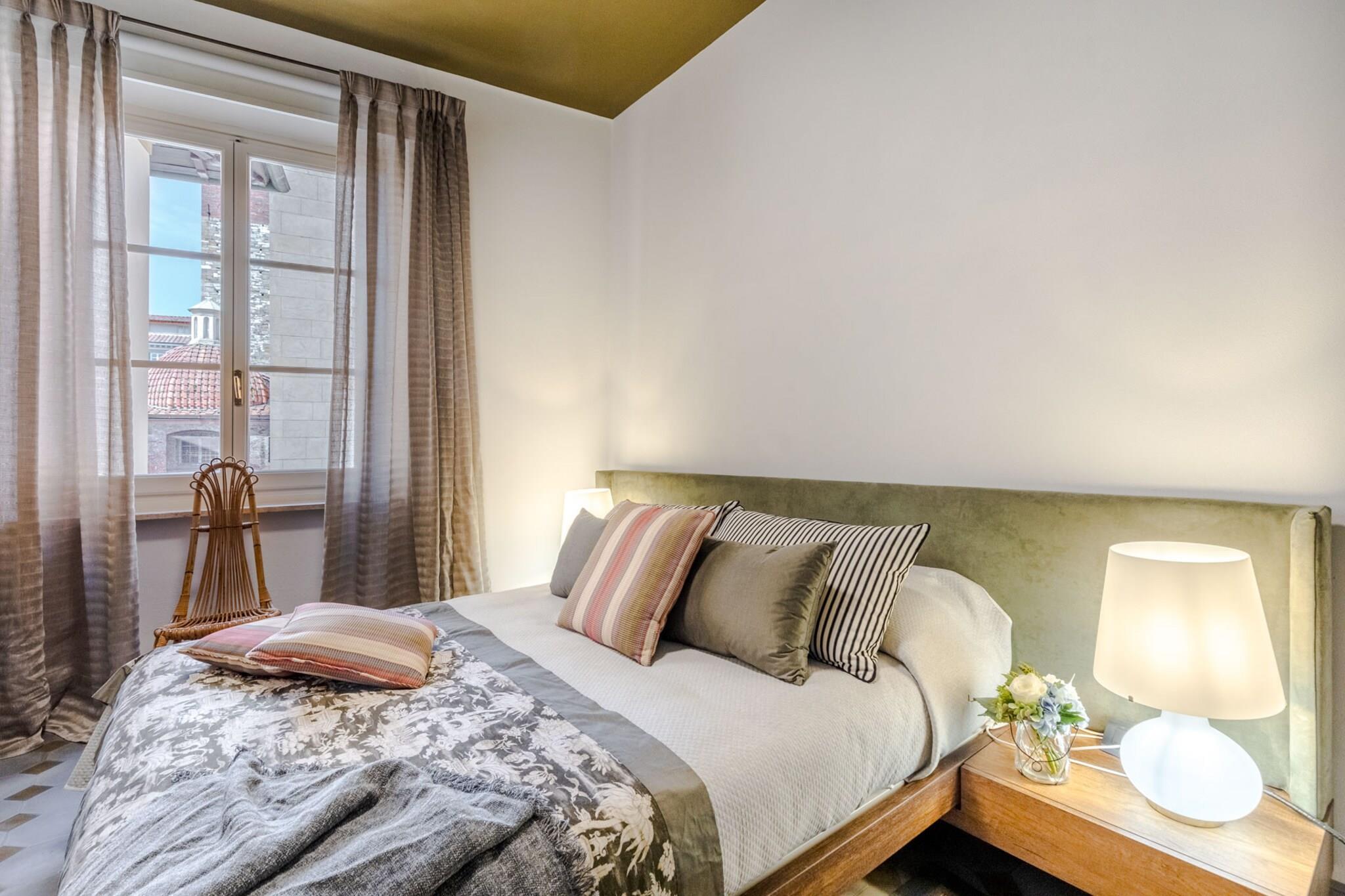 Træd ind i den tidløse elegance i denne luksuriøse bolig, der ligger på første sal i et historisk palads, der engang fungerede som den spanske ambassade i Republikken Lucca. Lejligheden er perfekt placeret inden for bymurene og har udsigt over det fantastiske Palazzo Pfanner, kun få skridt fra Piazza San Michele og den boutique-omkransede Via Fillungo. Vågn hver morgen op til charmen af middelalderkirker og barokke facader fra en privat balkon, og nyd morgenmaden med udsigt, der indfanger essensen af Luccas renæssancefortid. Dette raffinerede hjem tilbyder en ekstraordinær blanding af historisk arkitektur og moderne komfort. Det har fire soveværelser og fire komplette badeværelser, et kokkekøkken med førsteklasses apparater og to elegante stuer - hver med sit eget barkøkken, ideelt til at lave cocktails eller nyde afslappede aftener med venner og familie. Fuld aircondition, højhastigheds-WiFi og varme sikrer komfort året rundt, mens store vinduer oversvømmer rummet med naturligt lys og skaber en varm og indbydende atmosfære. Ejendommen er beliggende i en rolig zone med trafikbegrænset parkering (ZTL) med bekvem offentlig parkering kun en kort gåtur væk. Det er designet som et selvforplejningssted og giver gæsterne friheden til at opleve Lucca i deres eget tempo uden hotellignende tjenester, selvom yderligere faciliteter kan arrangeres efter anmodning. Uanset om du nipper til espresso på balkonen eller udforsker byens brostensbelagte gader, blander hvert øjeblik her historisk skønhed med moderne lethed. Bemærk: Turistskat skal betales på ejendommen.