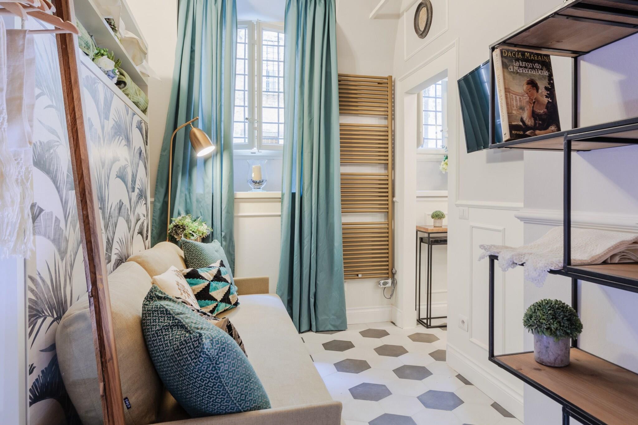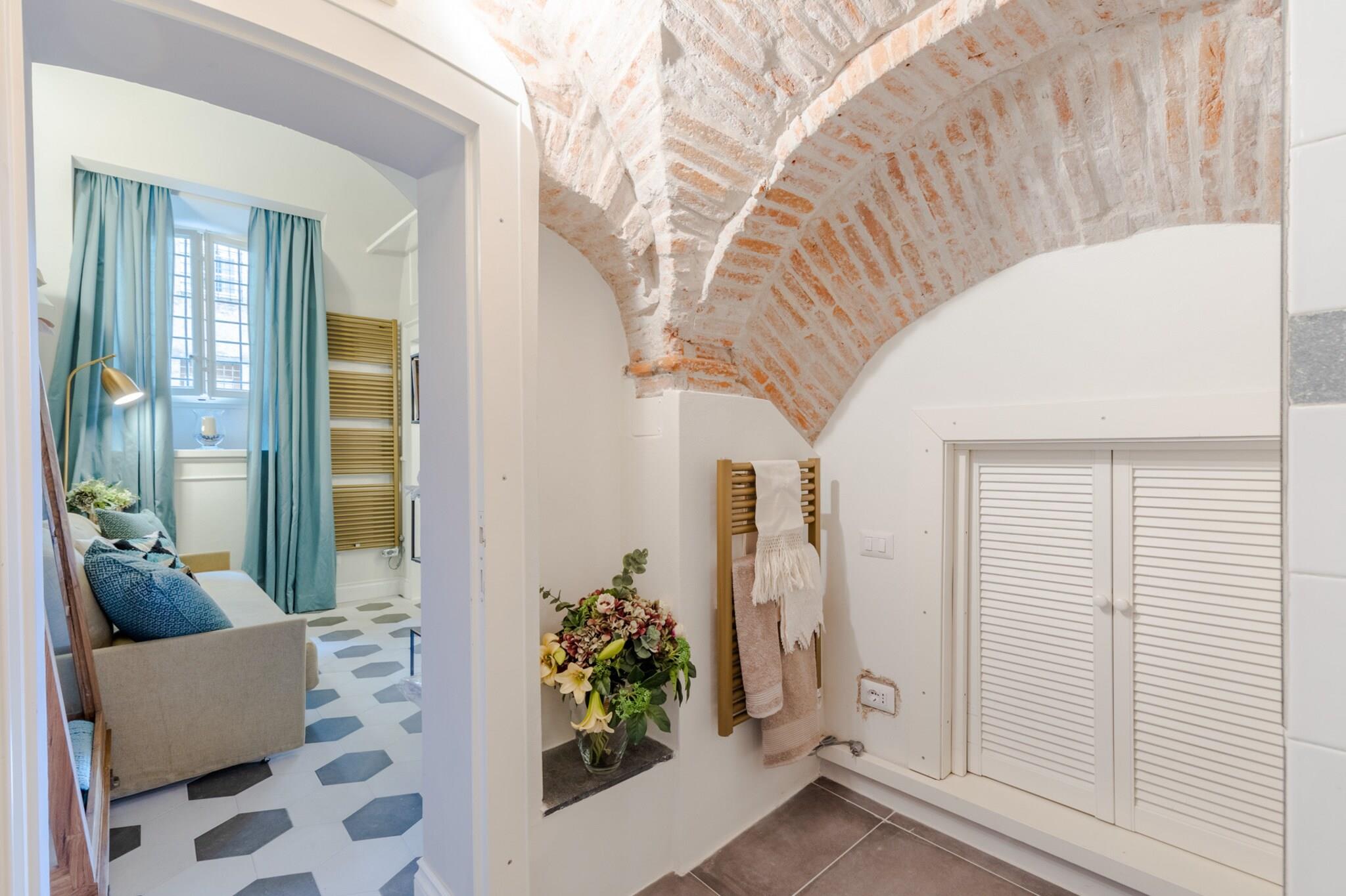 Nyd et moderne studie i stueetagen af Palazzo Busdraghi, et historisk palads fra det 16. århundrede beliggende langs Via Fillungo, Luccas største shoppinggade. Dette charmerende tilflugtssted placerer dig i hjertet af byen, kun få skridt fra caféer, restauranter og pizzeriaer. Trods sin centrale beliggenhed har Studio Busdraghi udsigt over en fredelig renæssancegårdsplads og tilbyder en rolig og fredfyldt atmosfære. Studioet er kompakt, kun 25 kvadratmeter stort - en hyggelig lille rede med en sovesofa og et fuldt udstyret tekøkken. Selvom der ikke er aircondition, bidrager de tykke historiske mure til at opretholde et køligt miljø. Bemærk venligst, at ejendommen ligger inden for ZTL (Limited Traffic Zone), som kun er tilgængelig for beboere og indehavere af tilladelser. Der er ingen parkering på stedet, men den nærliggende Mazzini Parking ligger kun en kort gåtur væk og er en bekvem mulighed for besøgende, der ankommer i bil. For at undgå bøder bedes du nøje følge de lokale trafikskilte, når du kører ind i området. Gæster bedes venligst bemærke, at lejligheden er selvforplejning, og derfor er hotellignende tjenester (såsom reception, daglig rengøring, måltider og skift af sengetøj) ikke inkluderet, som lovpligtigt. Yderligere tjenester kan dog arrangeres efter anmodning gennem betroede eksterne udbydere og vil blive faktureret separat. Bemærk: Turistskat skal betales på ejendommen.