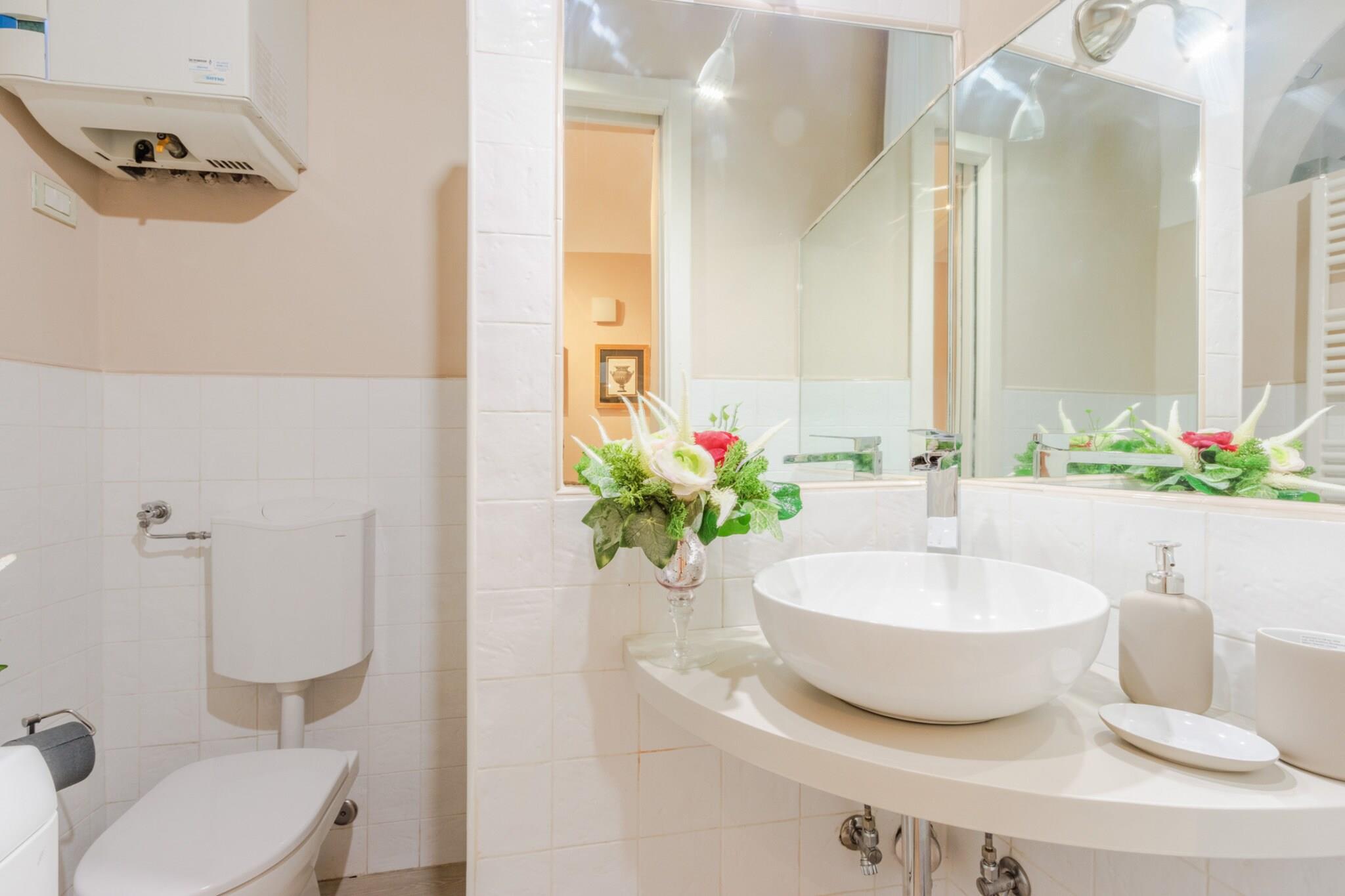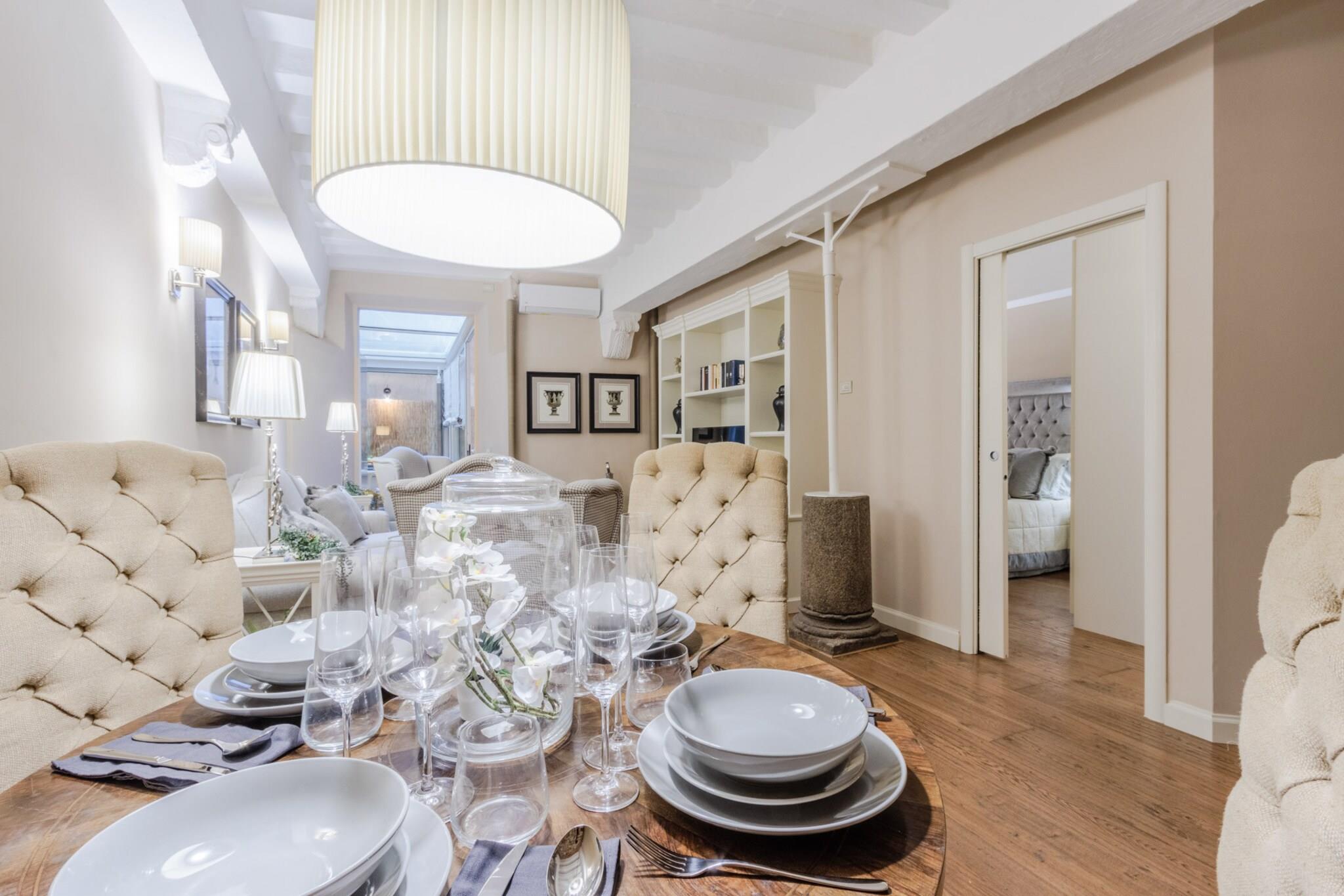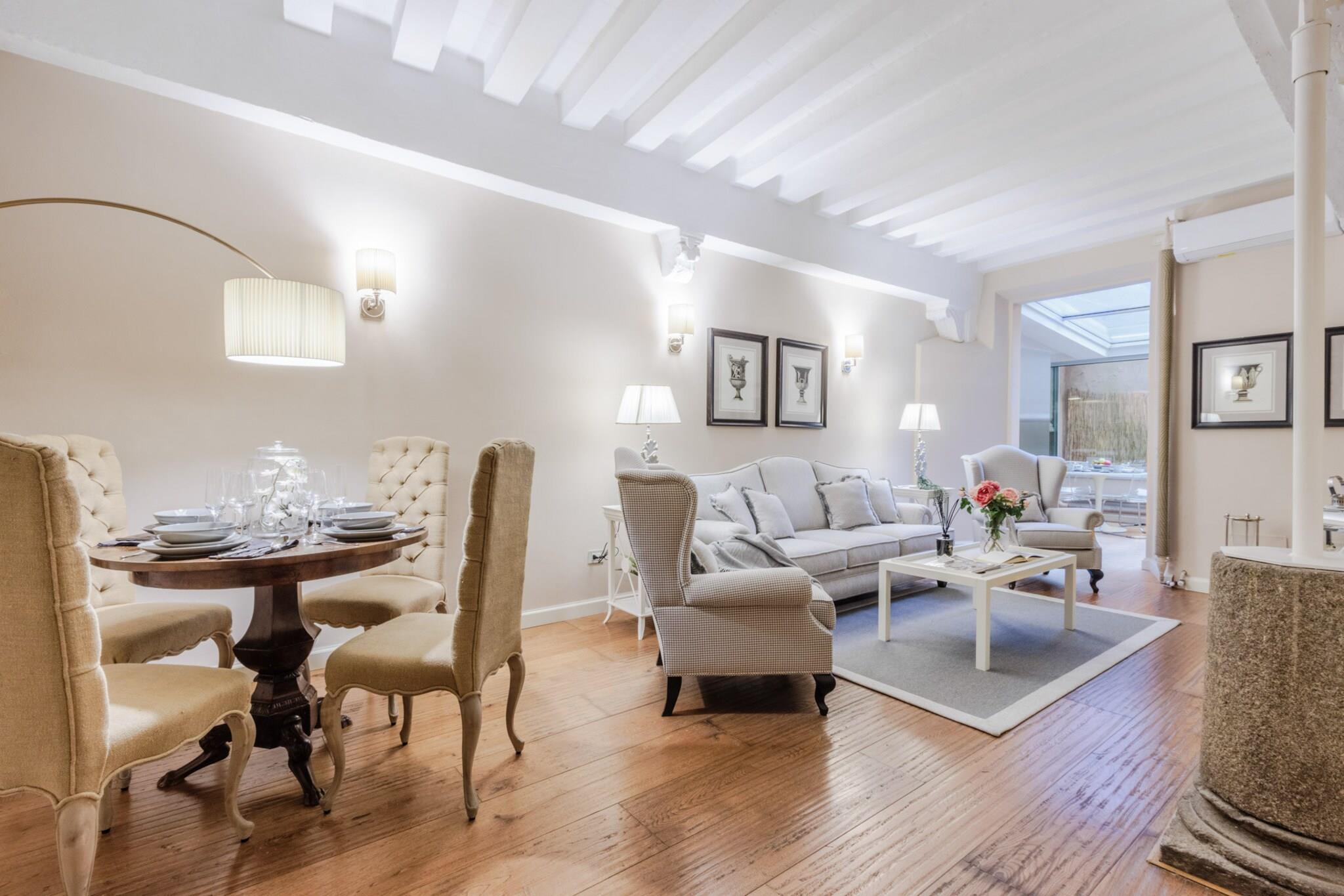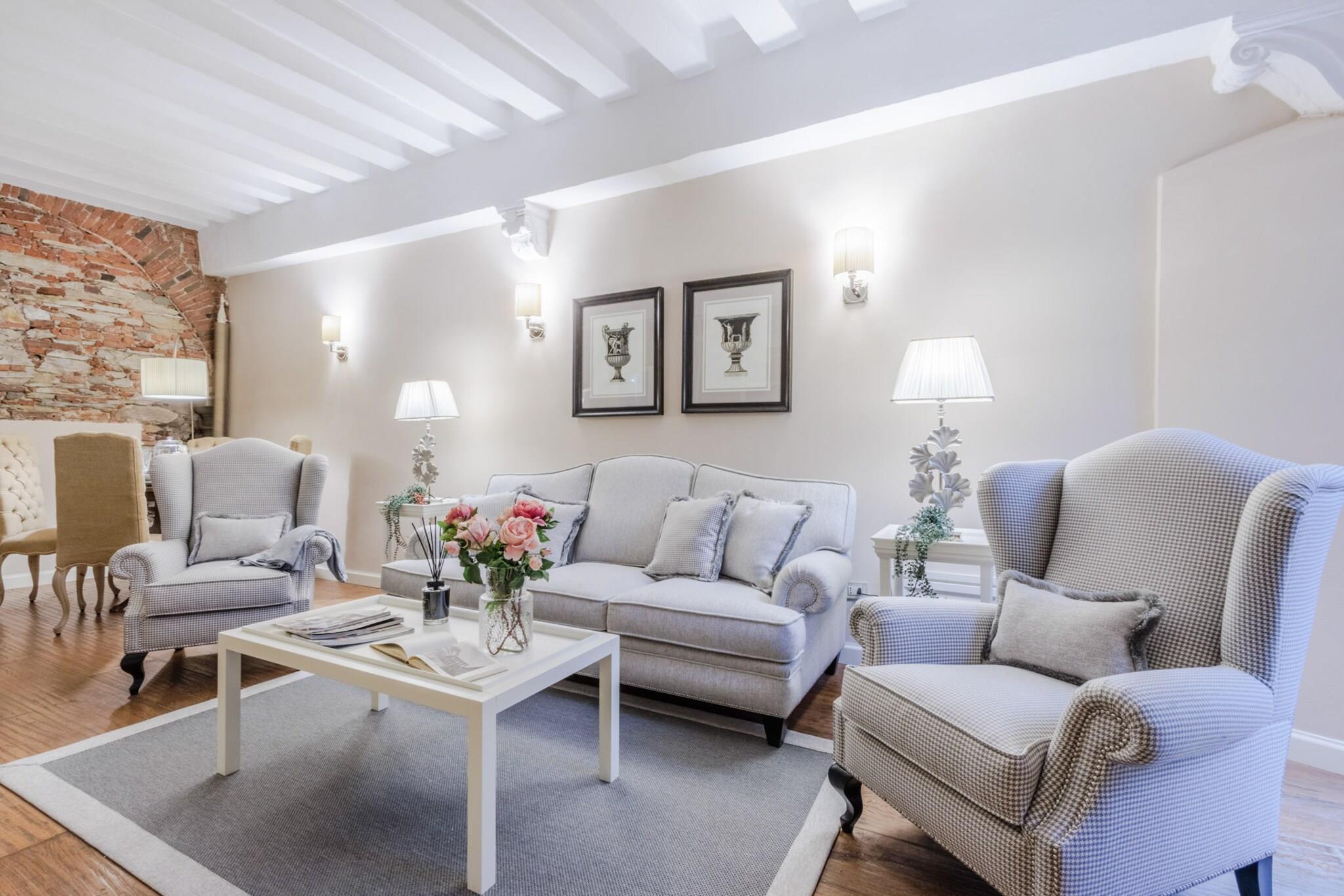 Dette elegante feriehus er en smukt restaureret stuelejlighed i Lucca, der kombinerer historisk arkitektur med moderne komfort. Med et soveværelse med dobbeltseng og et andet soveværelse med en enkeltseng kan det rumme op til tre gæster. Den store stue kan prale af originale stensøjler fra 1300-tallet, mens en privat gårdhave og et skyggefuldt drivhuskøkken udenfor giver en unik inde-udendørs oplevelse. Med aircondition, varme og Wi-Fi inkluderet sikrer lejligheden et afslappende ophold. Selvom kæledyr ikke er tilladt, og der ikke er aktiviteter på stedet tilgængelige, gør det smagfulde interiør og beliggenheden den ideel til et roligt byophold. Lejligheden ligger centralt, men roligt inden for Luccas historiske mure, mellem Via Fillungo og Piazza San Frediano. Gæsterne er få skridt fra San Frediano-kirkens gyldne mosaikfacade og omgivet af et rigt udvalg af caféer, vinbarer og lokale restauranter. Den berømte Caffè Santa Zita ligger lige rundt om hjørnet. Selvom ejendommen ligger i ZTL (Limited Traffic Zone), er der nem adgang via den nærliggende Mazzini-parkeringsplads, en kort gåtur væk. Lejligheden er på 95 m² og har et fuldt udstyret køkken beliggende i et charmerende drivhus, ideelt til afslappede måltider eller aftendrinks i den tilstødende gårdhave. To moderne badeværelser, begge udstyret med bruseniche, tilbyder funktionalitet og privatliv. Alle forsyningsomkostninger - el, gas, vand og slutrengøring - er inkluderet, samt sengelinned og håndklæder. Bemærk: Turistskat skal betales på ejendommen.
