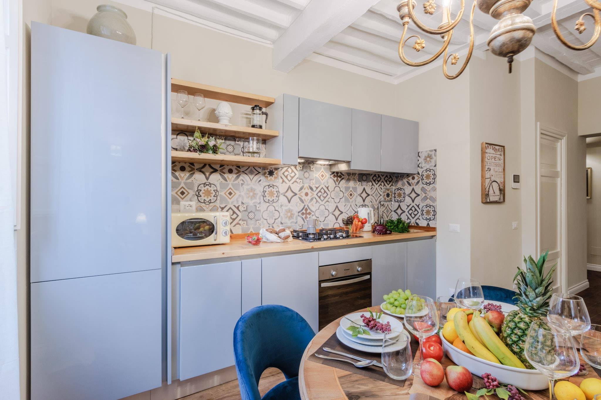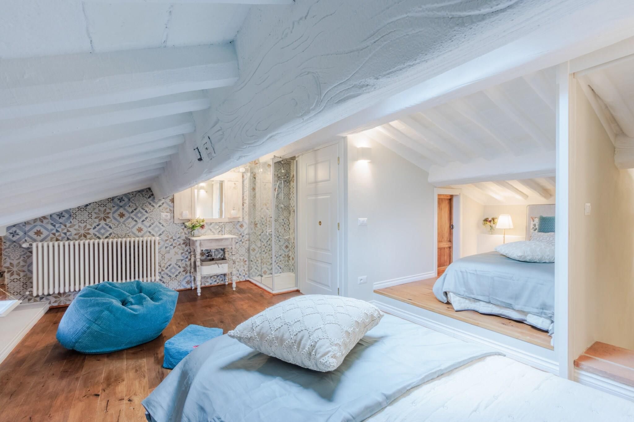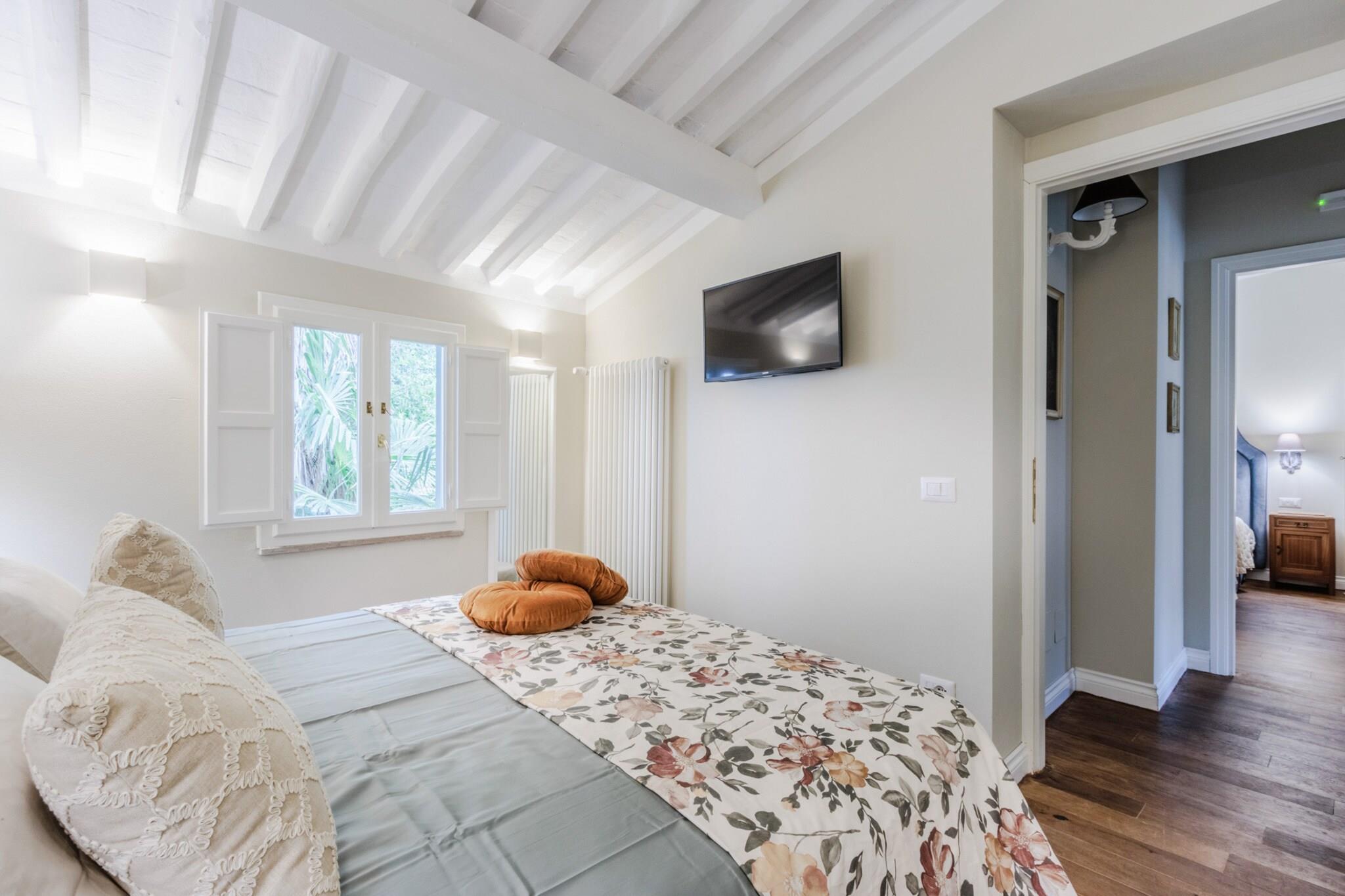 Denne charmerende lejlighed på anden sal ligger gemt væk på en stille sidegade kun få skridt fra Luccas domkirkeplads og tilbyder et fredeligt tilflugtssted i hjertet af byen. Med sine synlige træbjælker og varme, indbydende interiør blander huset historisk karakter med moderne komfort. Uanset om du planlægger en dag med sightseeing, museumsbesøg eller blot nyder den lokale kultur, er denne centralt beliggende lejlighed den perfekte base. Planlægningen er gennemtænkt og fordelt på to etager. Stueetagen har en hyggelig opholds- og spisestue med et fuldt udstyret køkken, to dobbeltværelser - det ene med eget badeværelse - og et ekstra badeværelse. Ovenpå tilbyder et soveværelse med to enkeltsenge, eget brusebad og separat toilet et unikt gemmested i loftsstil, ideelt for gæster, der søger lidt privatliv. Et kompakt vaskerum med vaskemaskine og tørretumbler giver ekstra bekvemmelighed ved længere ophold. Trods sin centrale beliggenhed forbliver lejligheden bemærkelsesværdigt stille og tilbyder en rolig tilflugtssted efter en dag med udforskning. Med togstationen og parkering kun en kort gåtur væk er det nemt at bevæge sig ud over Lucca for at opdage Toscanas skønhed. Uanset om du rejser med familie eller venner, tilbyder denne lejlighed et komfortabelt og karakterfuldt ophold i en af Italiens mest fortryllende byer. Bemærk: Turistskat skal betales på ejendommen.